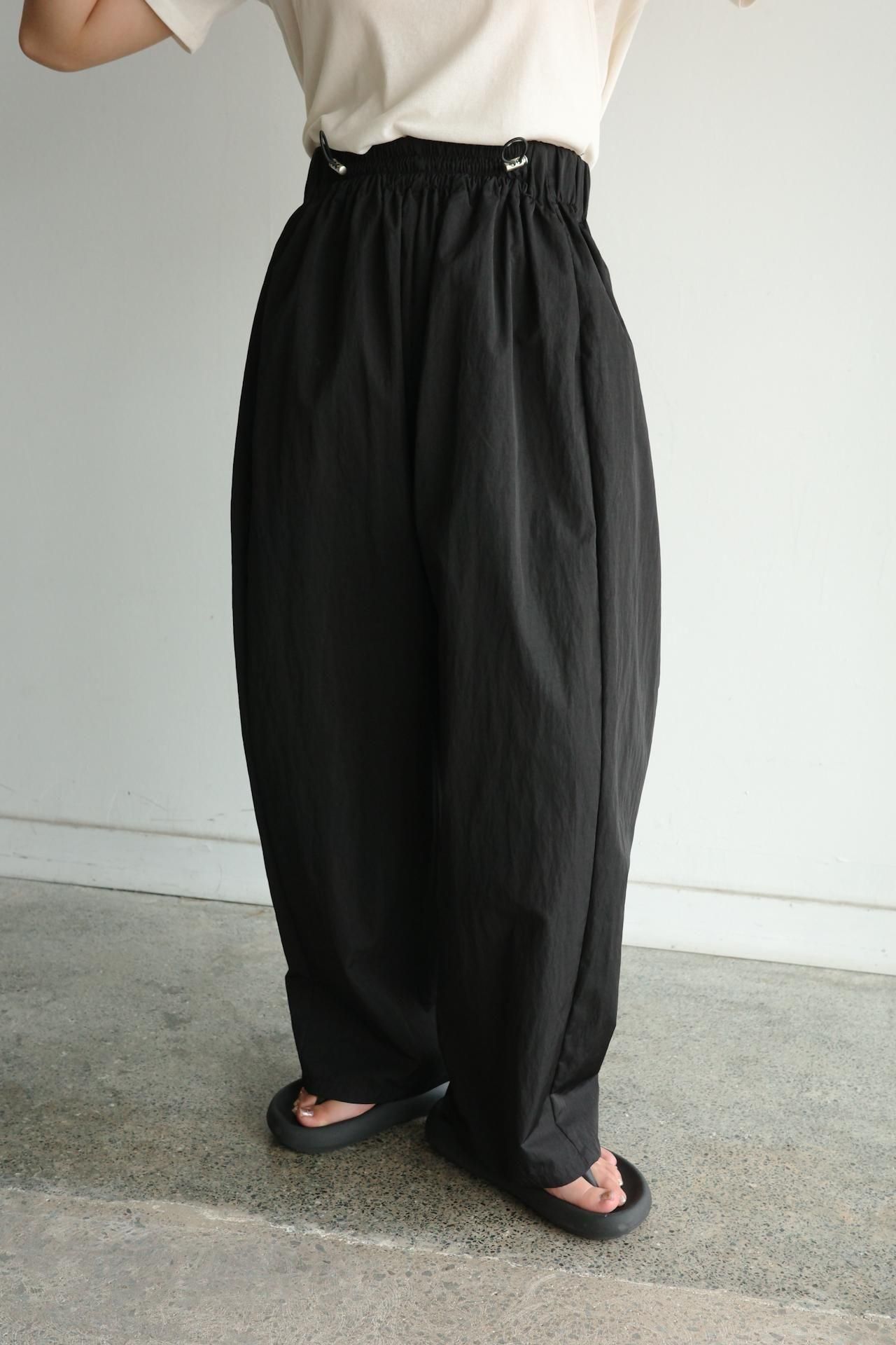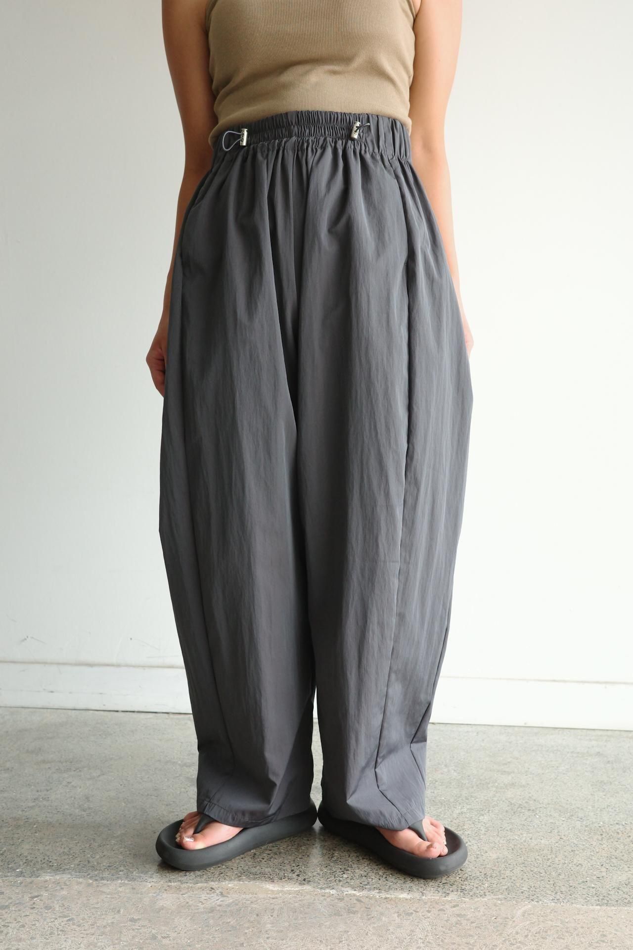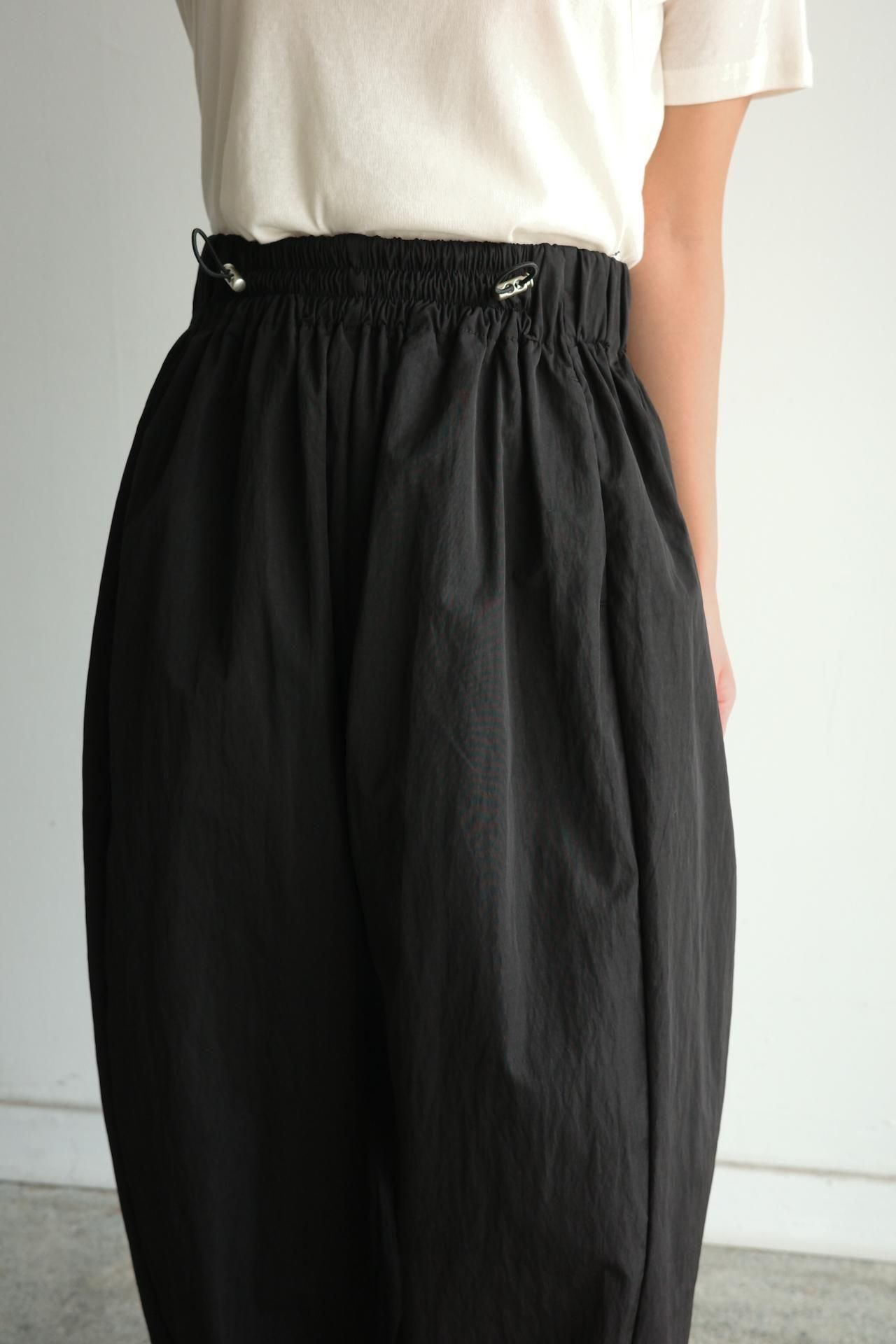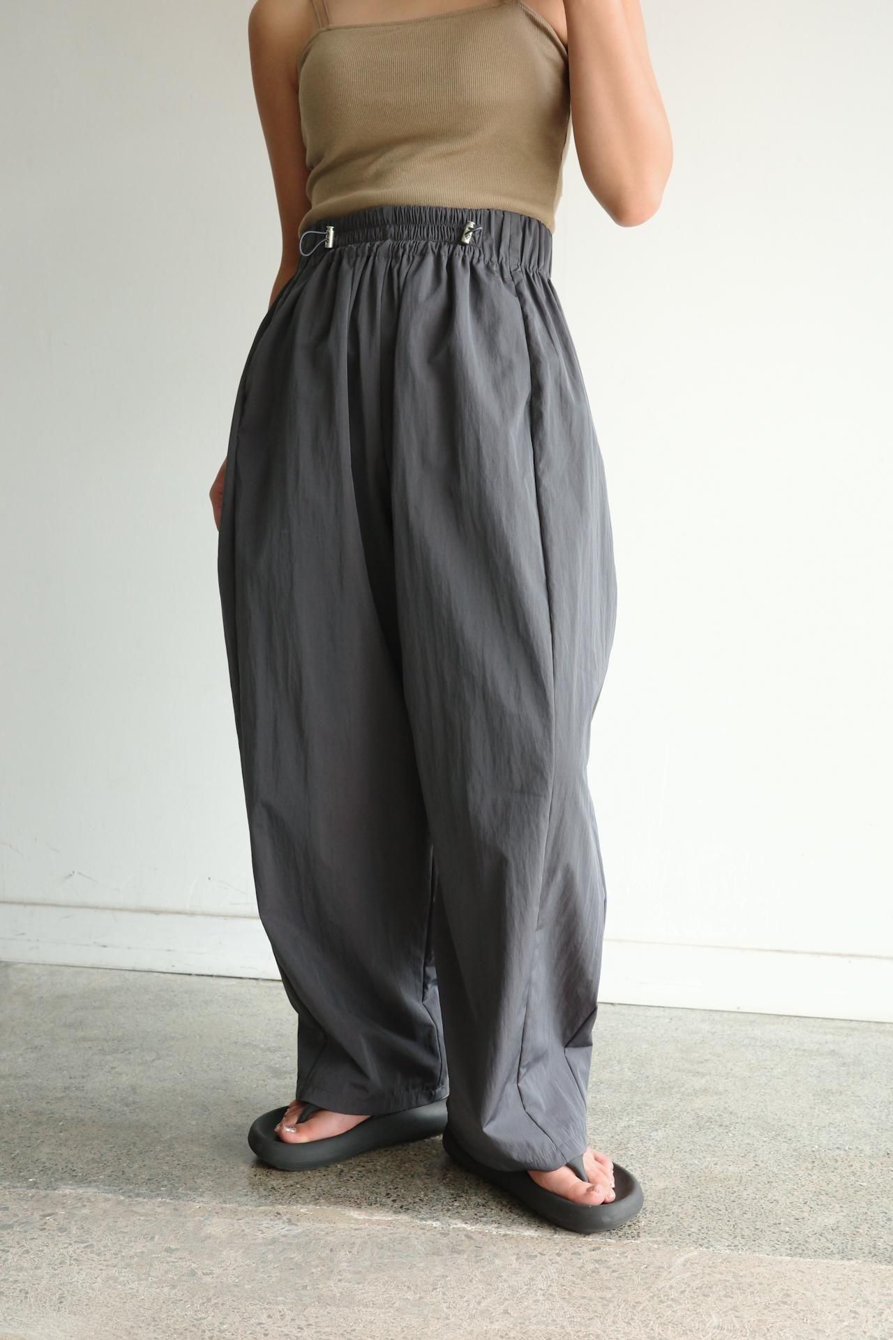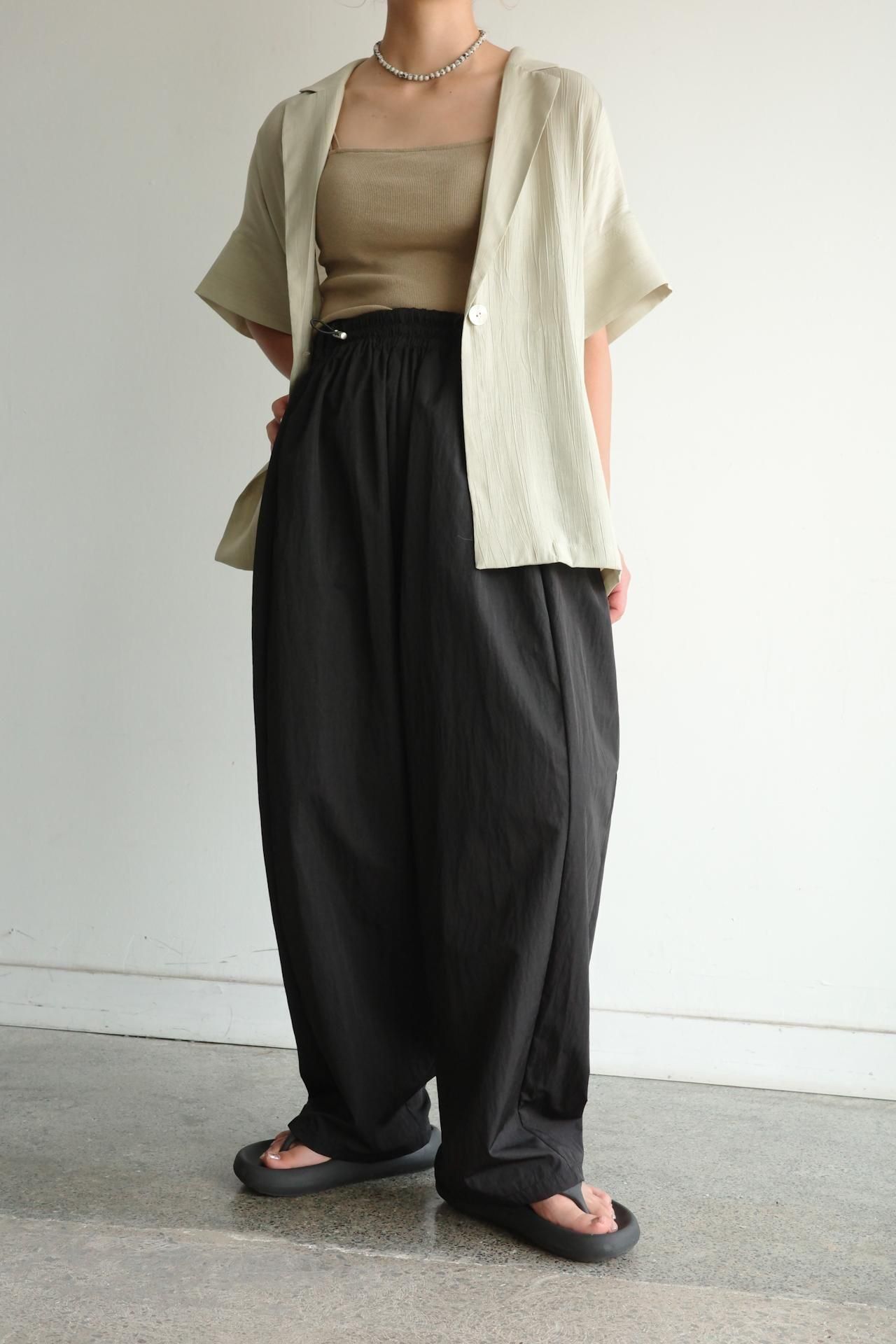 マットなシャカ感が大人っぽいタフタ素材のコクーンパンツ