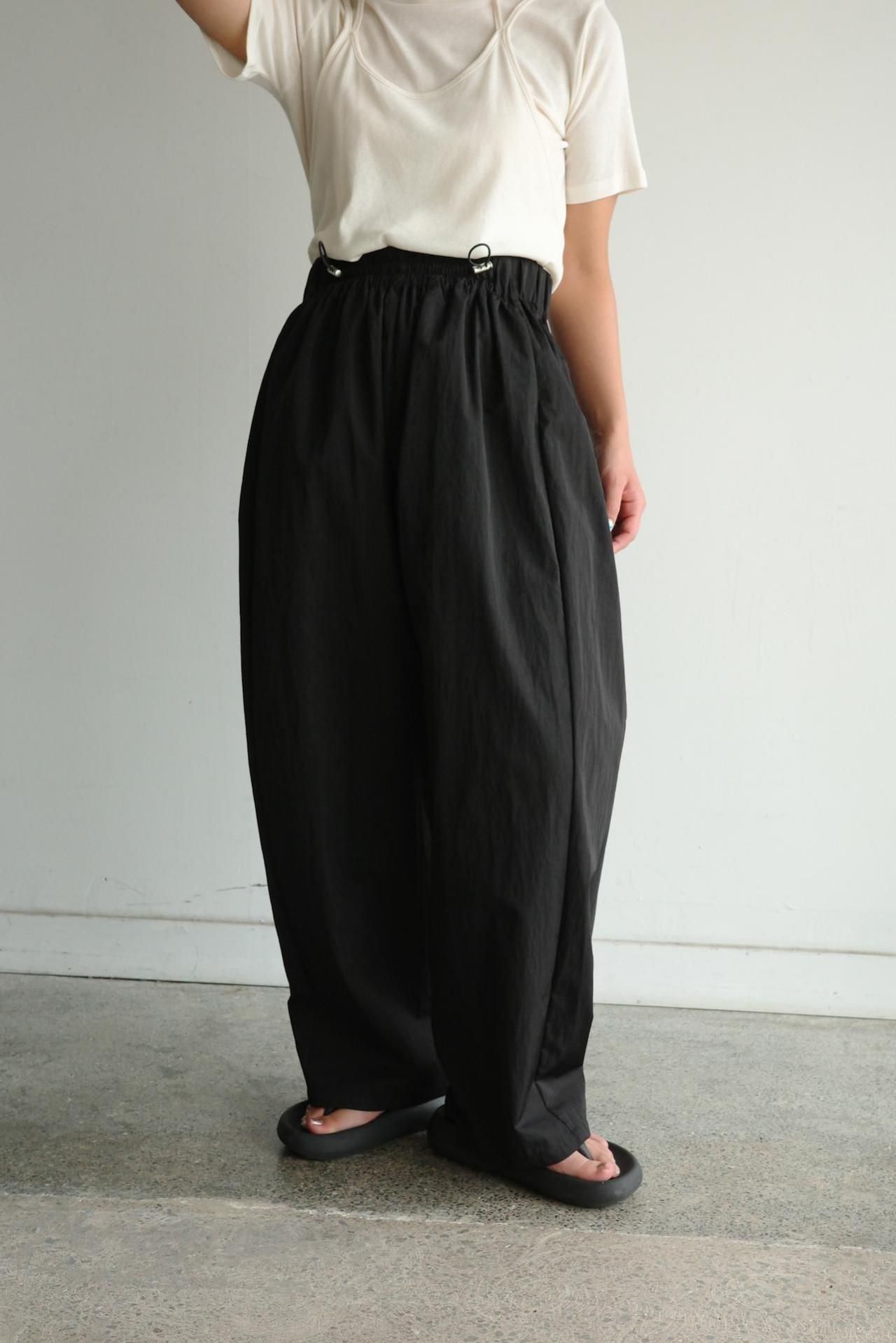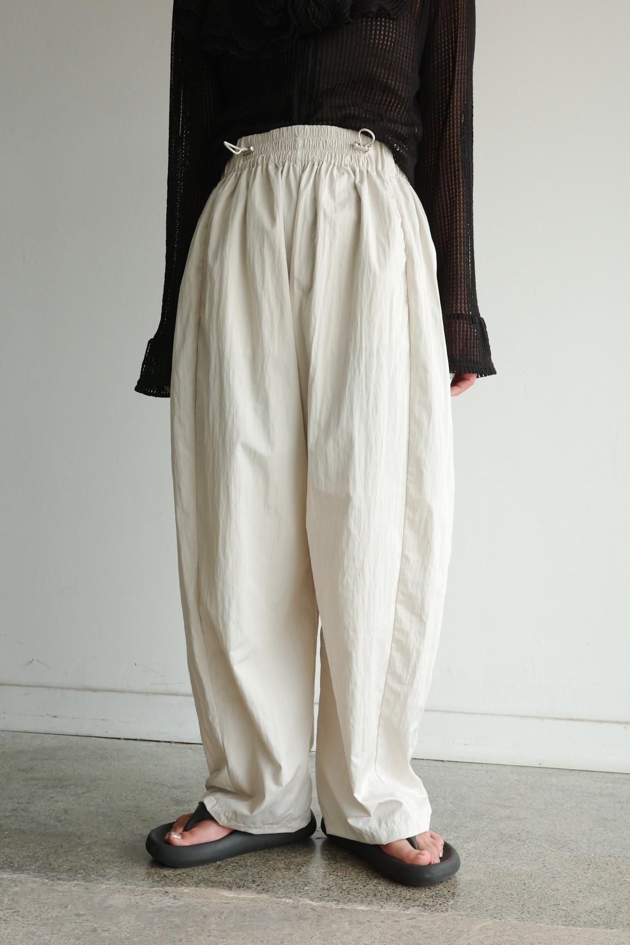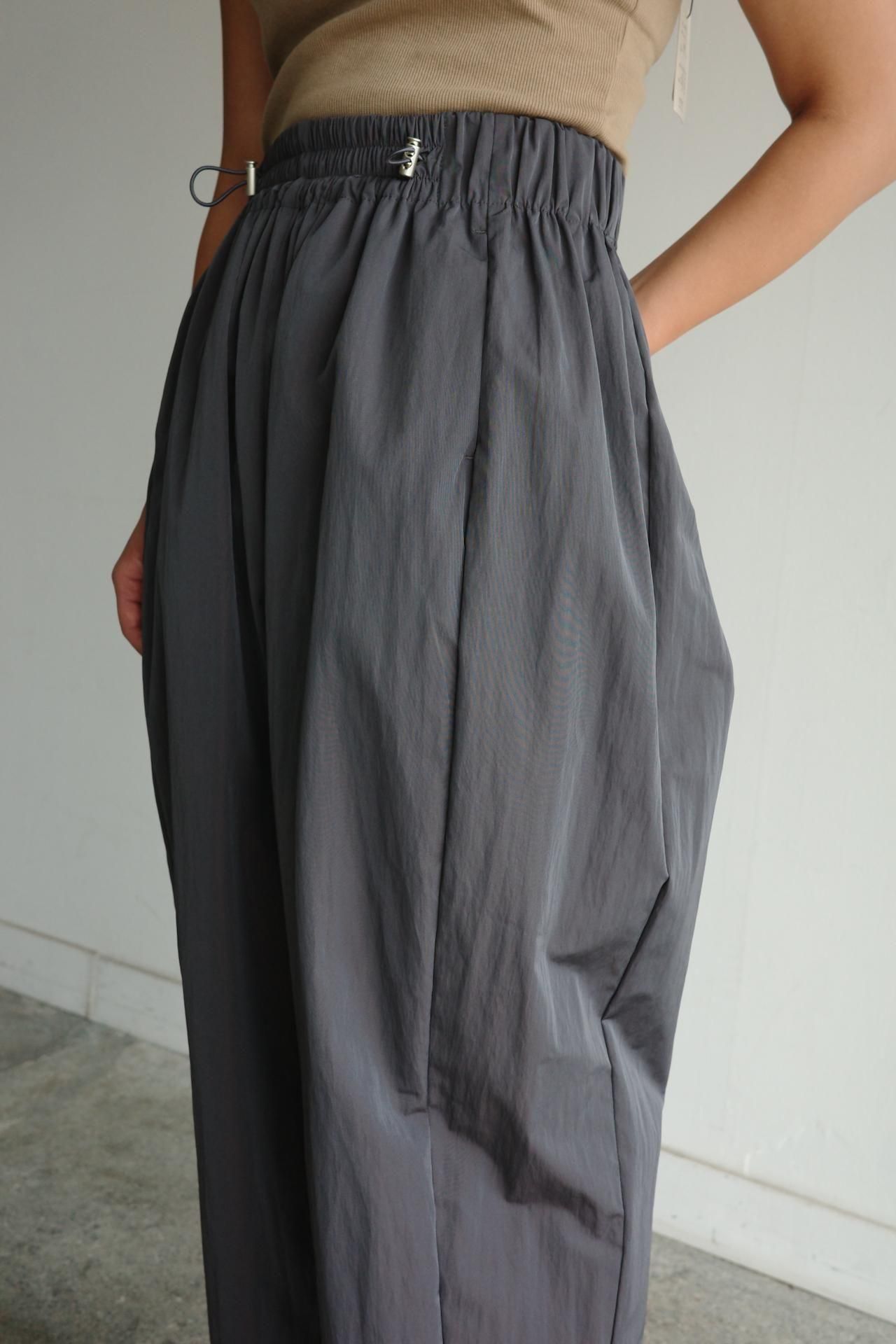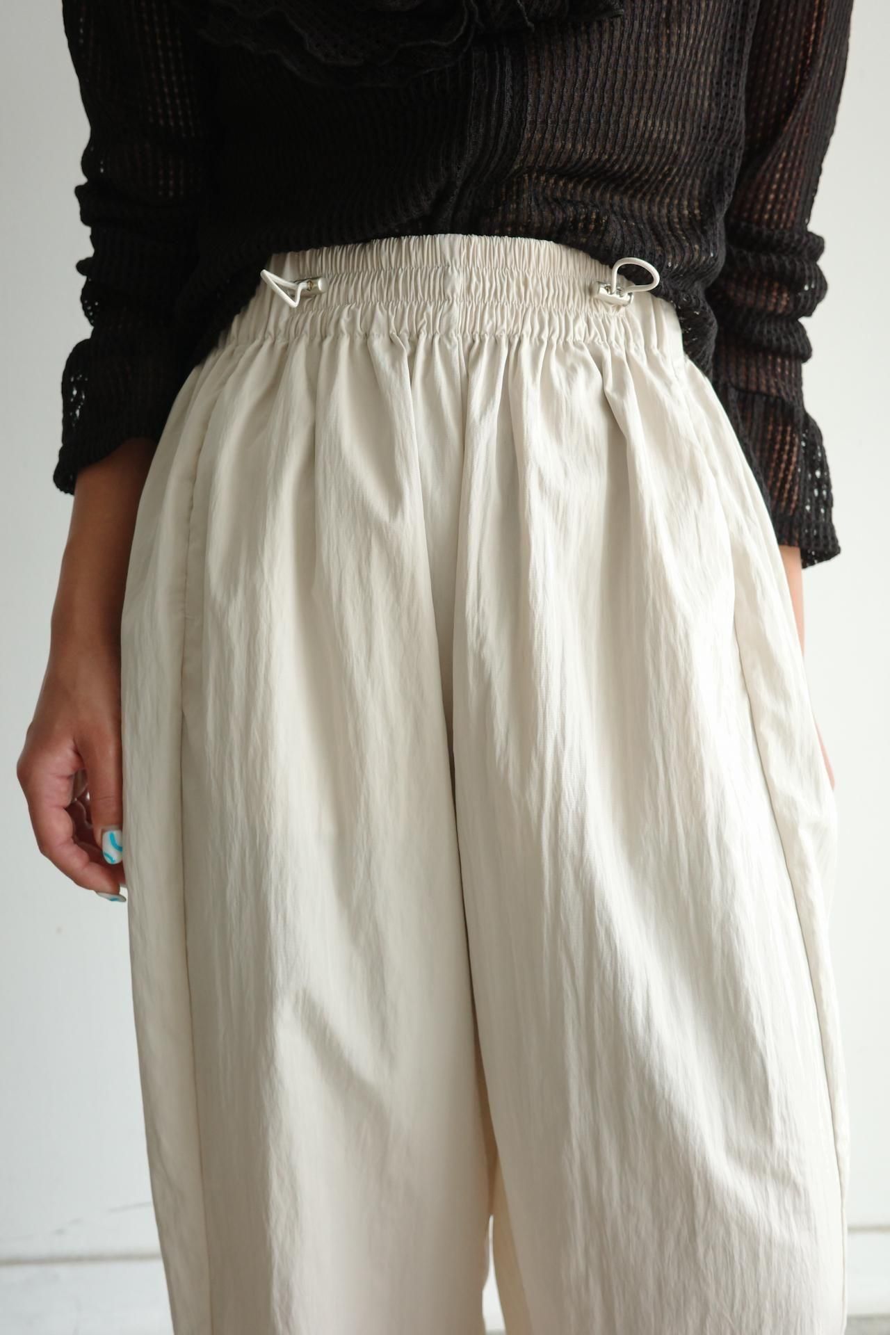 マットなシャカ感が大人っぽいタフタ素材のコクーンパンツ