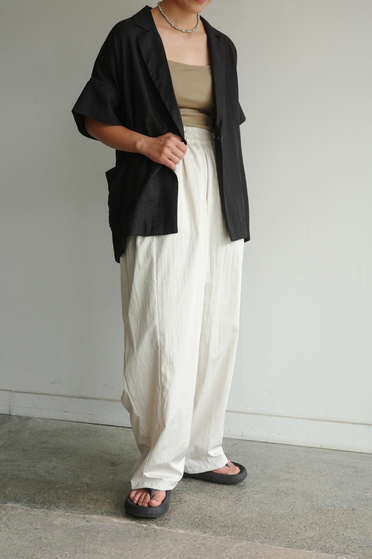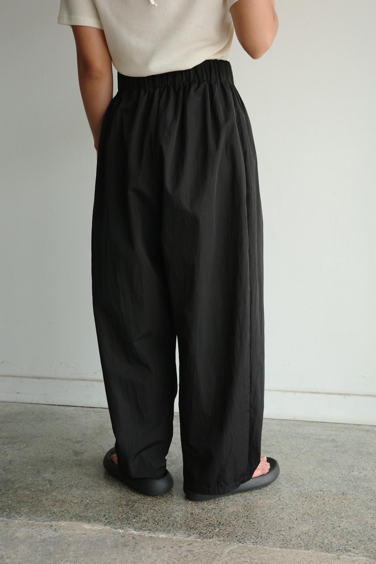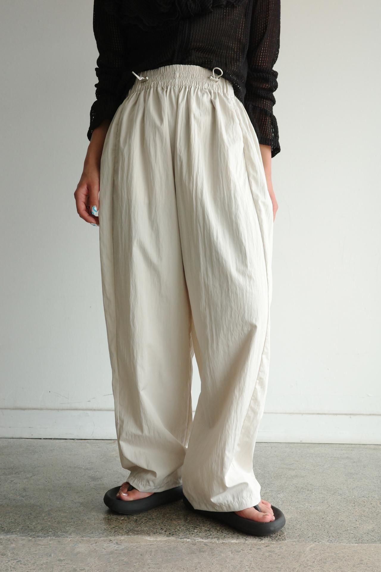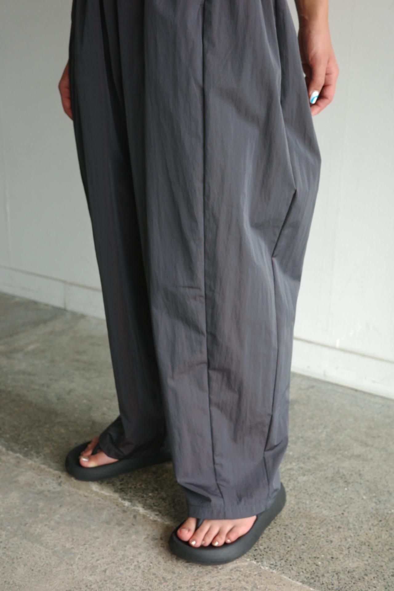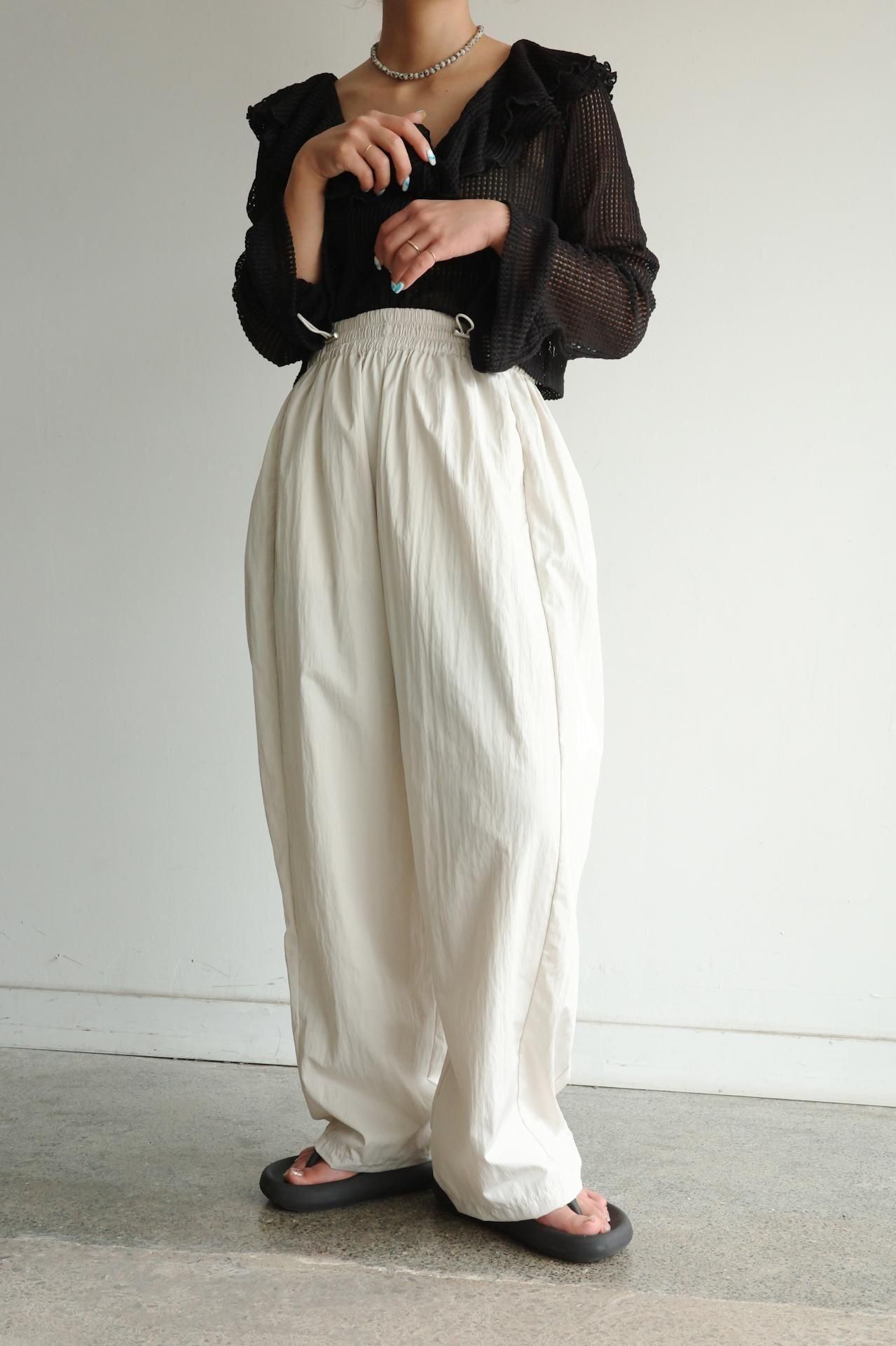マットなシャカ感が大人っぽいタフタ素材のコクーンパンツ