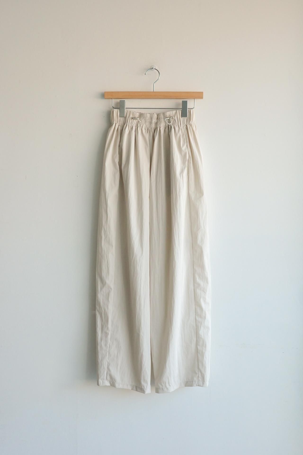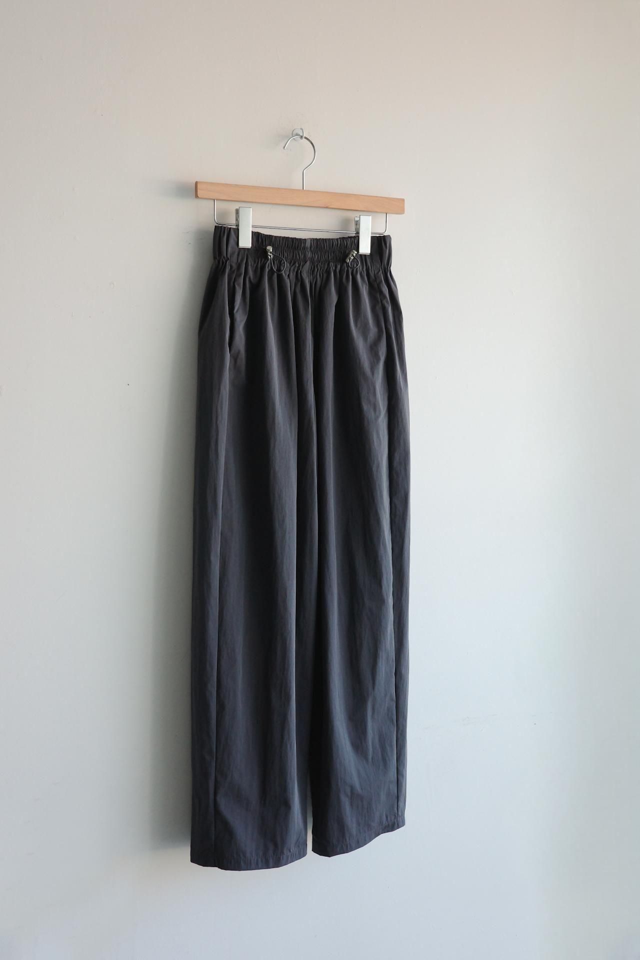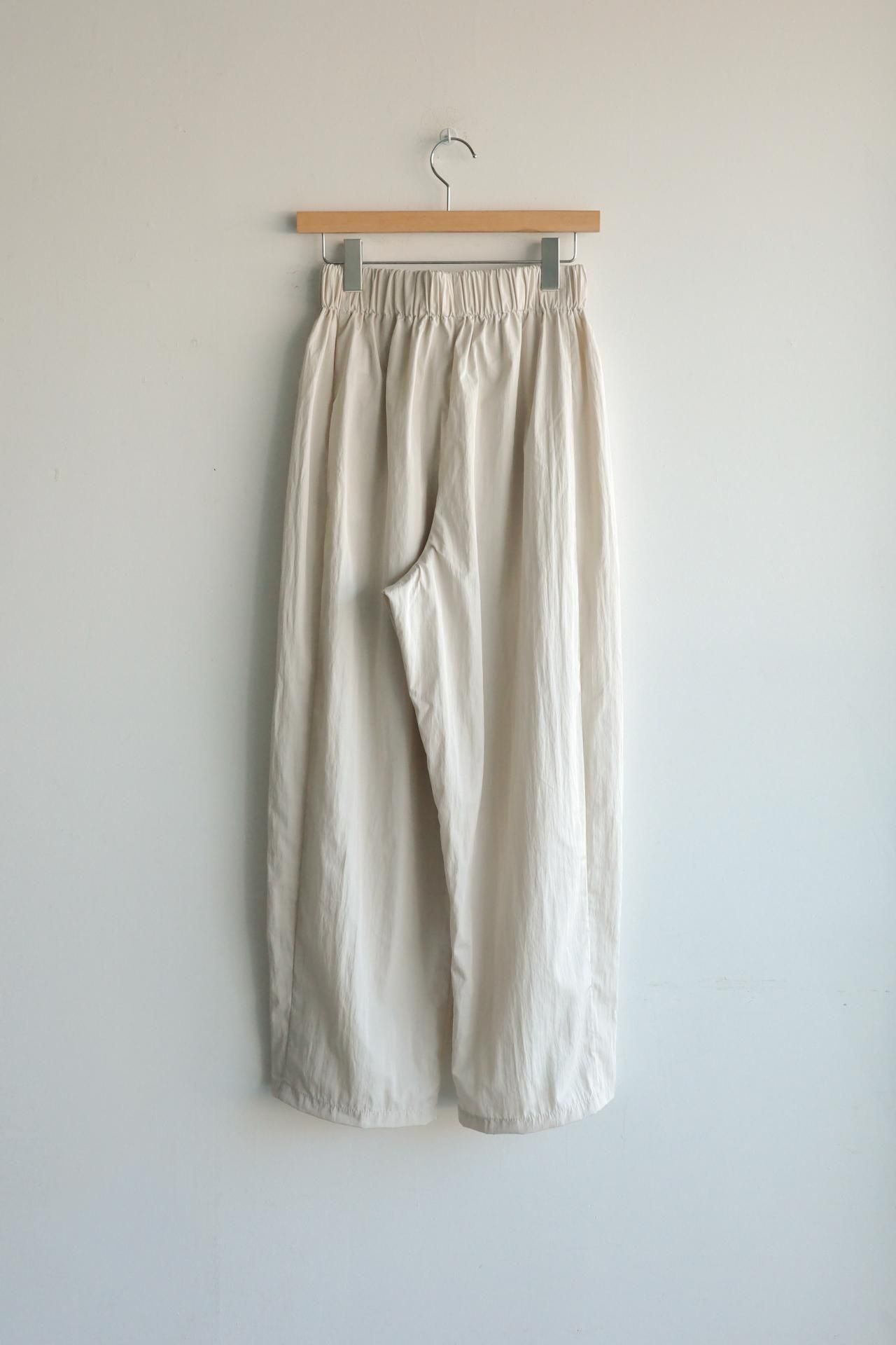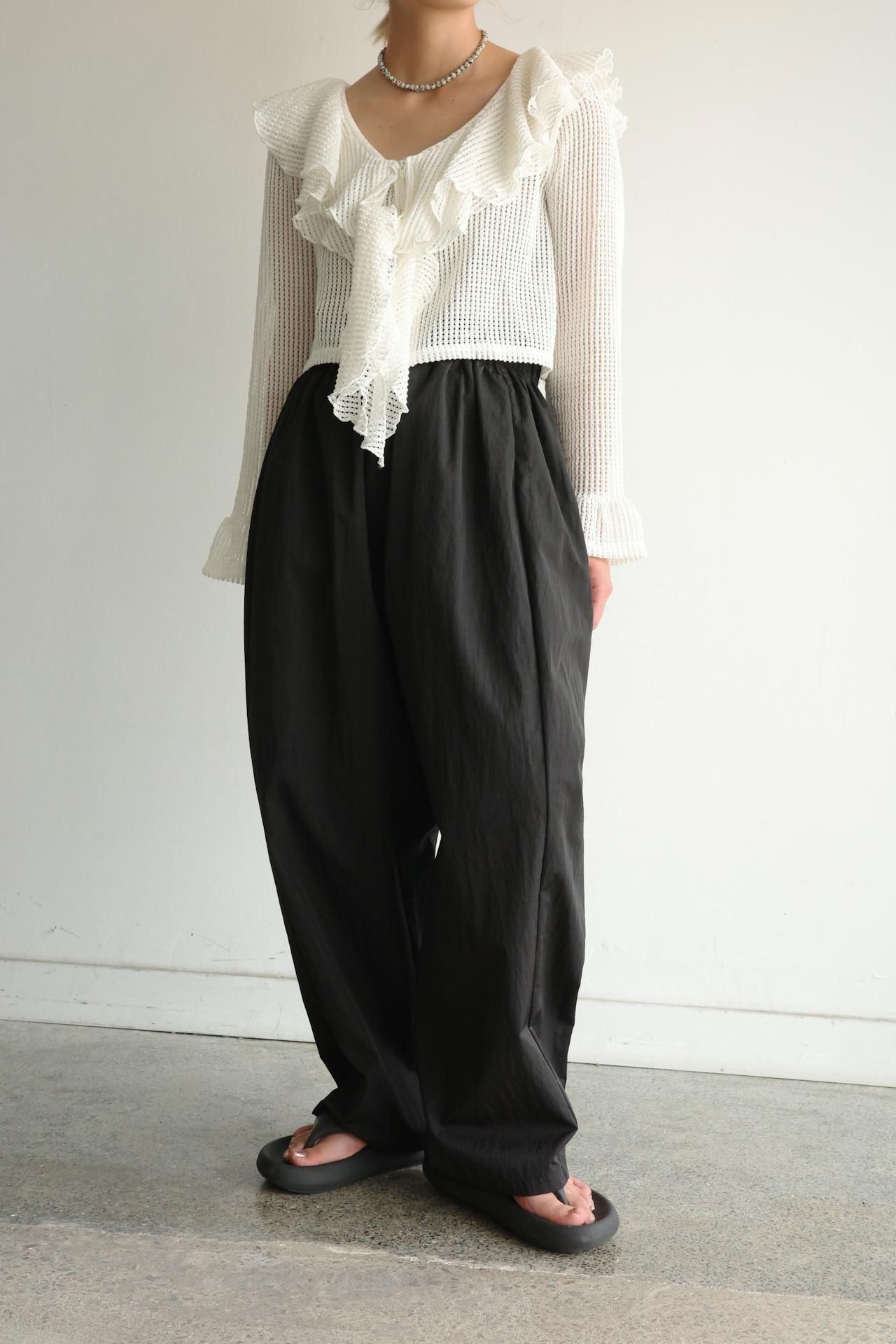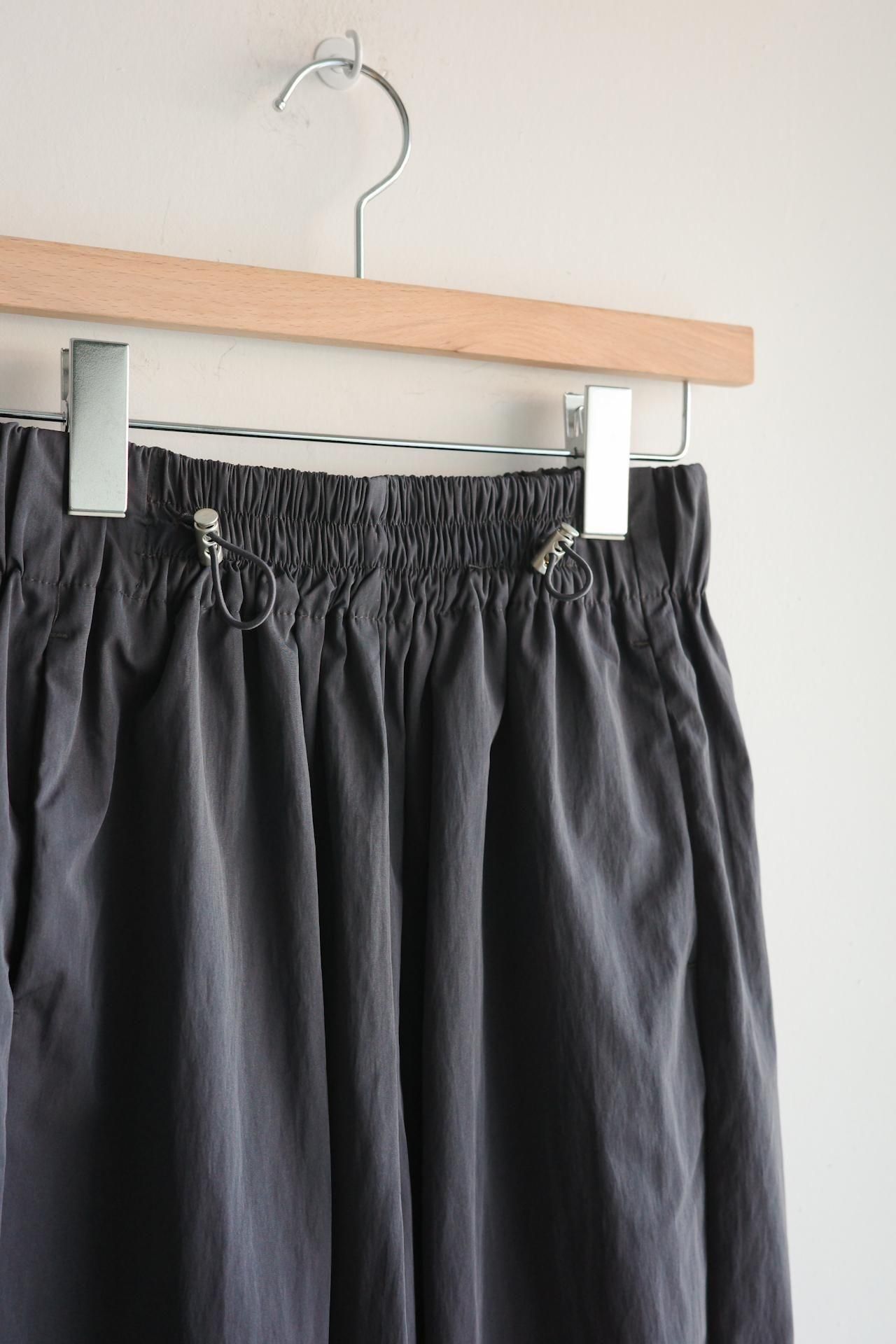 マットなシャカ感が大人っぽいタフタ素材のコクーンパンツ