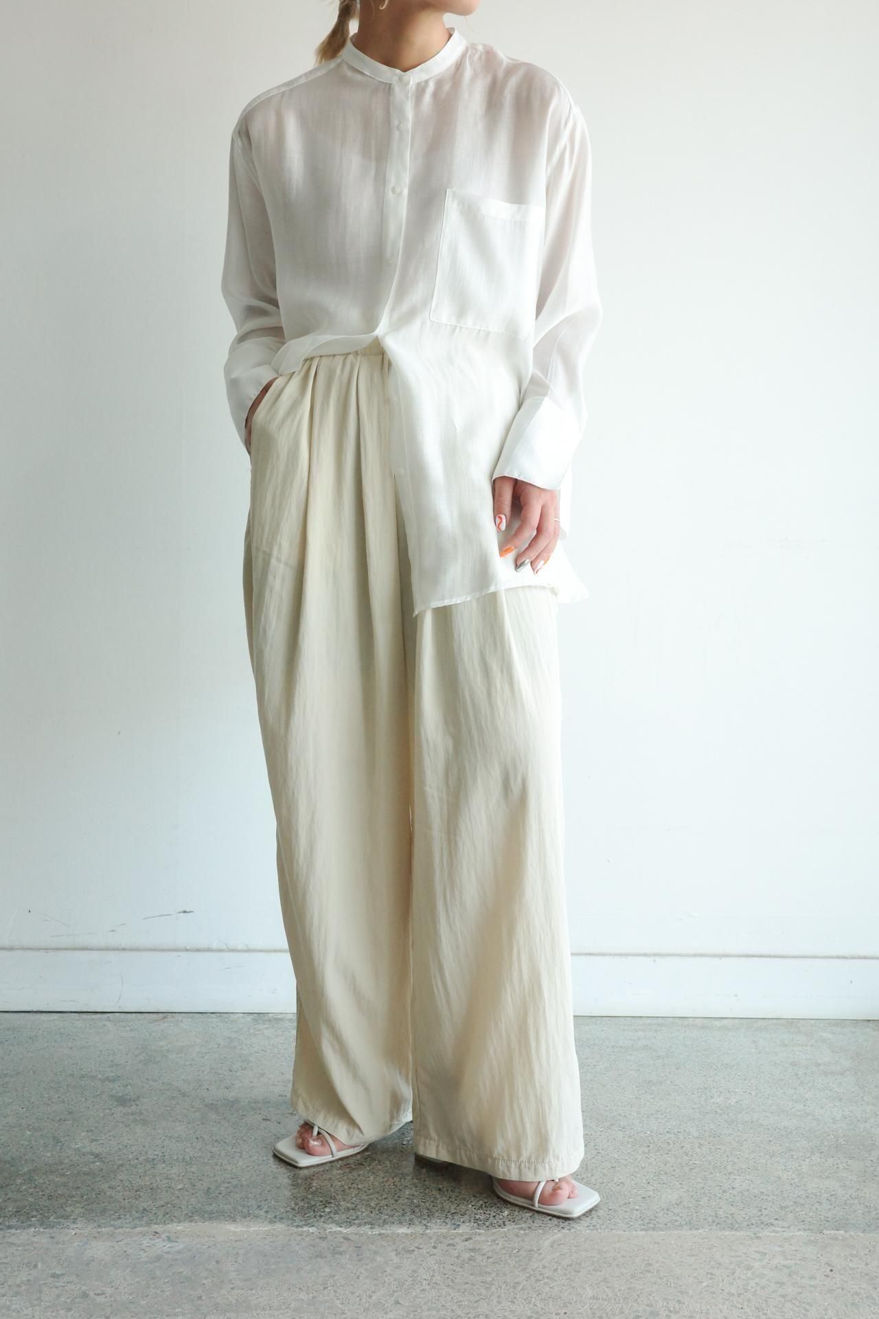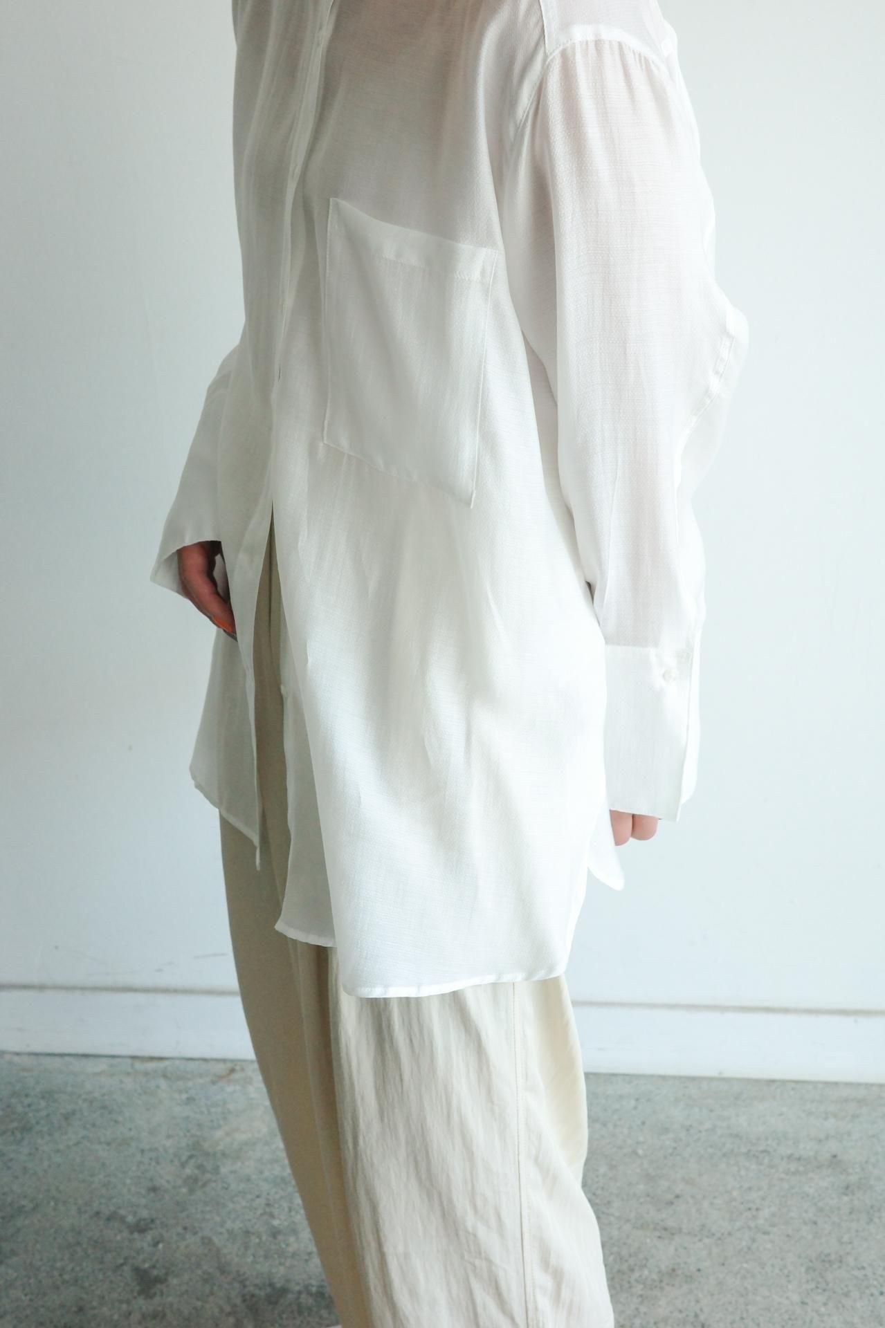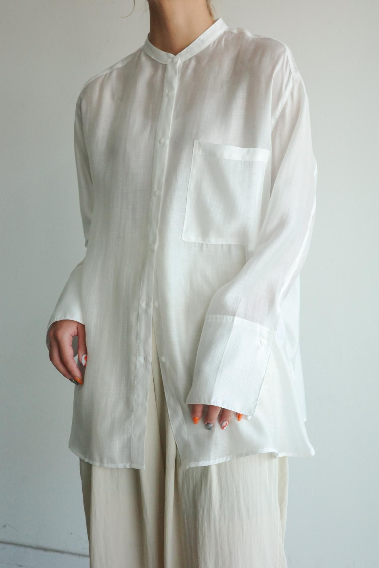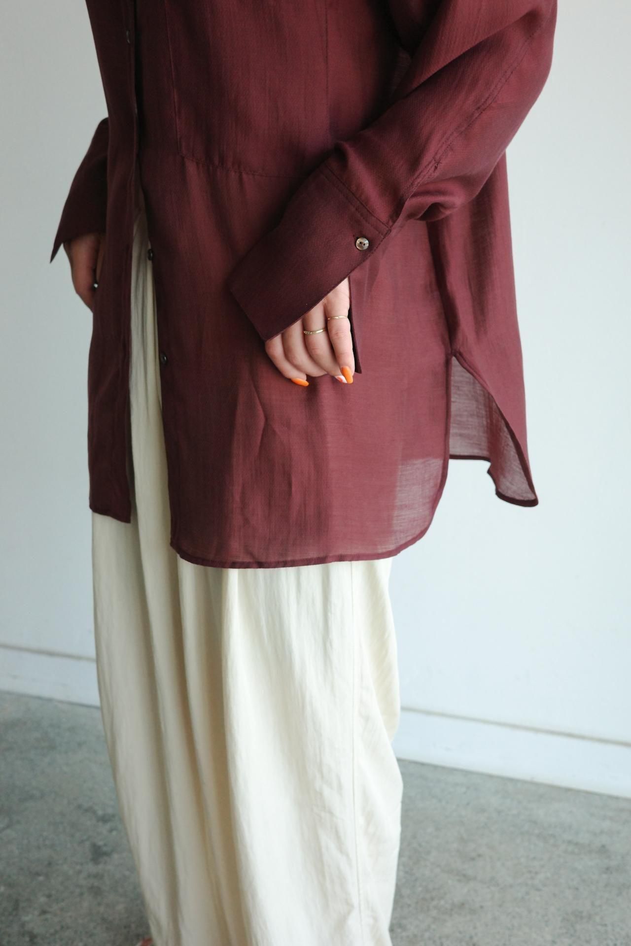 メンズっぽさと女性らしさを組み合わせた上品なシアーシャツ