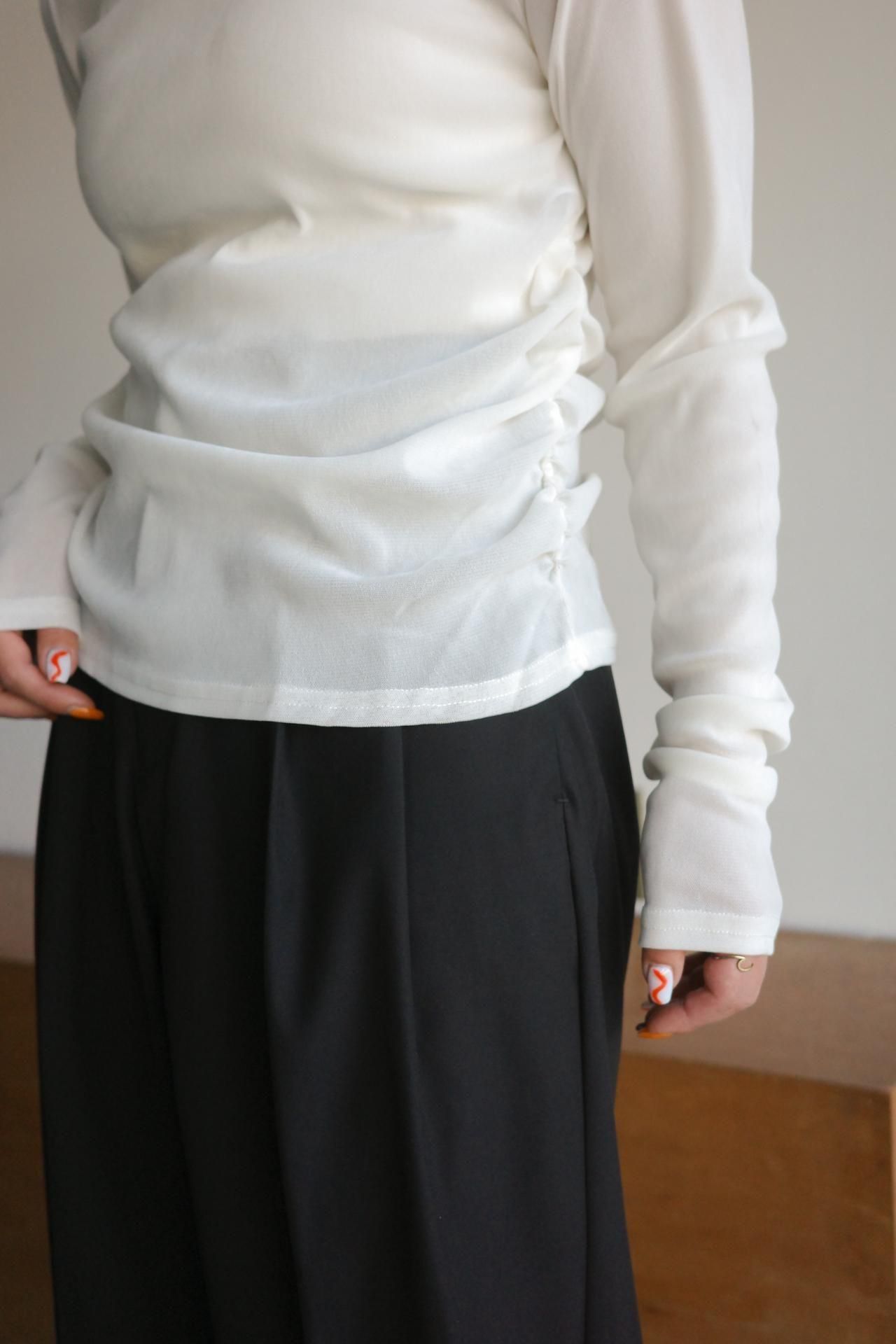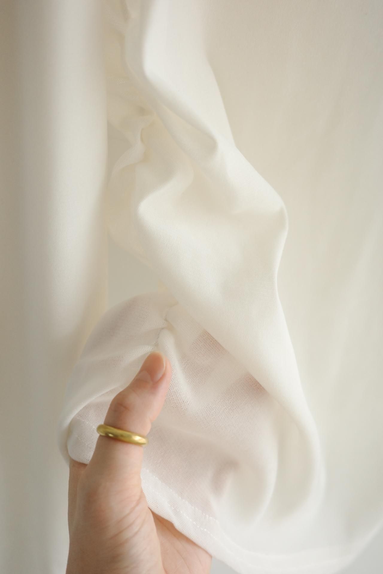 タイト過ぎないゆとりのあるサイジングと長めの袖丈で