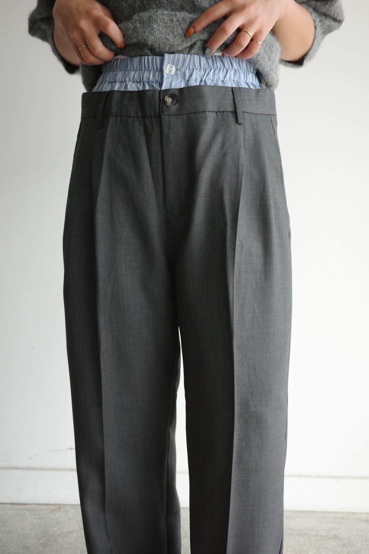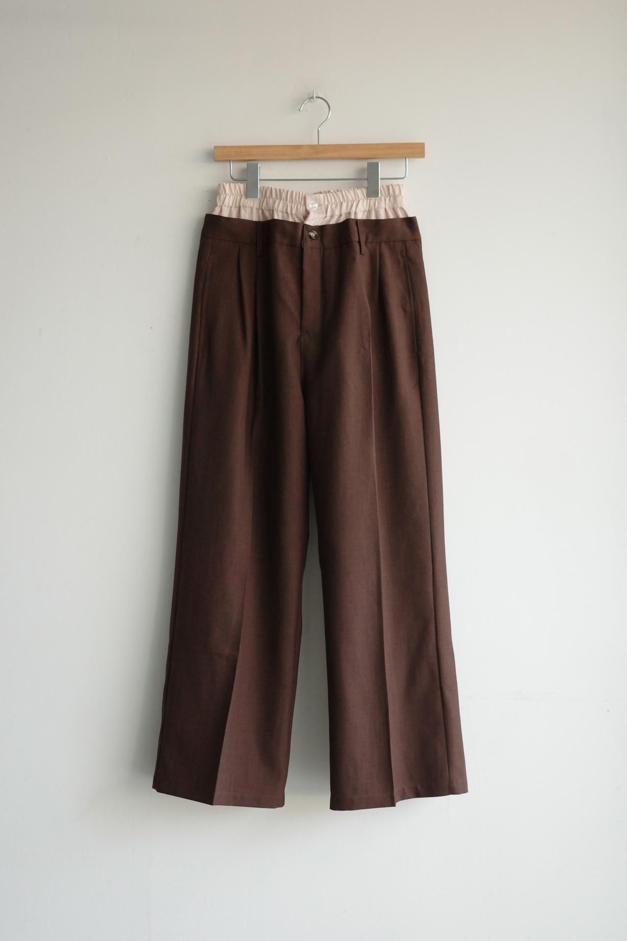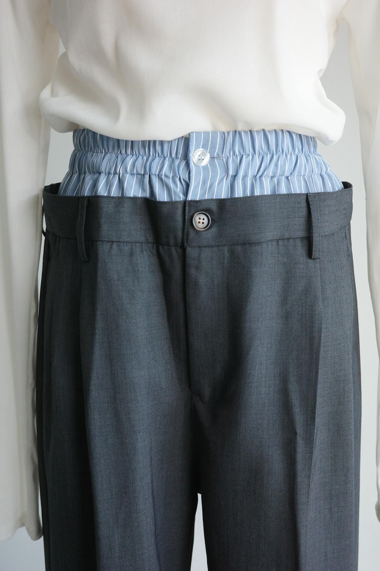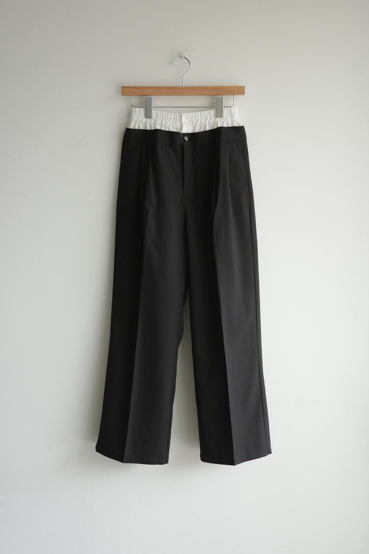 ウエストにレイヤード風デザインを施したデザインパンツ