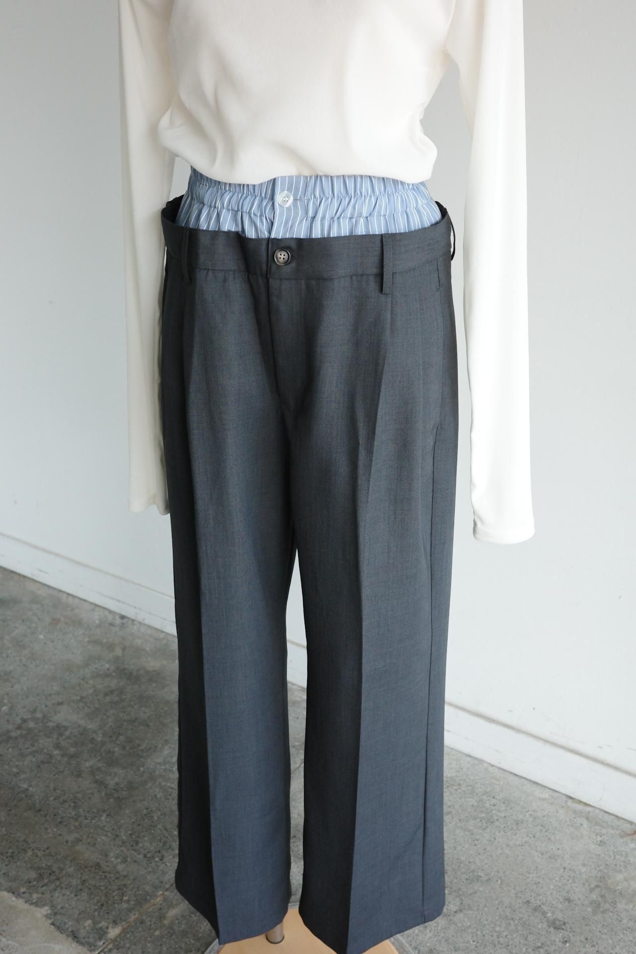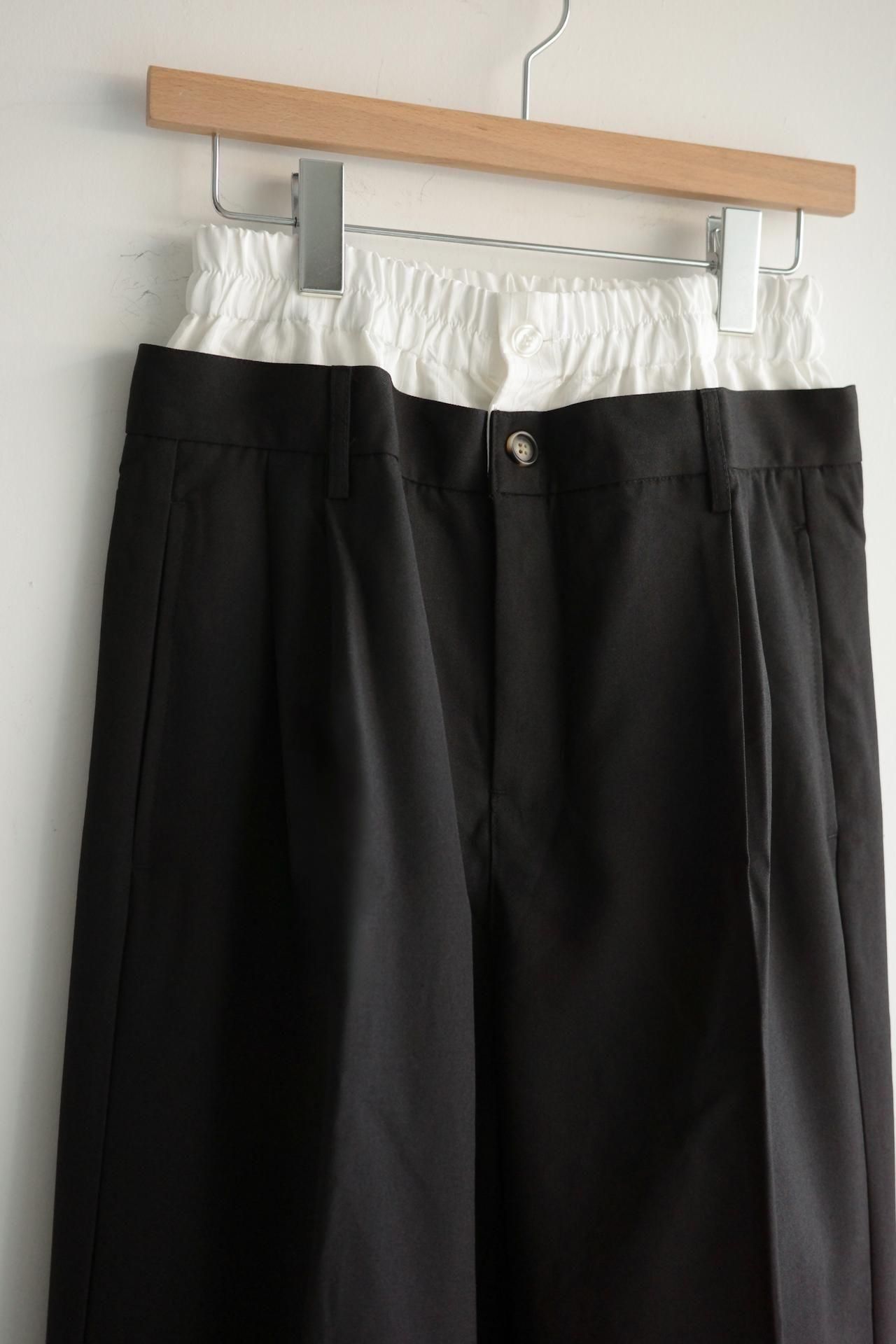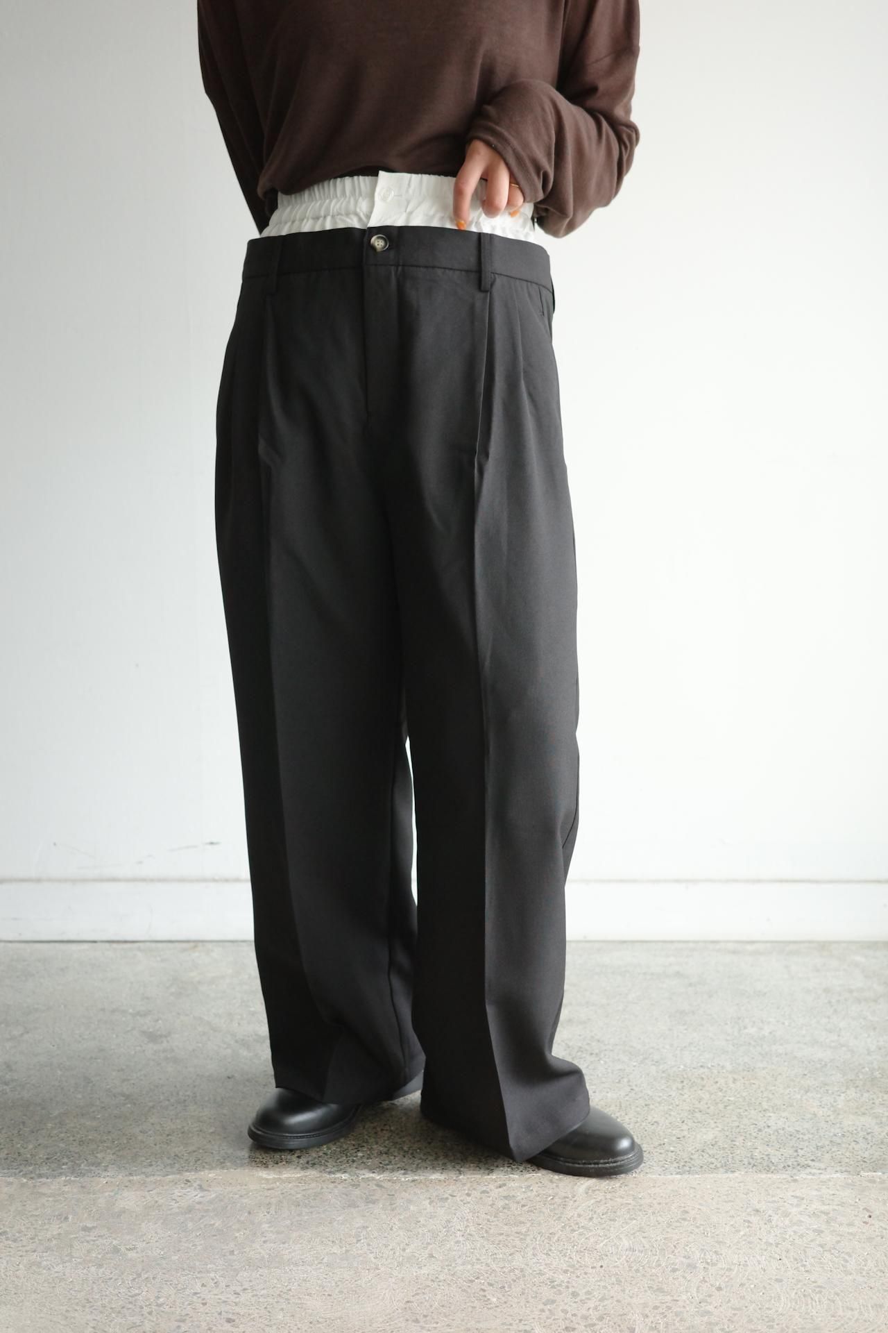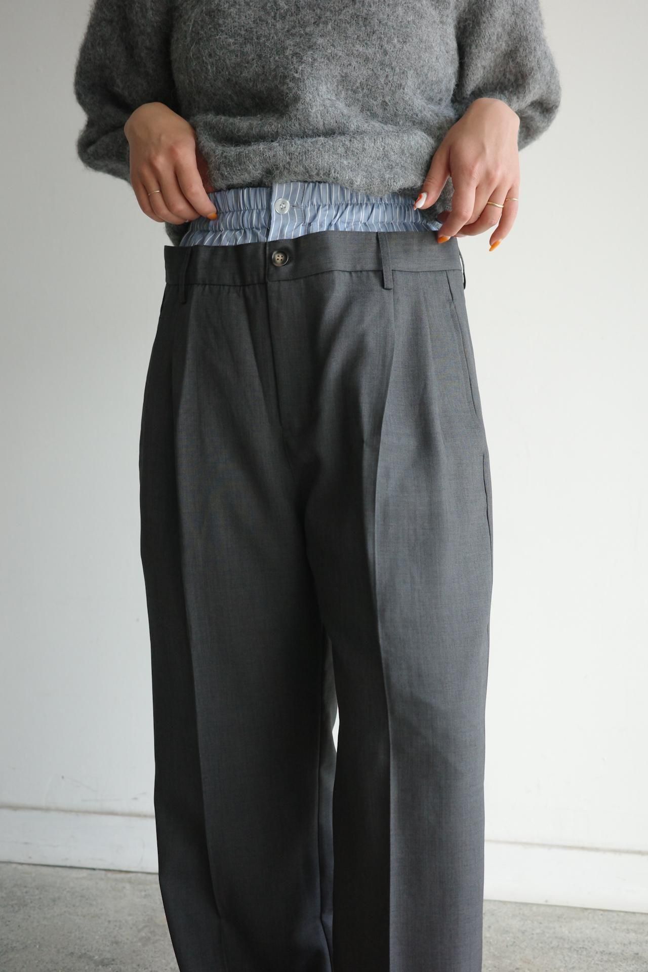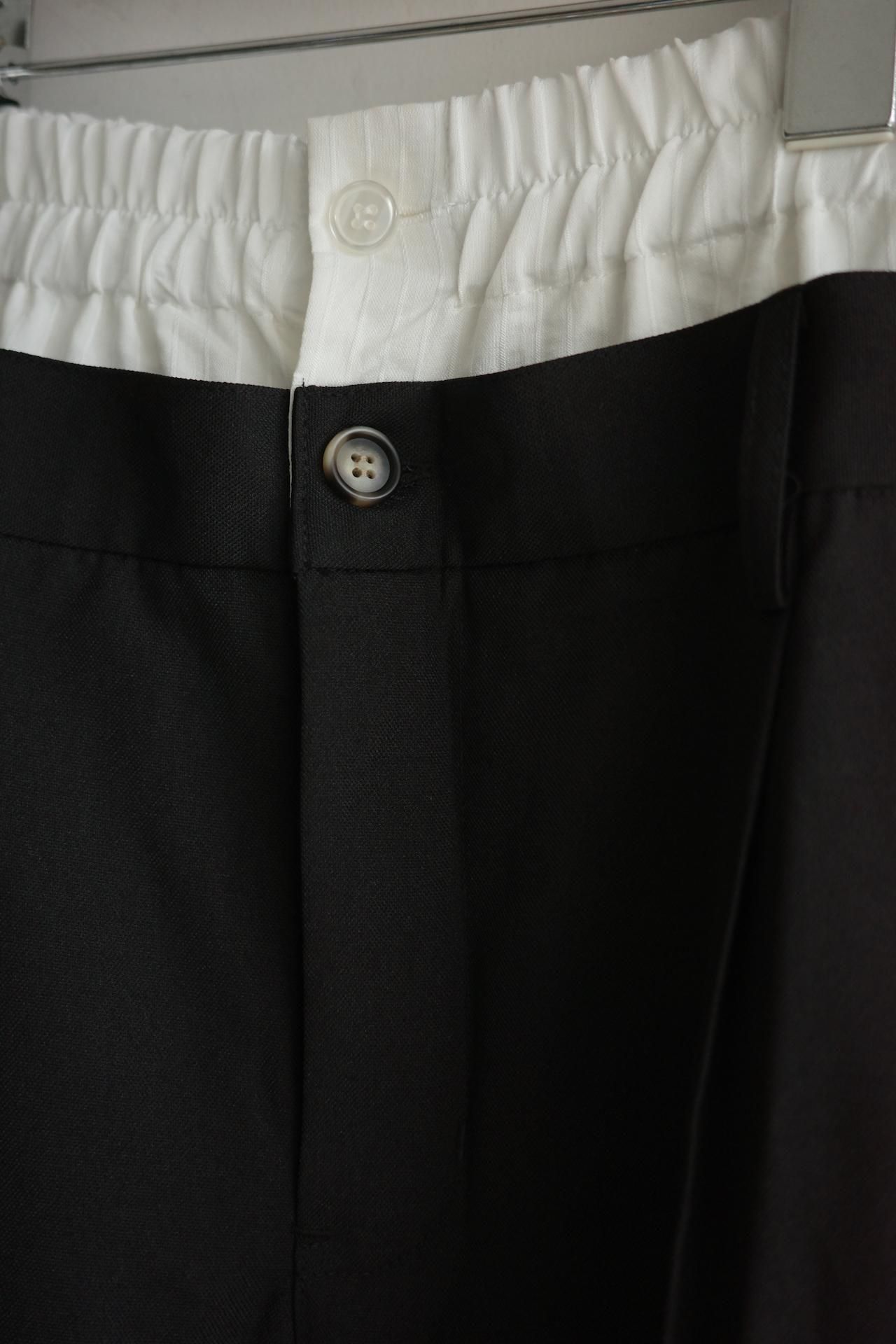 ウエストにレイヤード風デザインを施したデザインパンツ