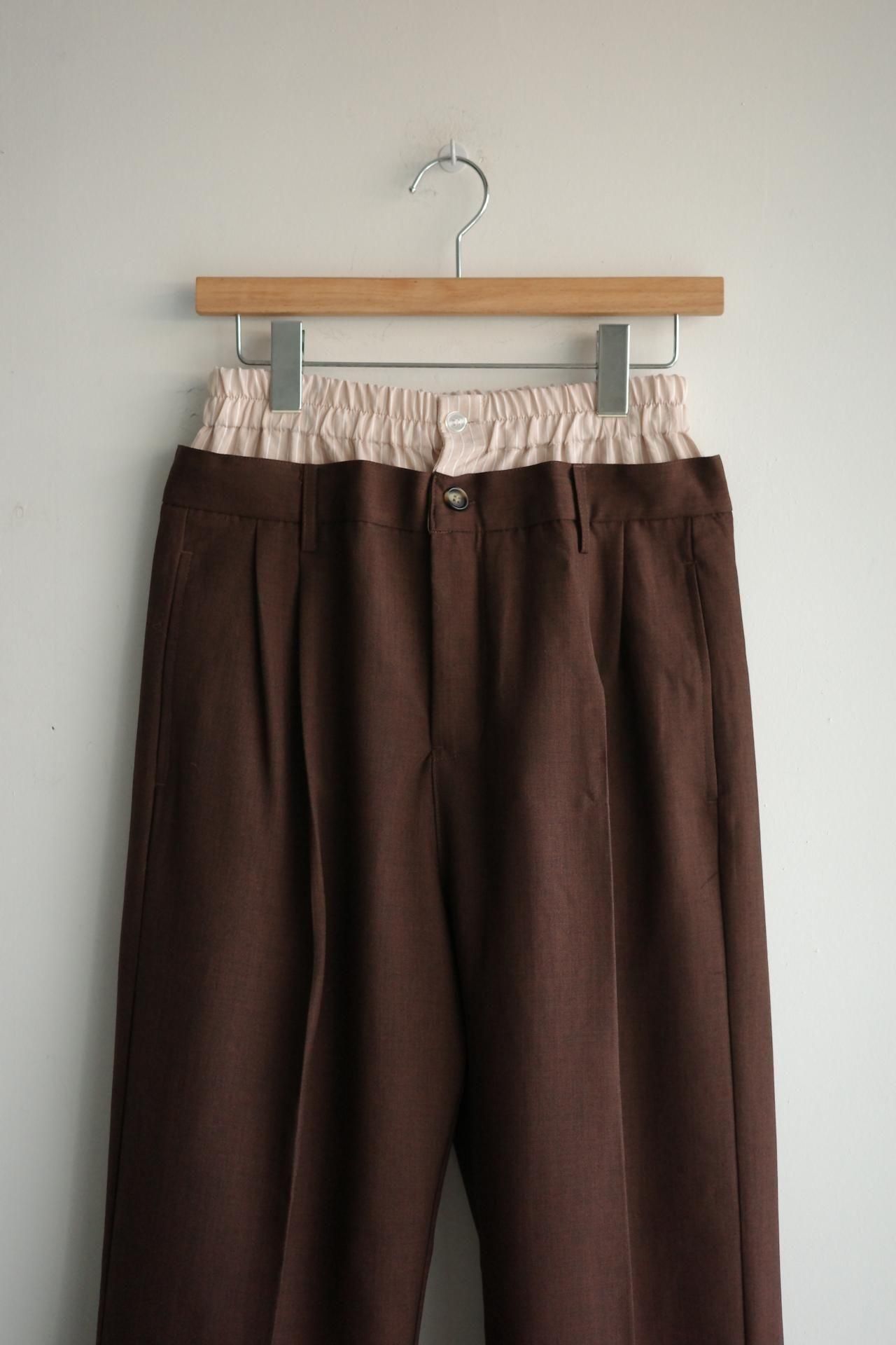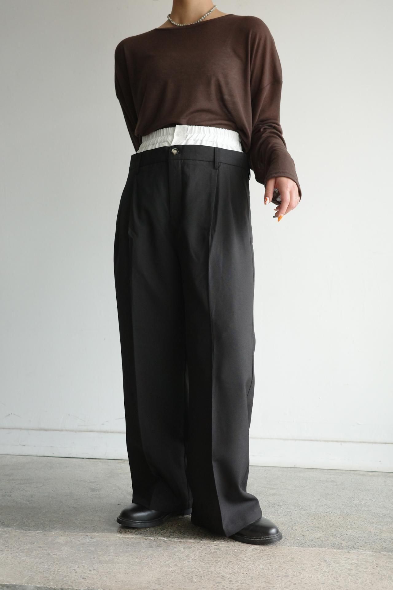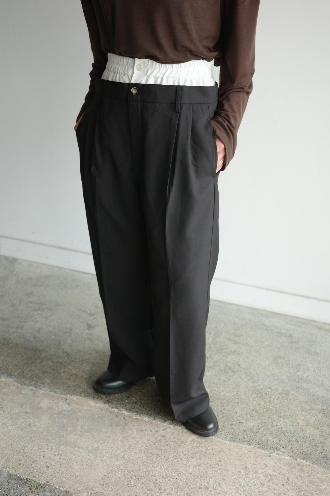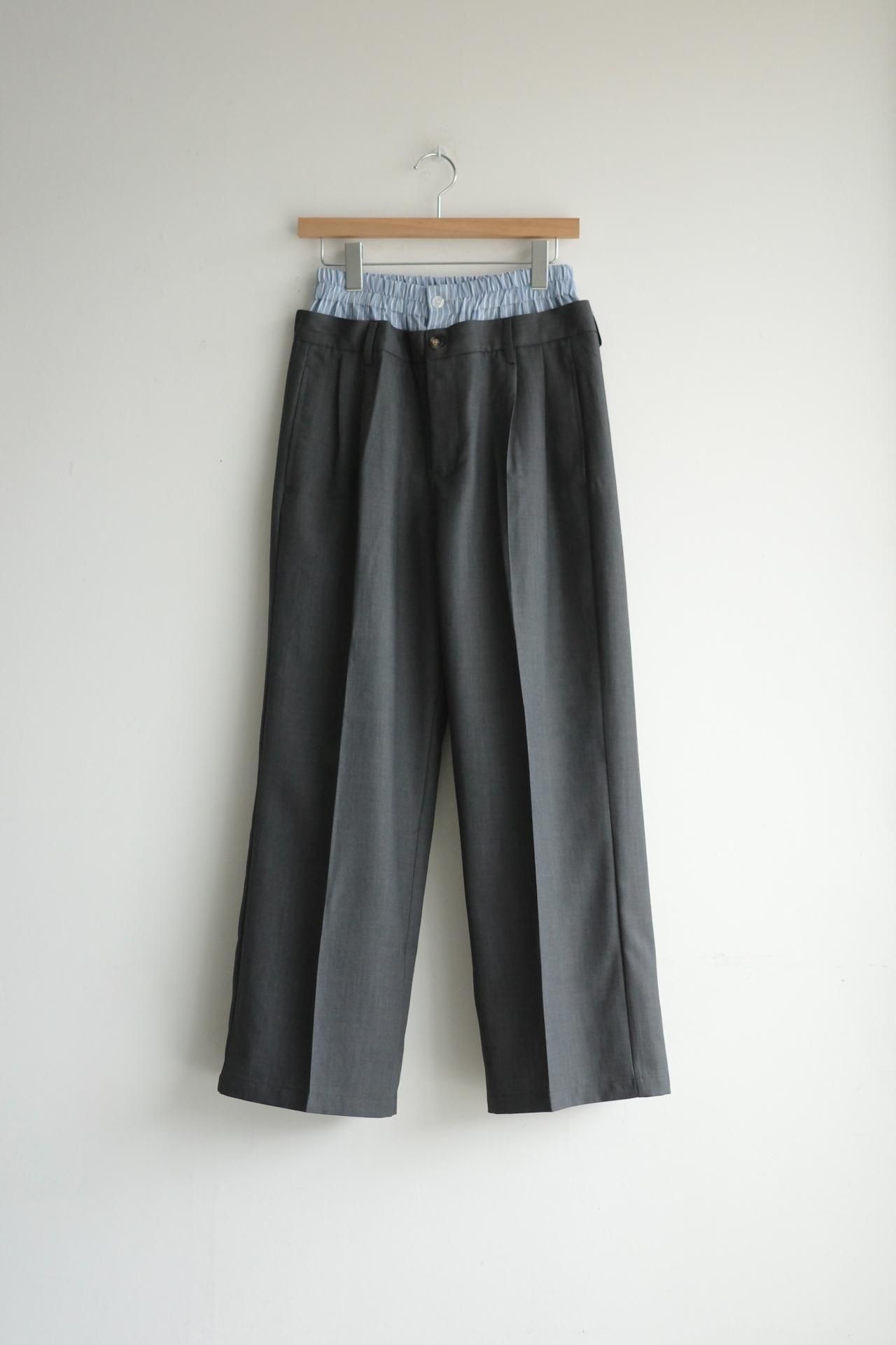 ウエストにレイヤード風デザインを施したデザインパンツ