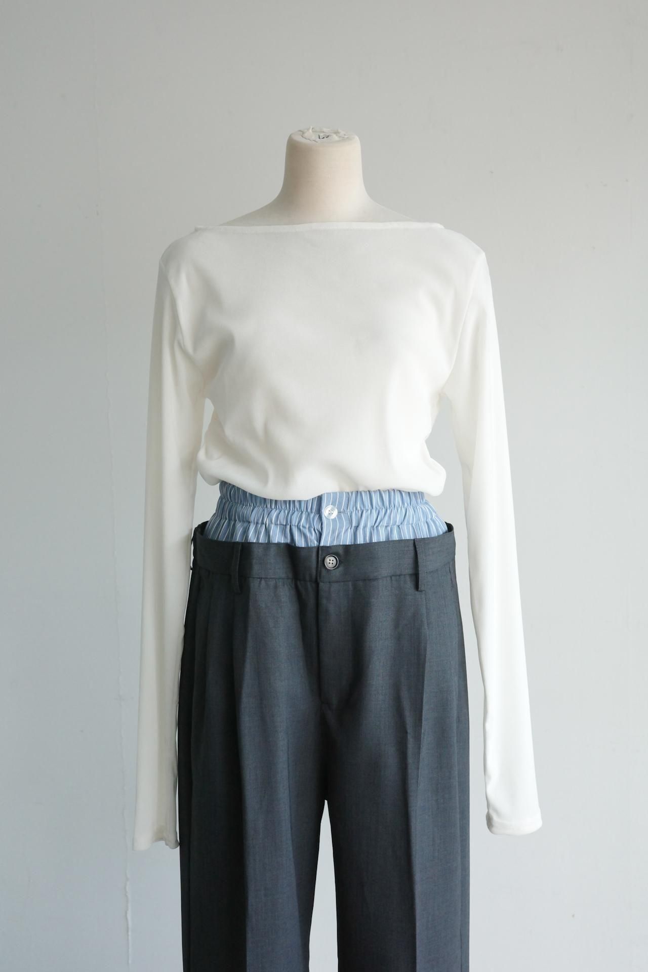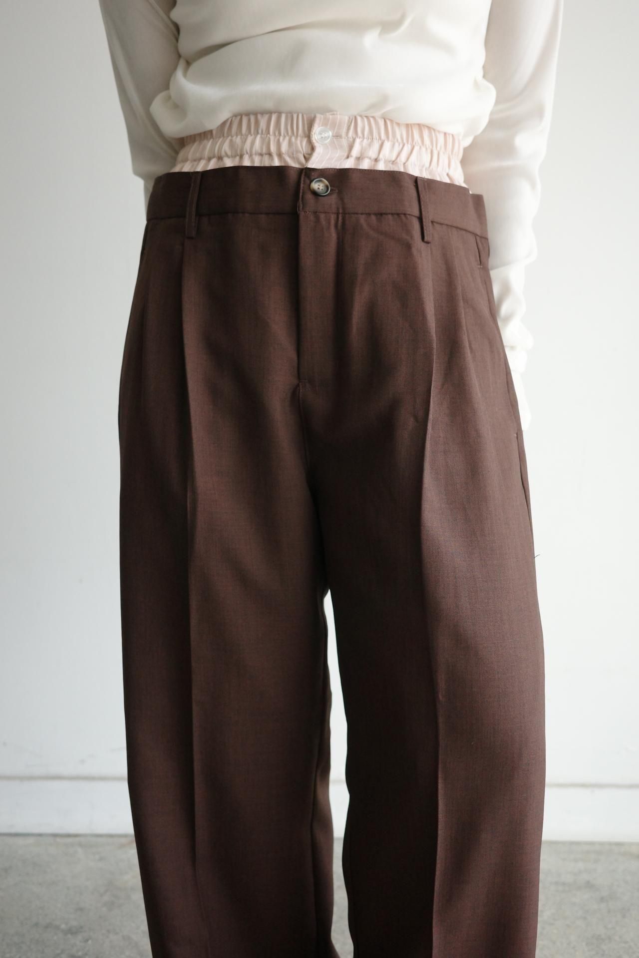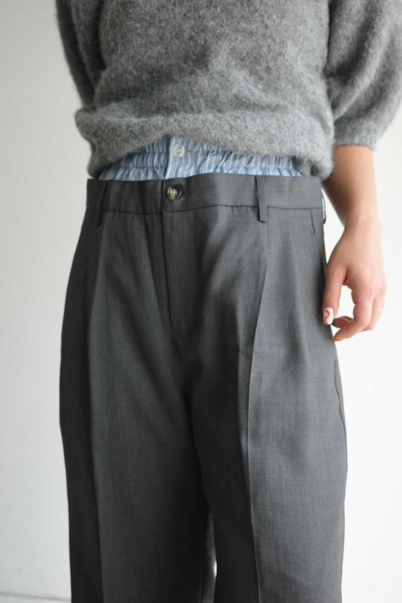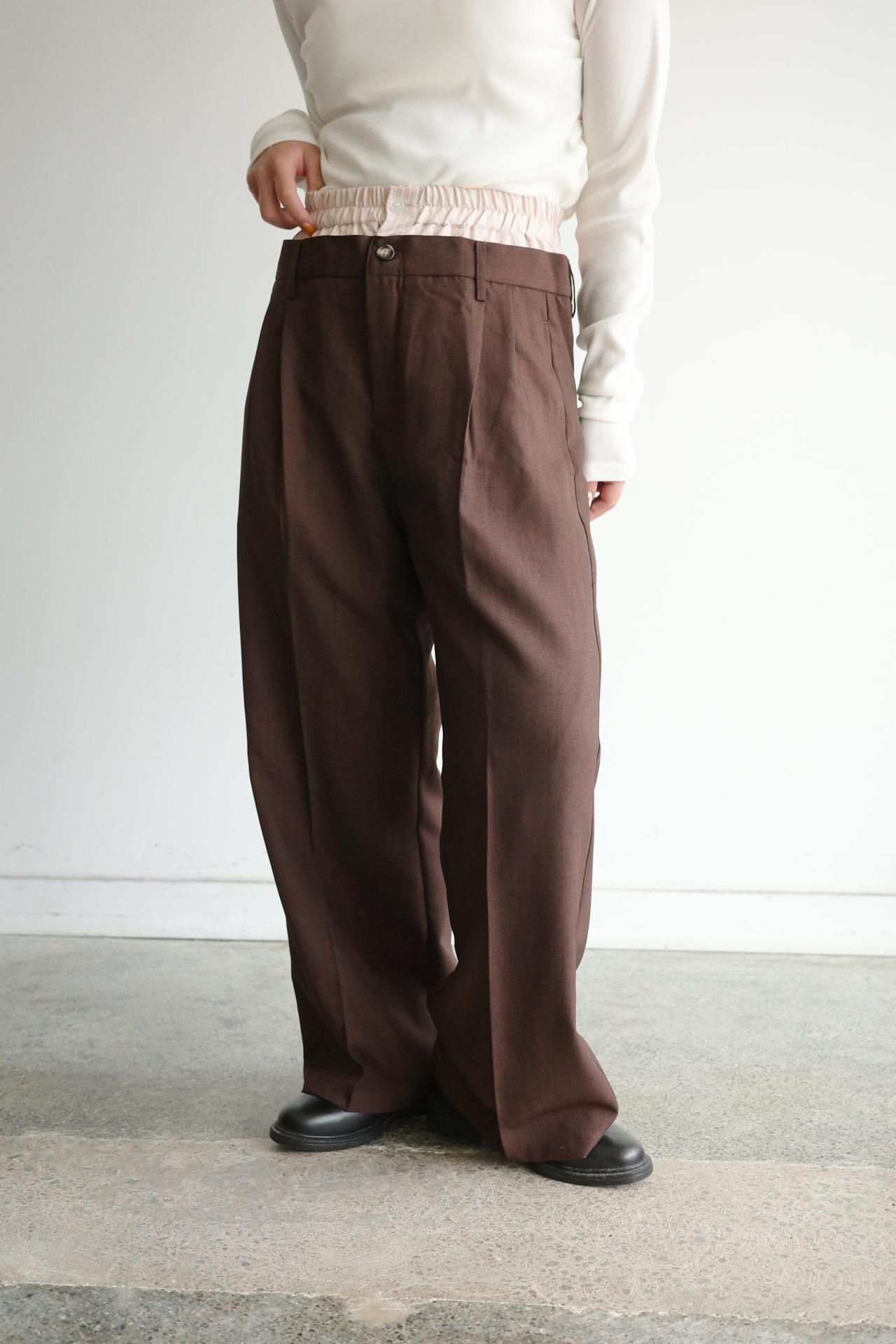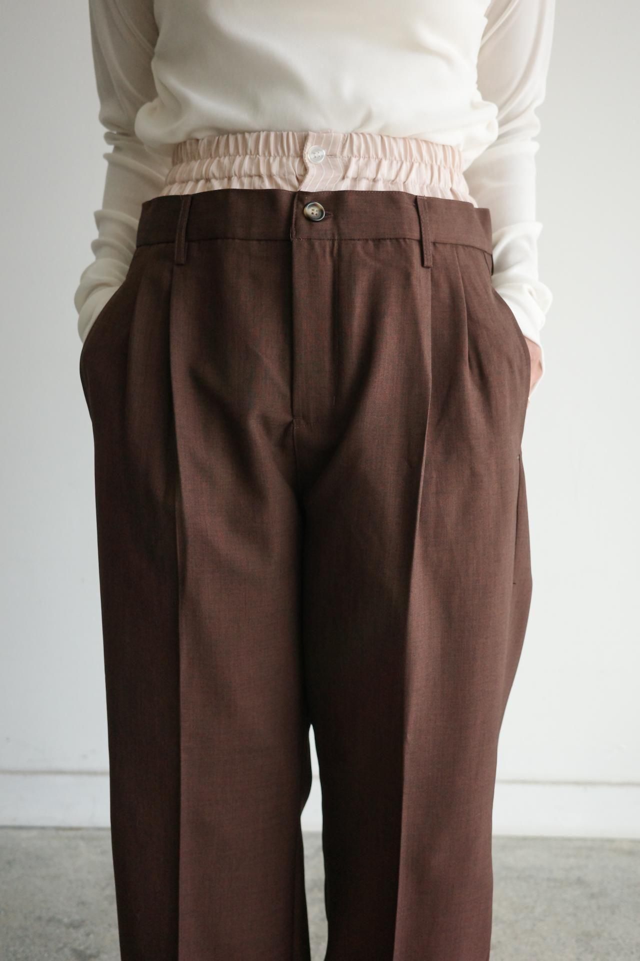 ウエストにレイヤード風デザインを施したデザインパンツ
