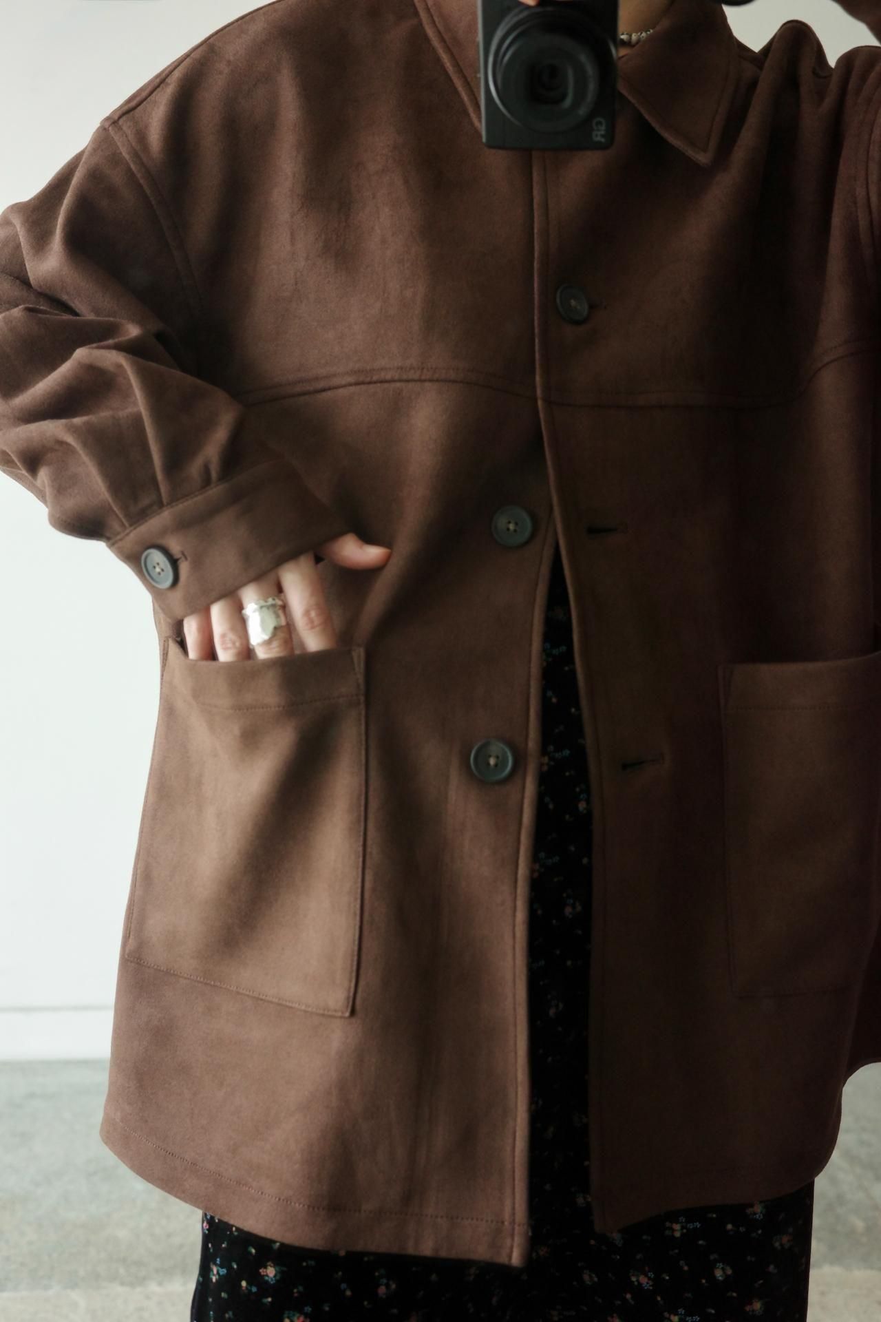 ゆったりとしたオーバーシルエットでニットも着込めるので