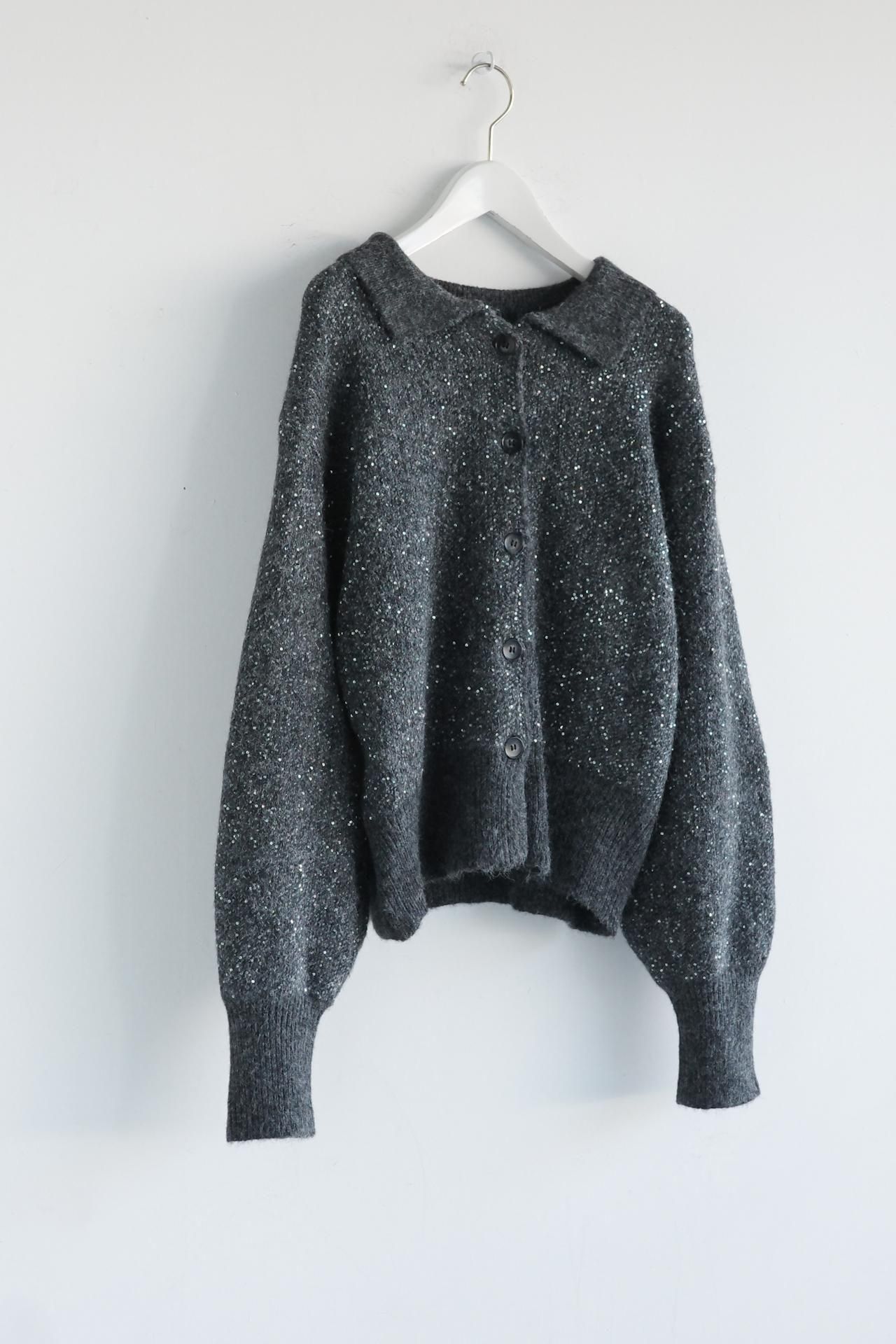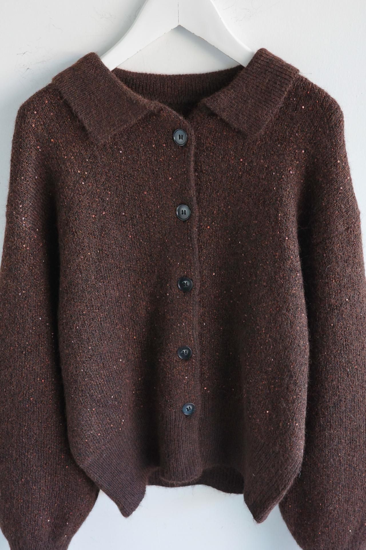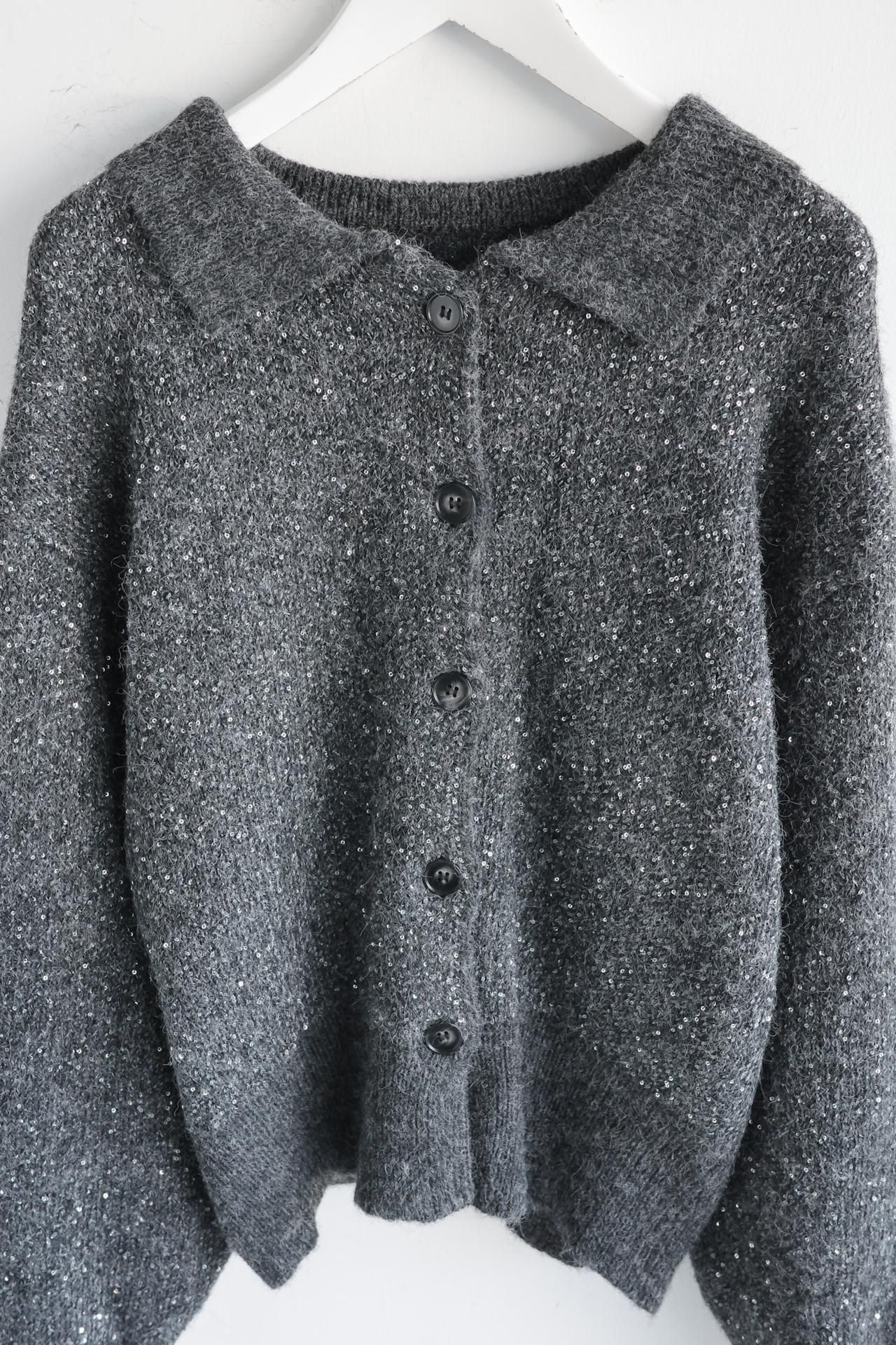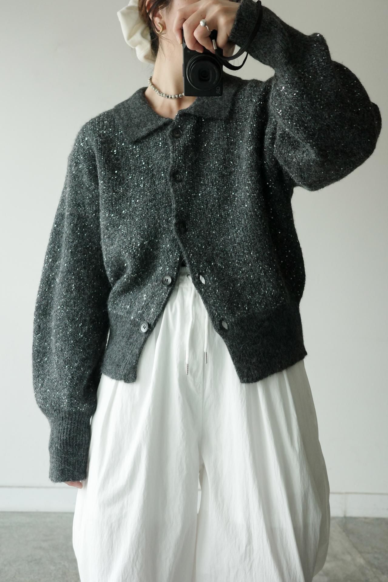 上品に輝くスパンコールを散りばめたポロニットカーディガン