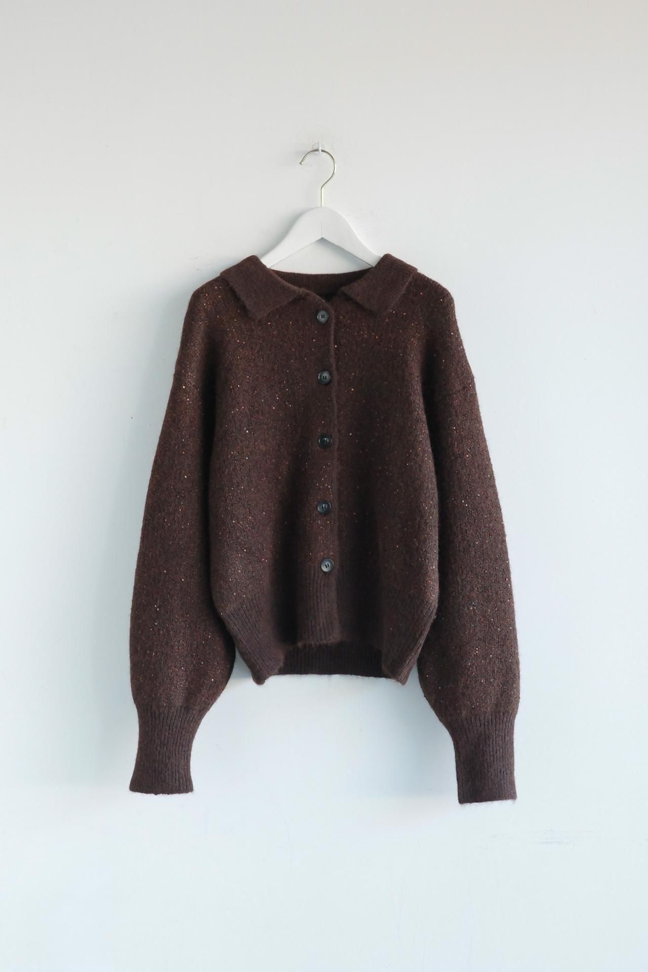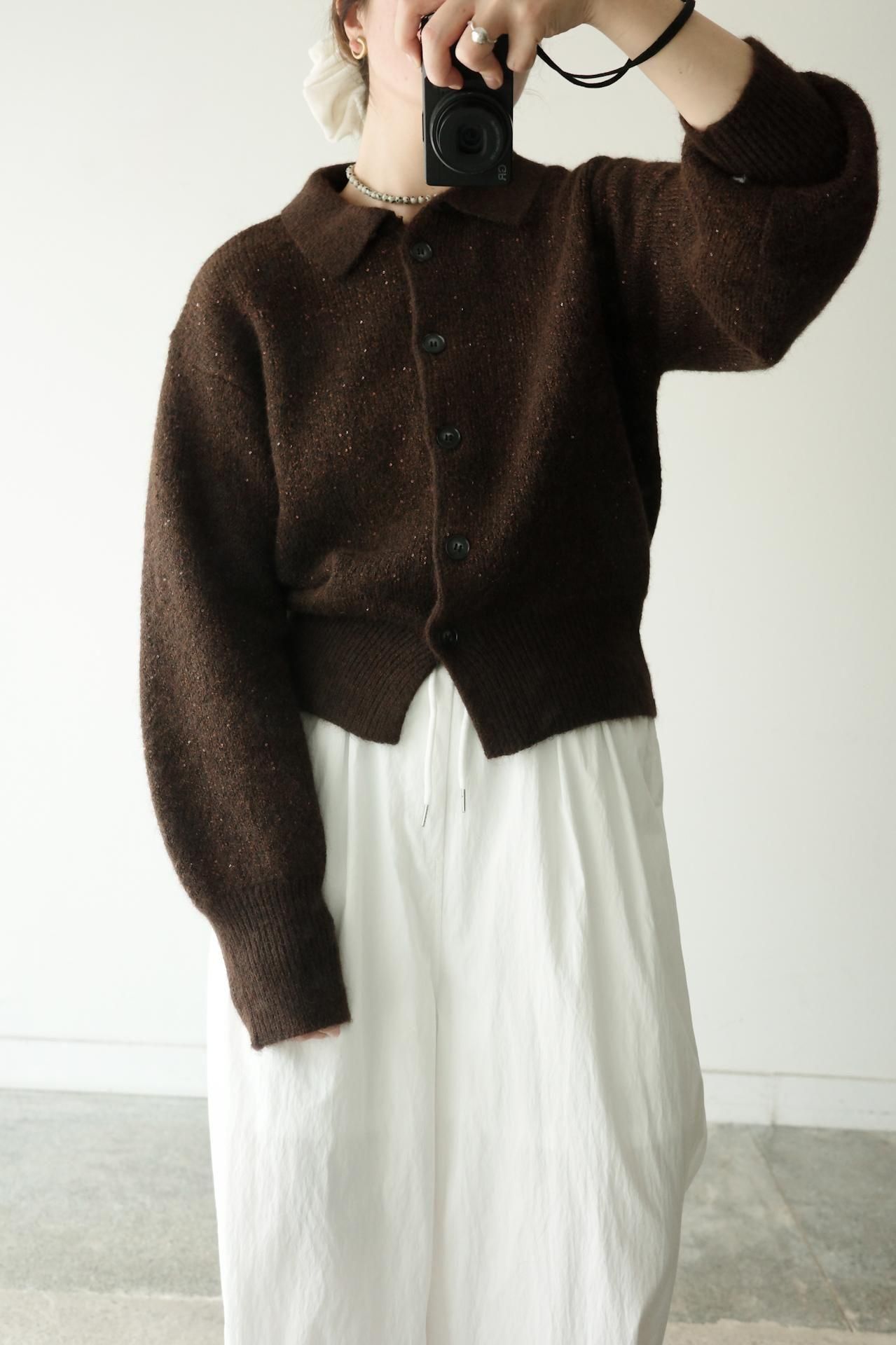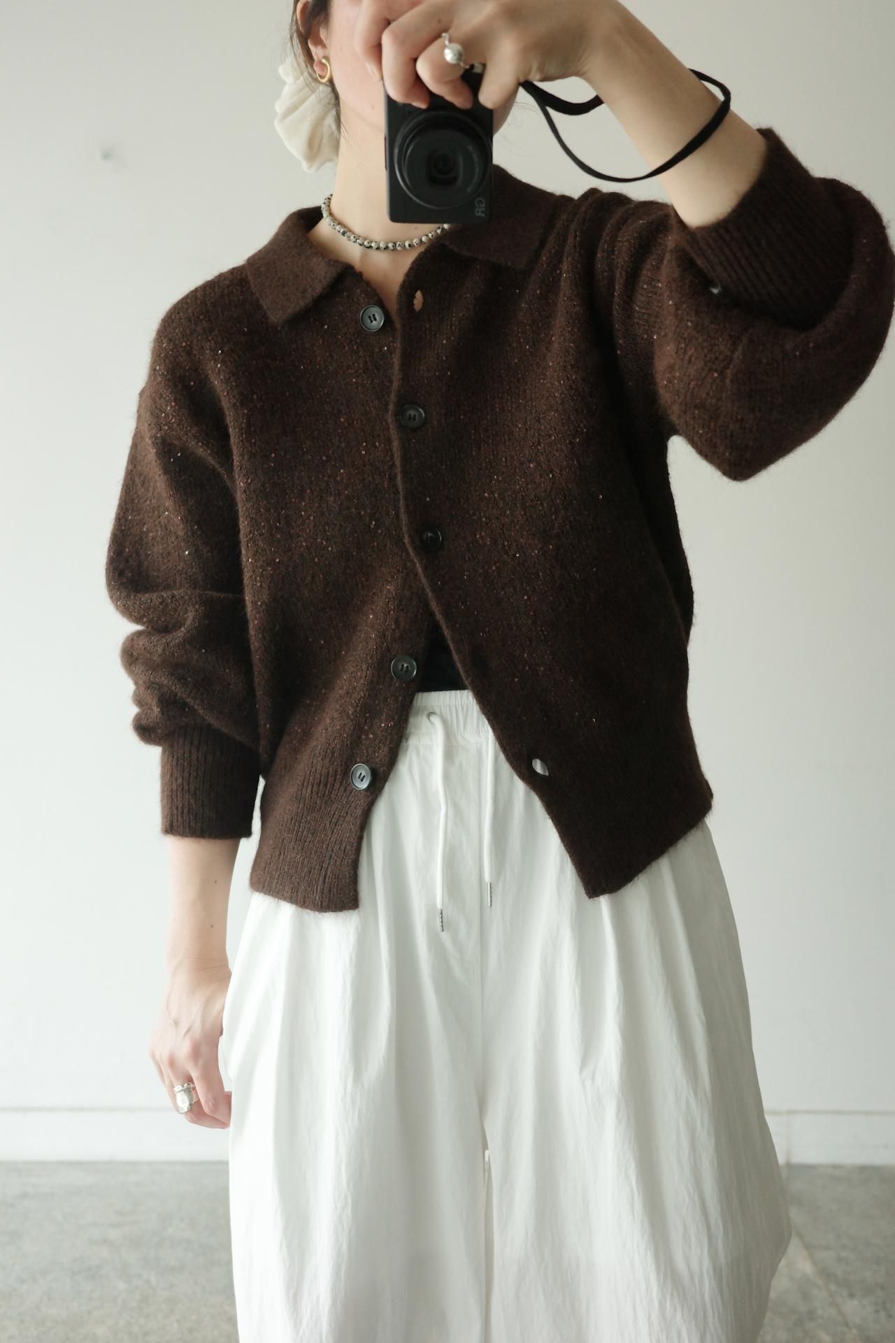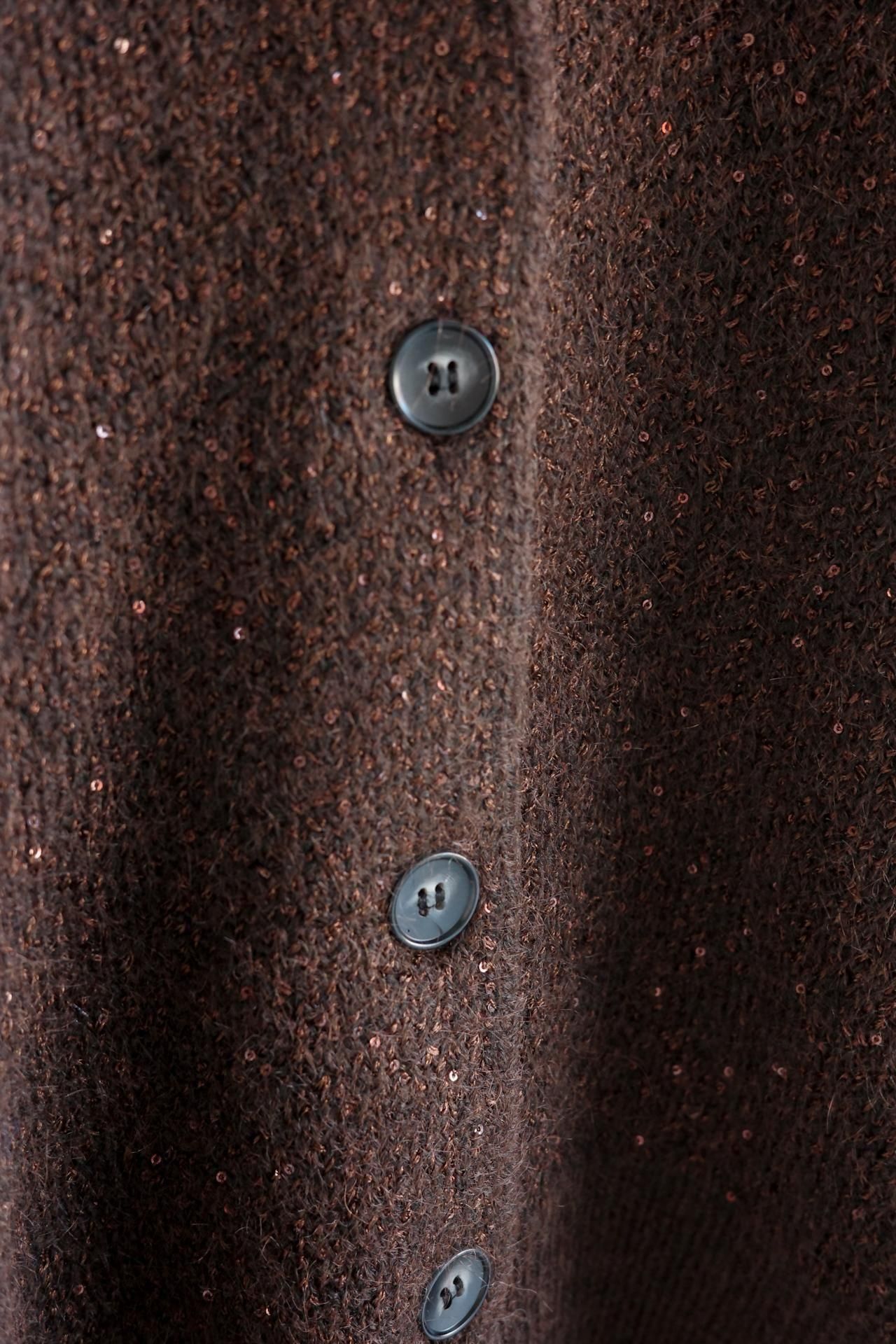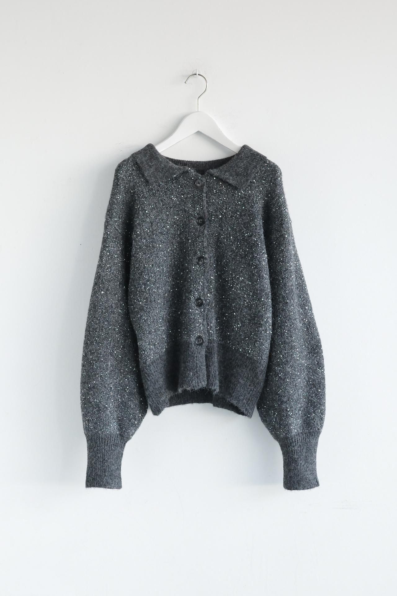 上品に輝くスパンコールを散りばめたポロニットカーディガン