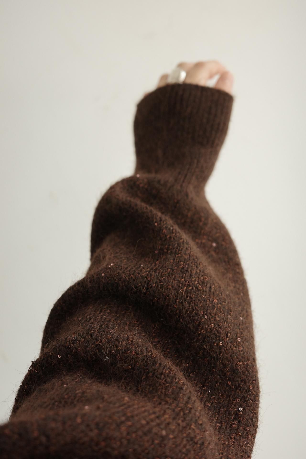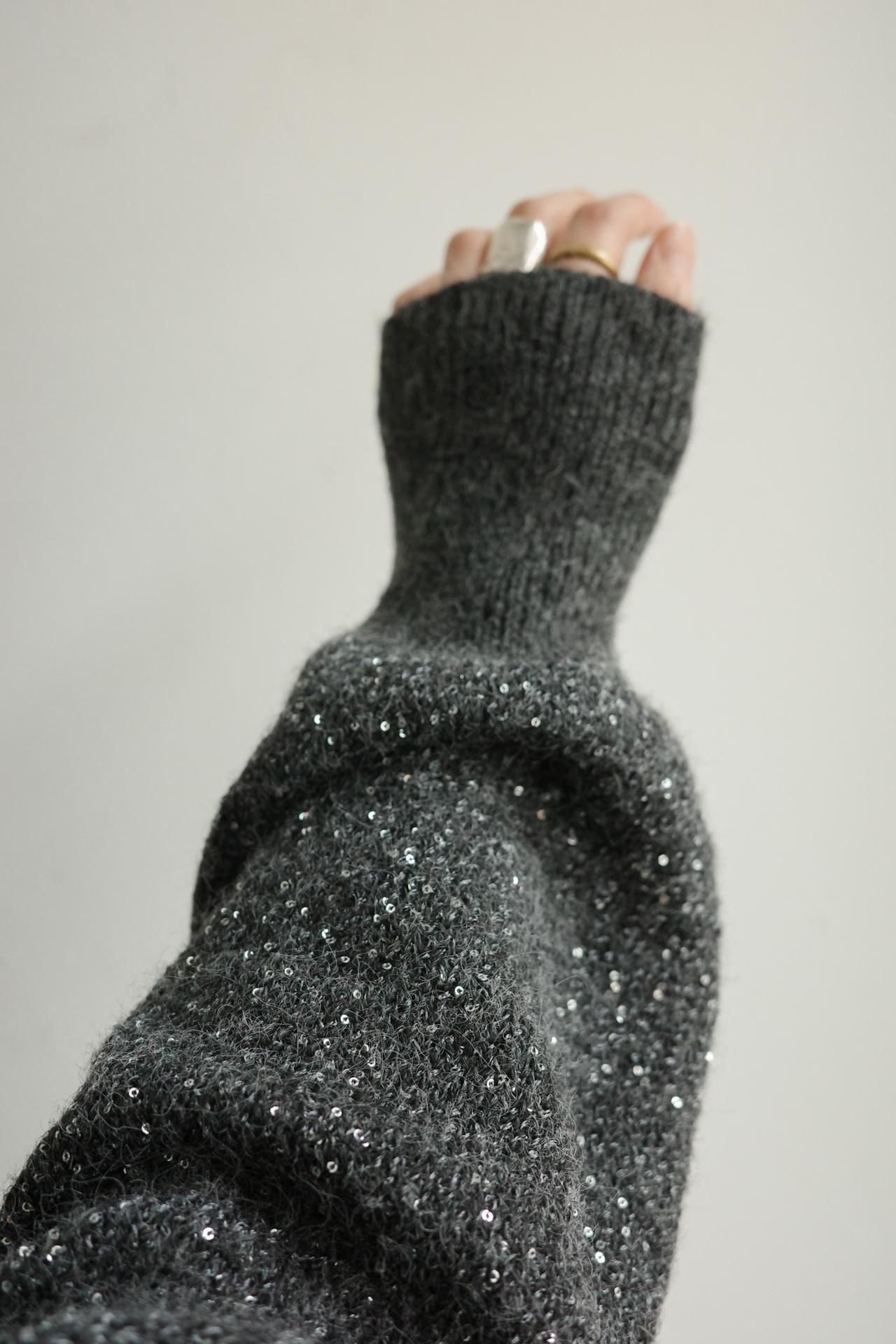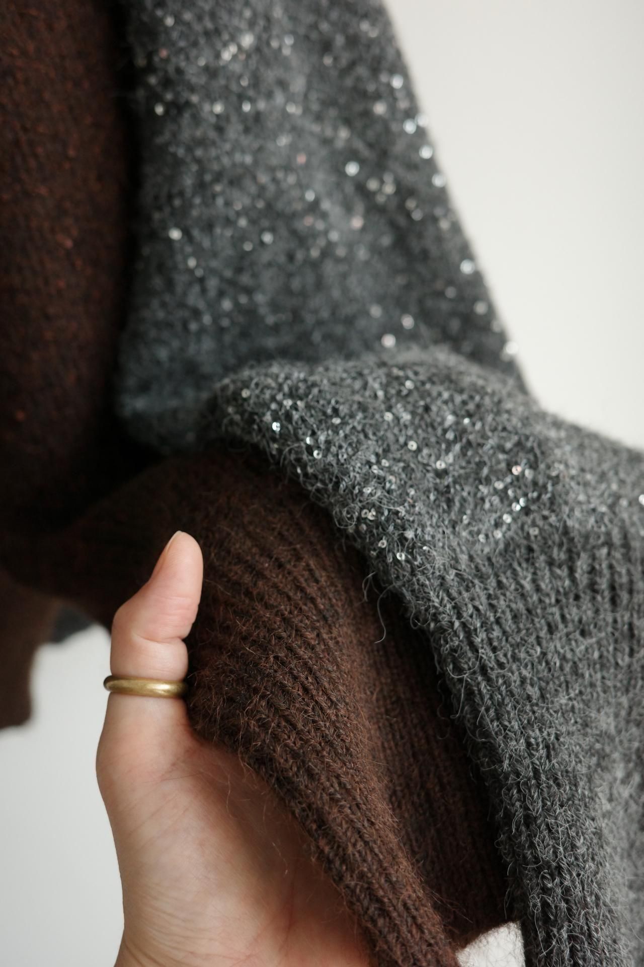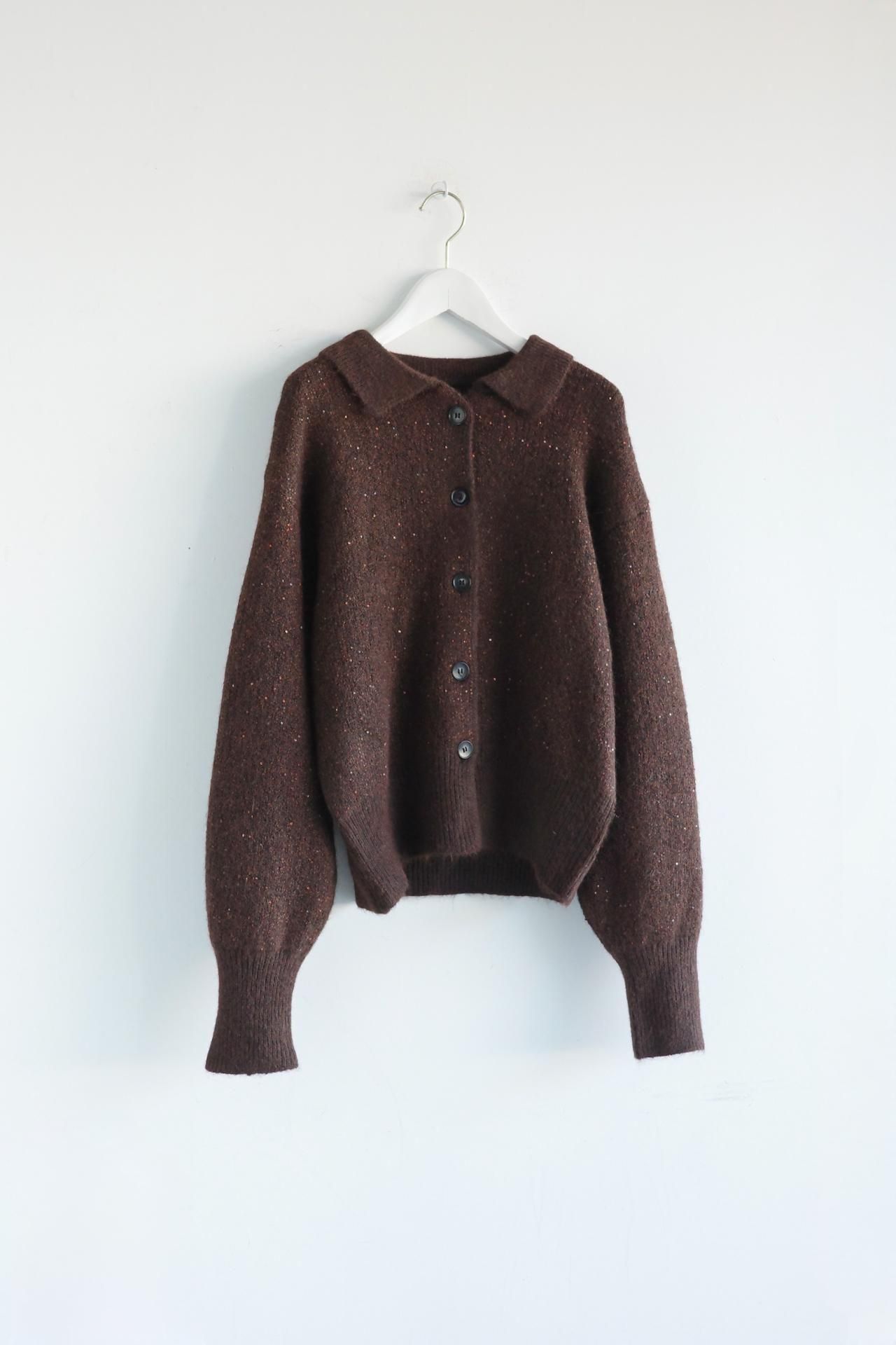 上品に輝くスパンコールを散りばめたポロニットカーディガン