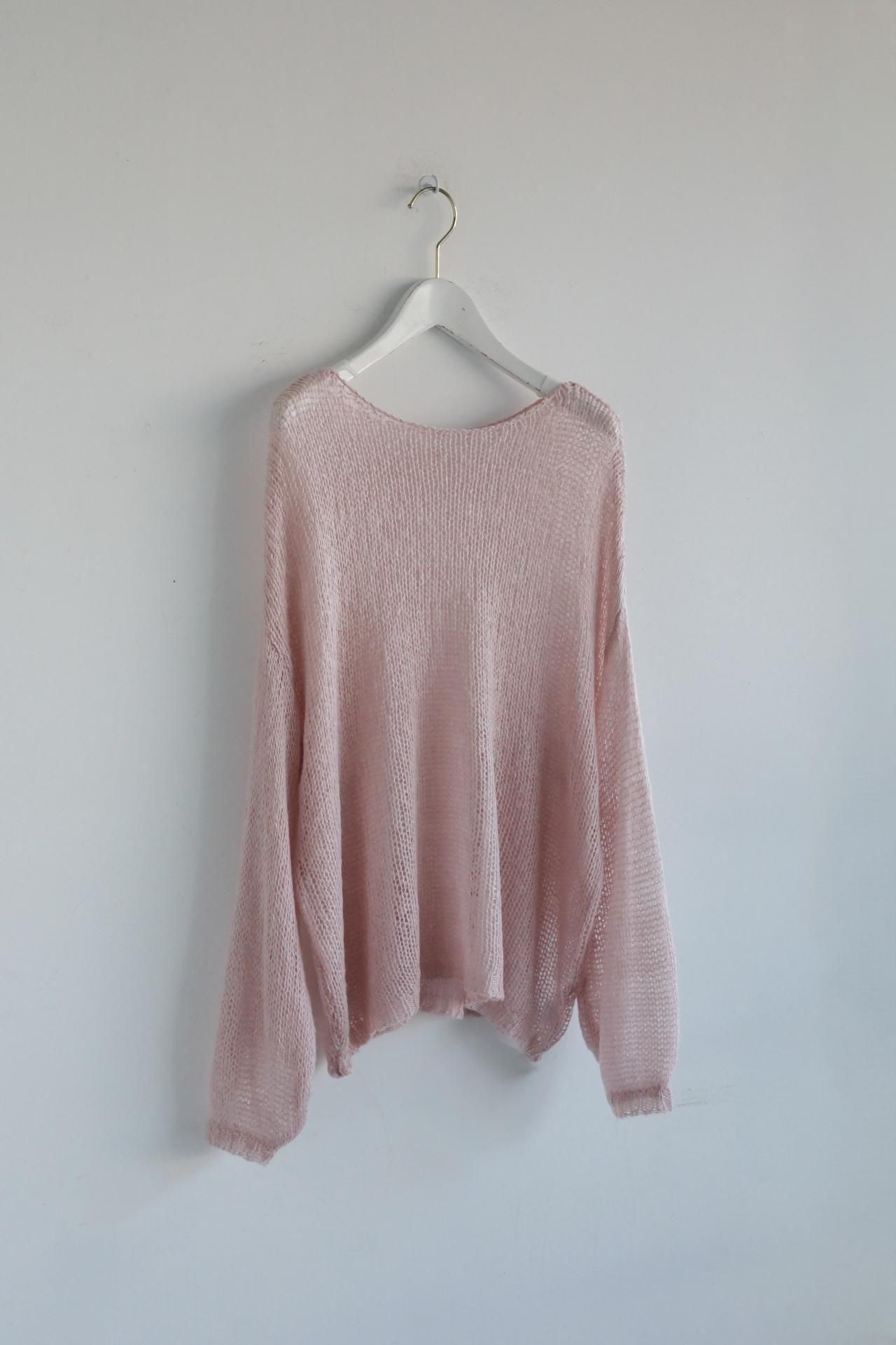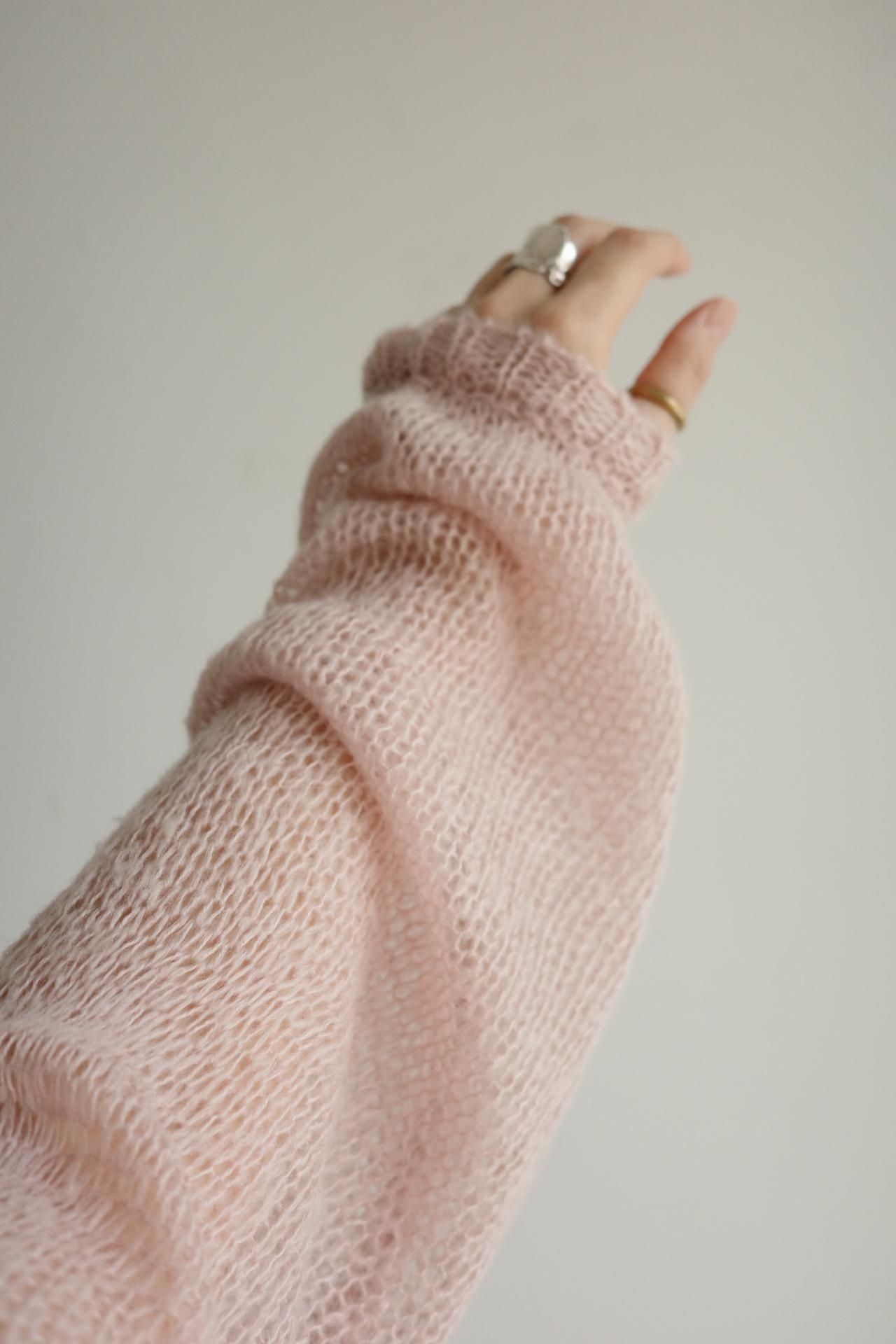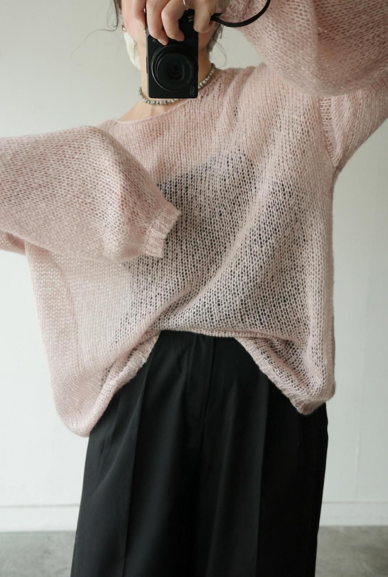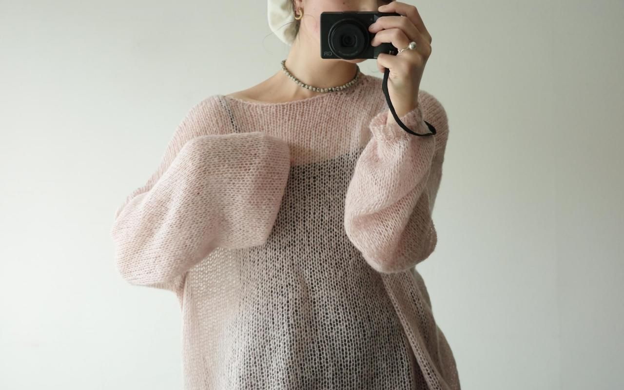 モヘアライクな質感と淡いくすみピンクが女性らしい