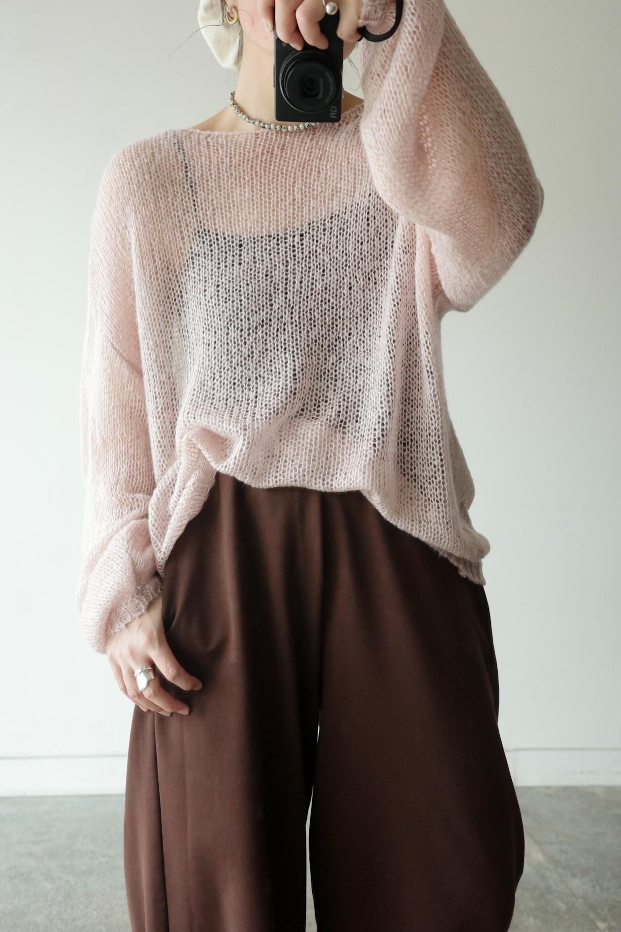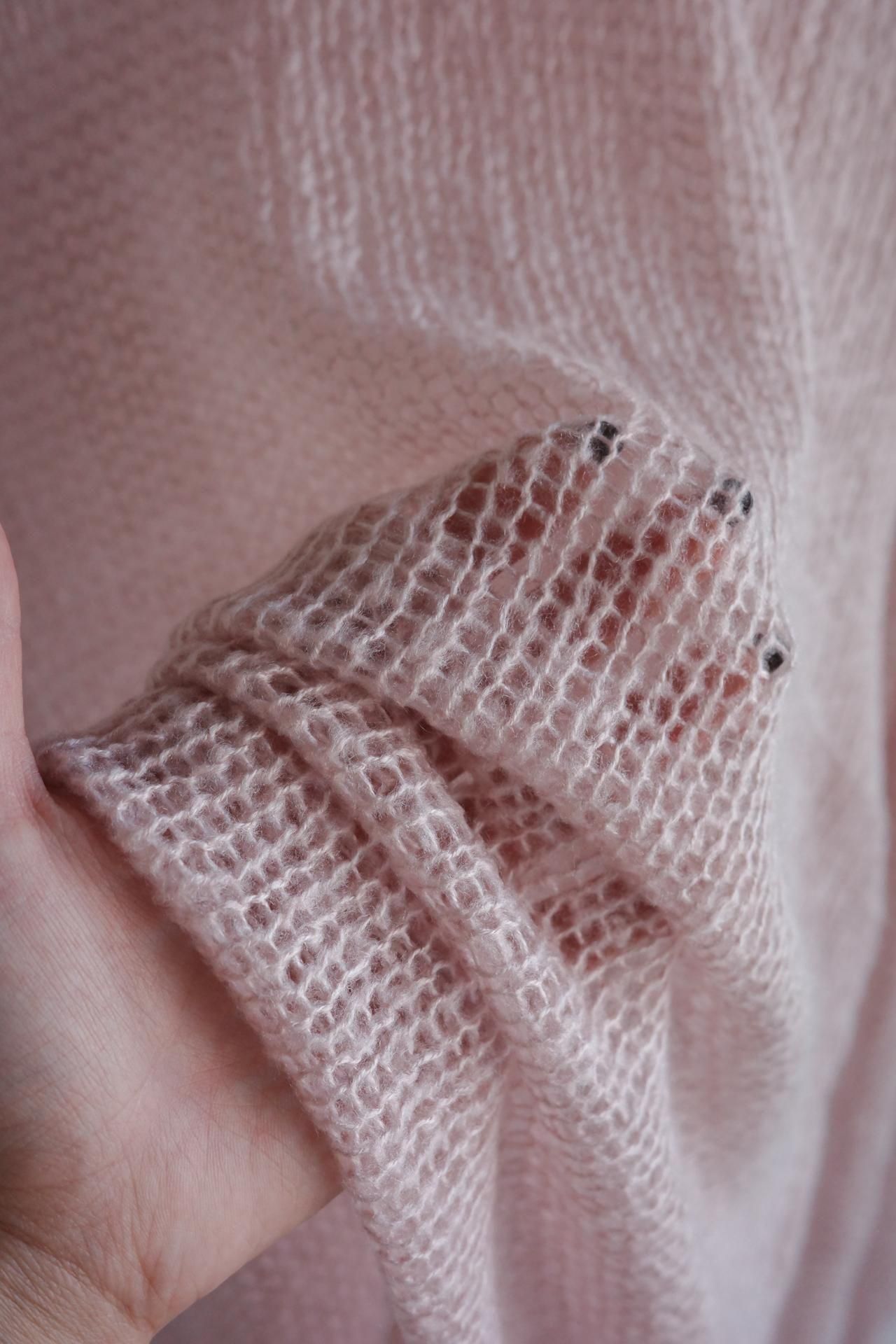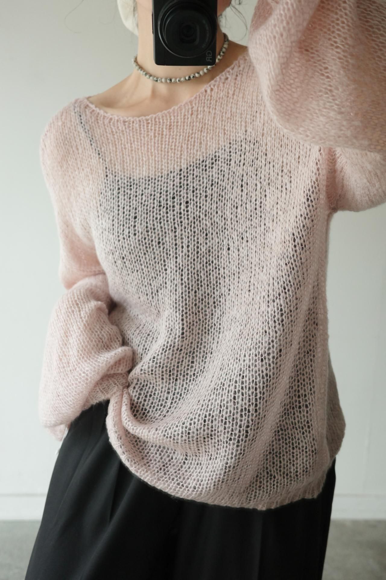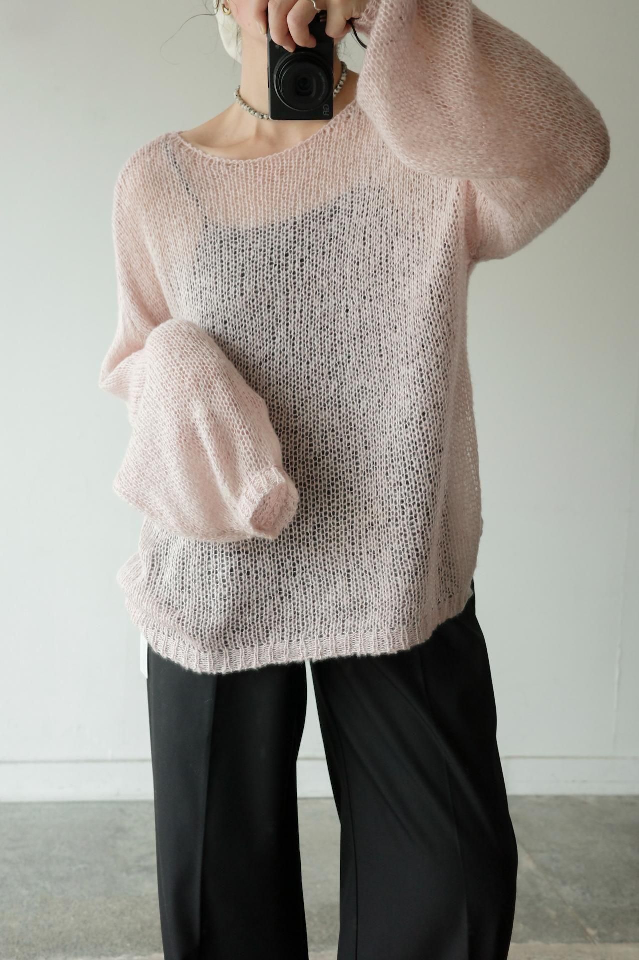 モヘアライクな質感と淡いくすみピンクが女性らしい