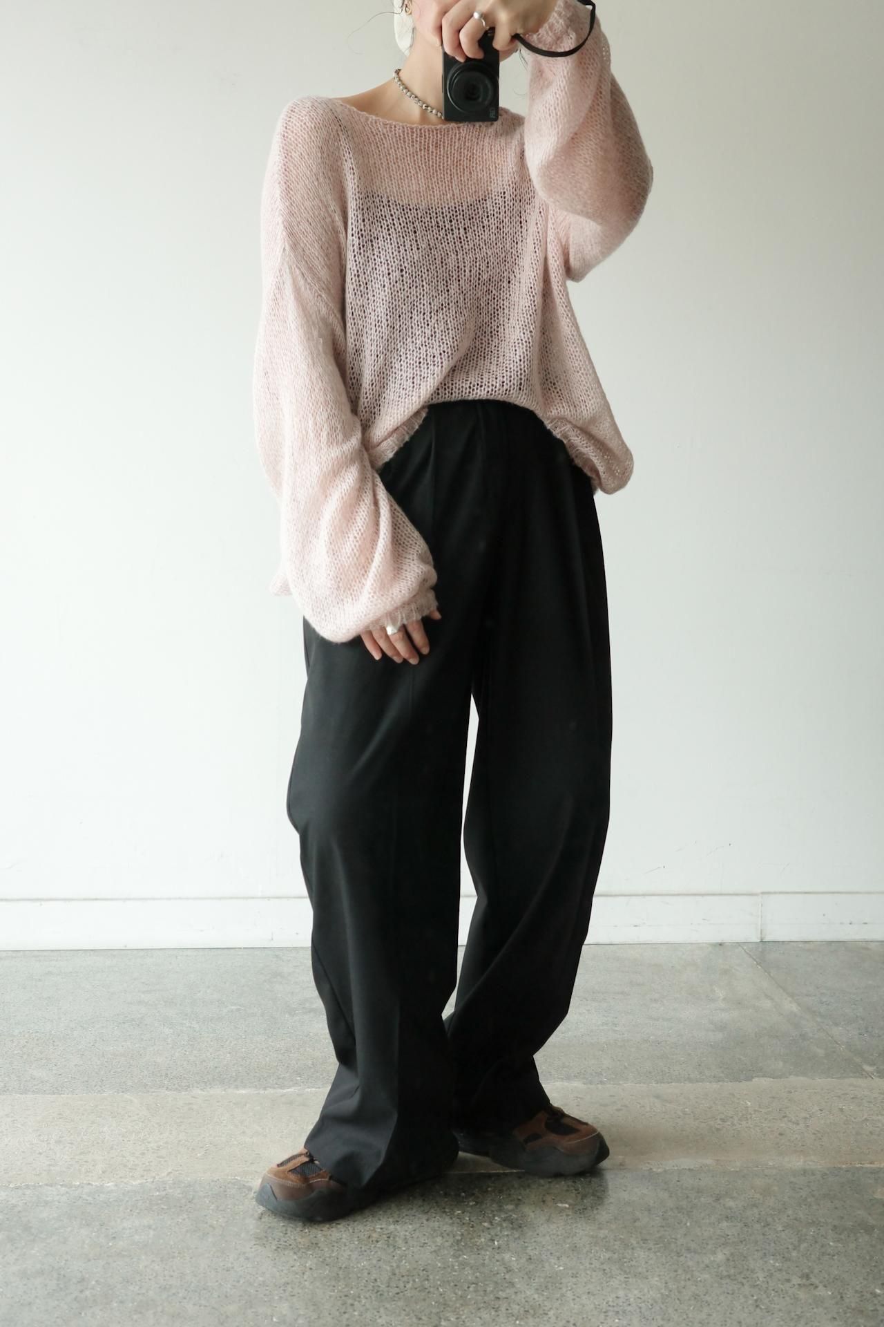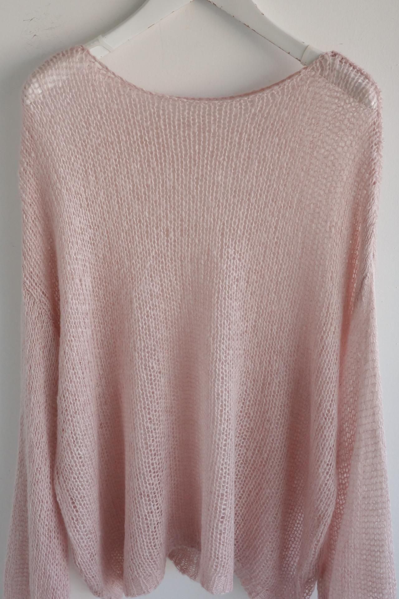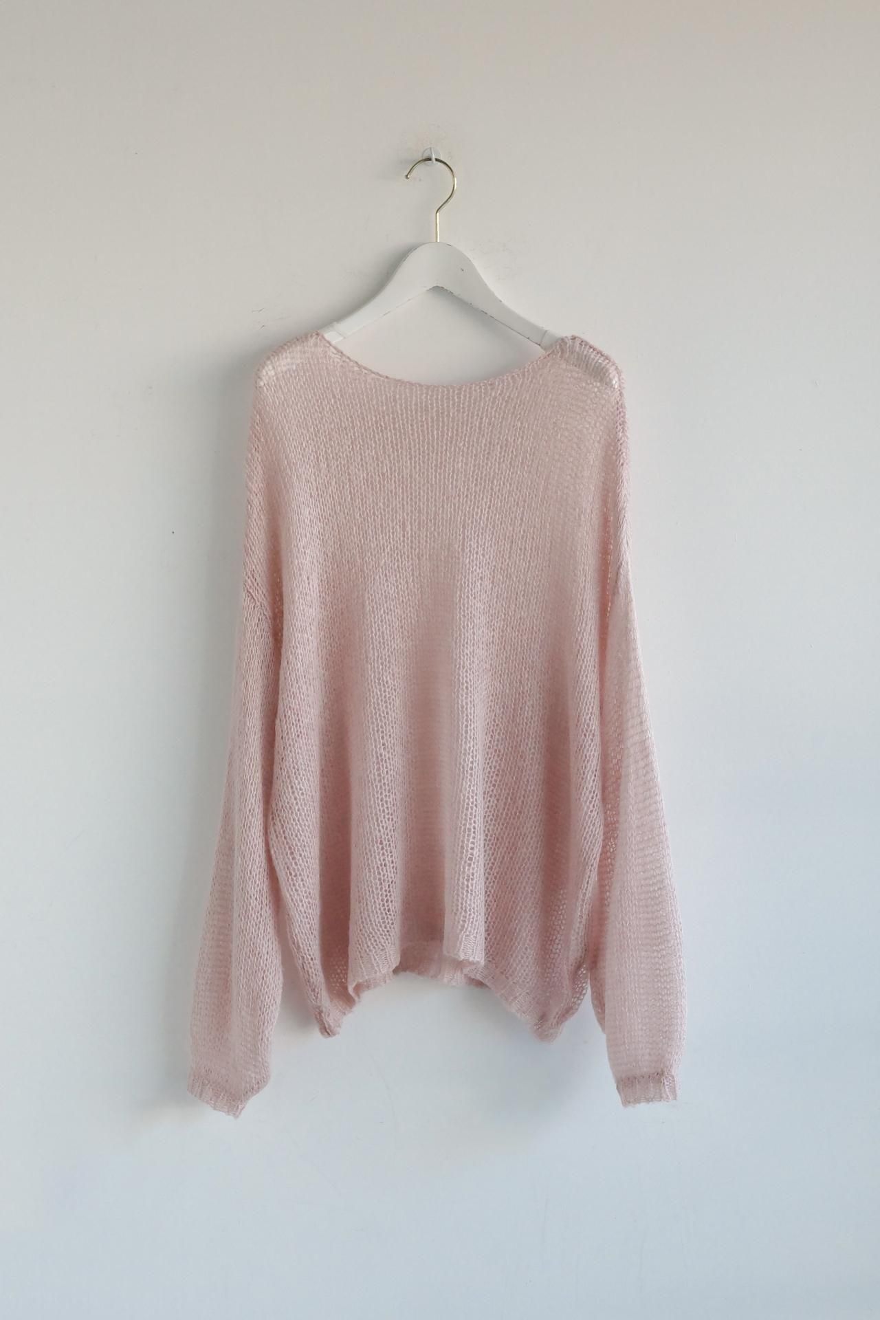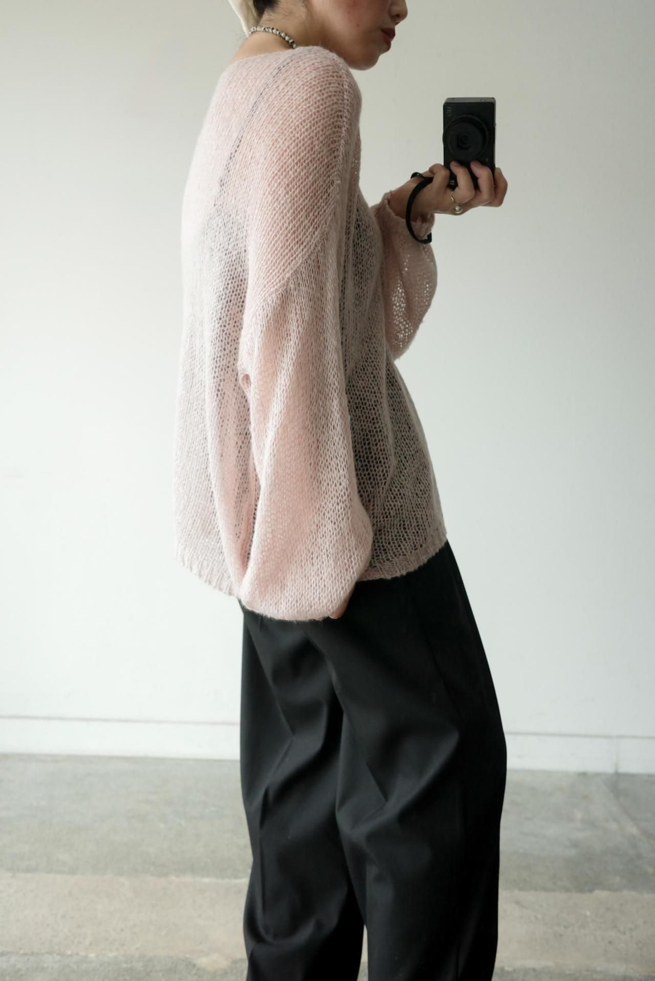 モヘアライクな質感と淡いくすみピンクが女性らしい