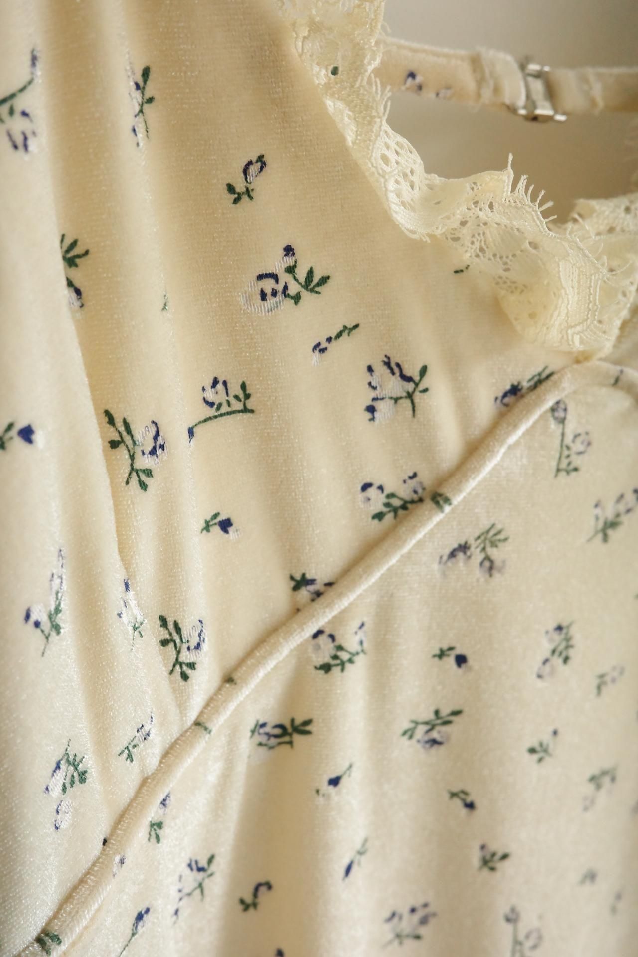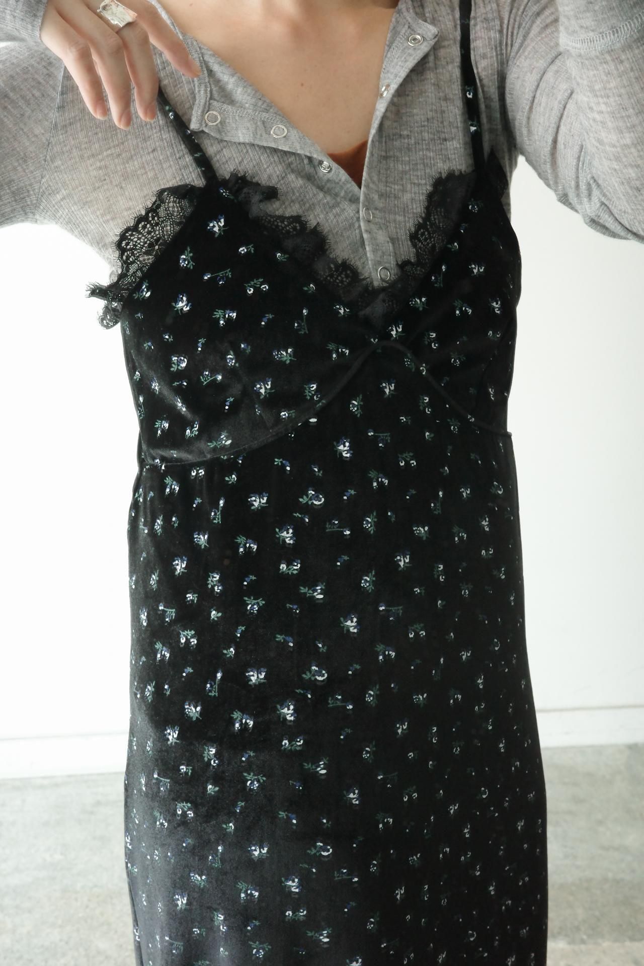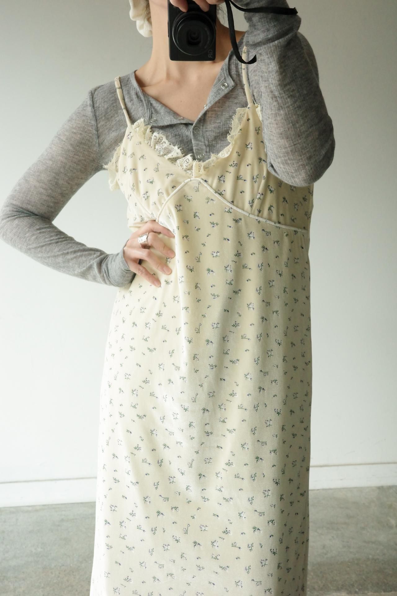 胸元には繊細なレースを重ねすっきりとしたカッティングで