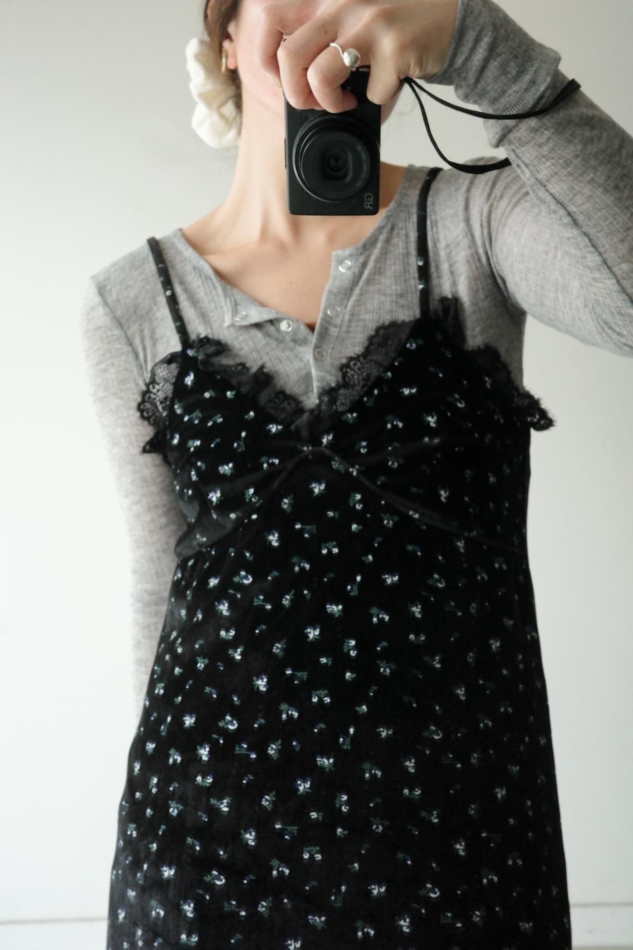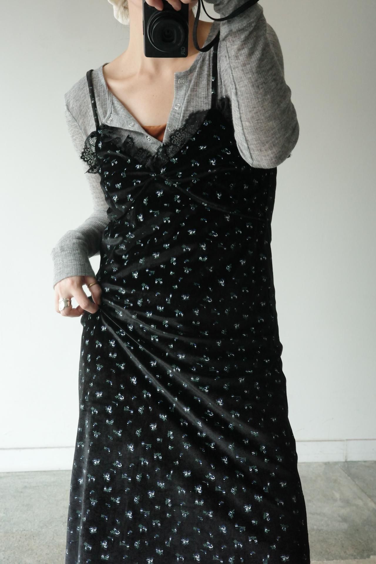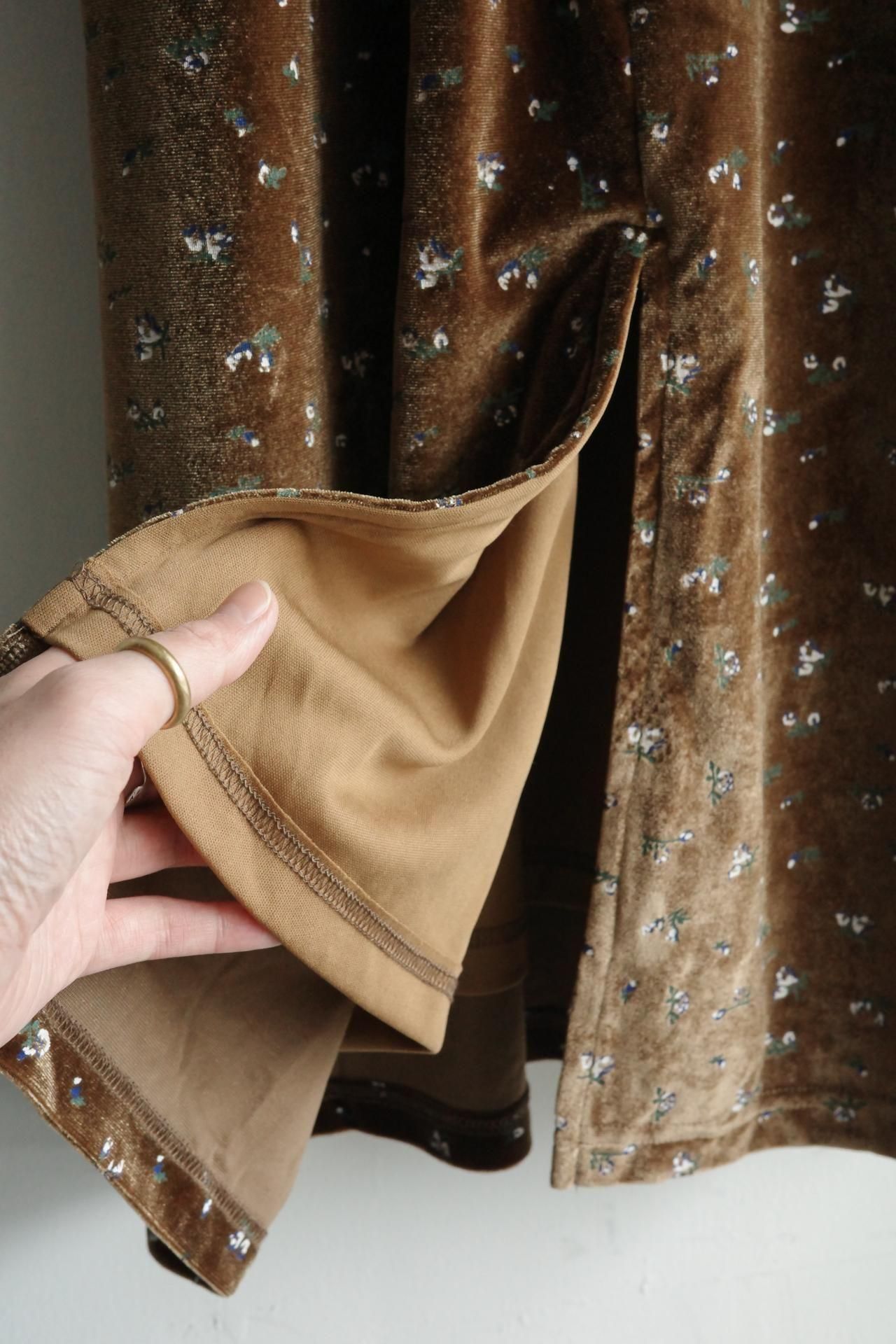 すとんと落ちるベロア素材でスリット入りなので足さばきもらくらくです