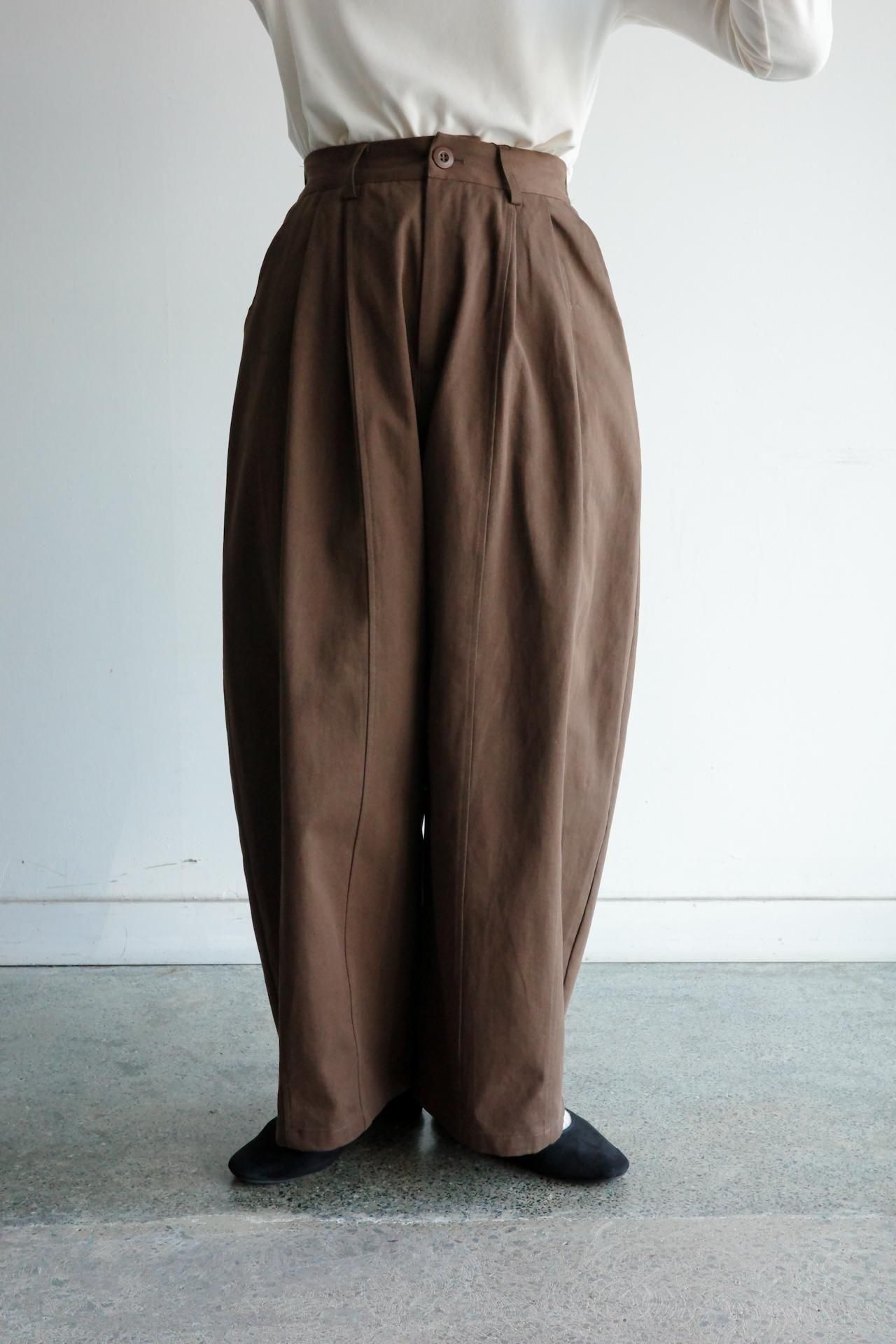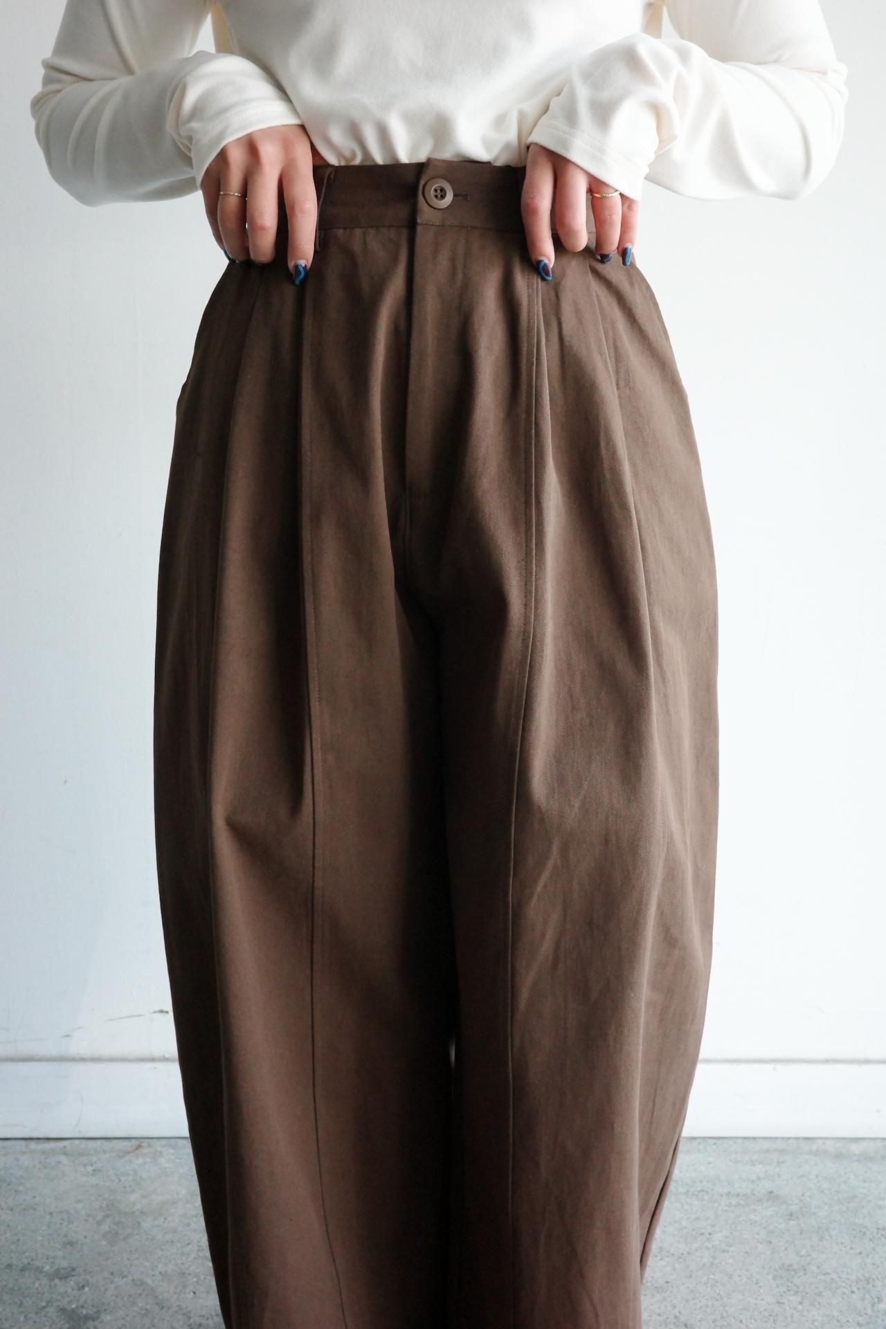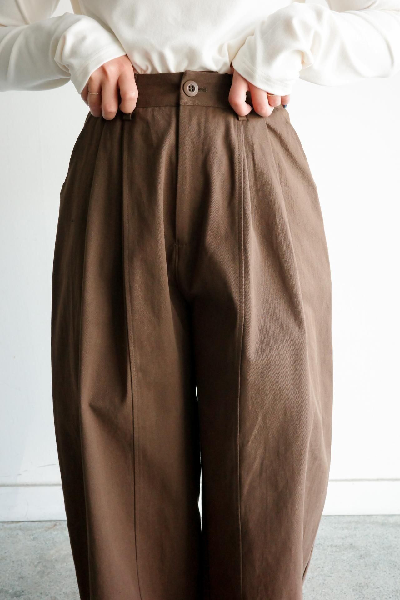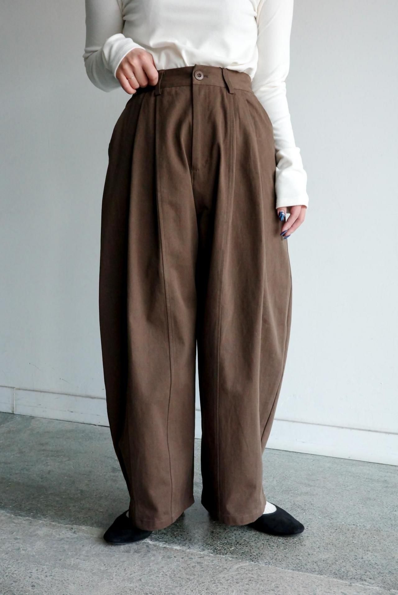 バレルレッグシルエットのコットンタックパンツ