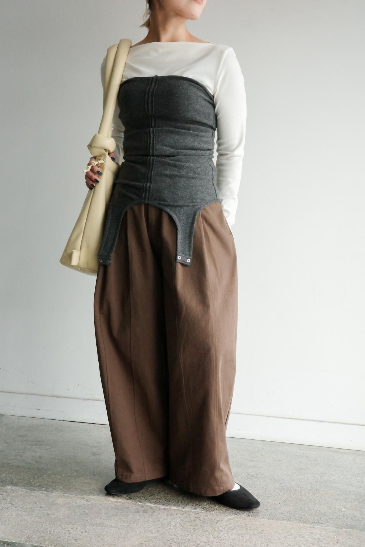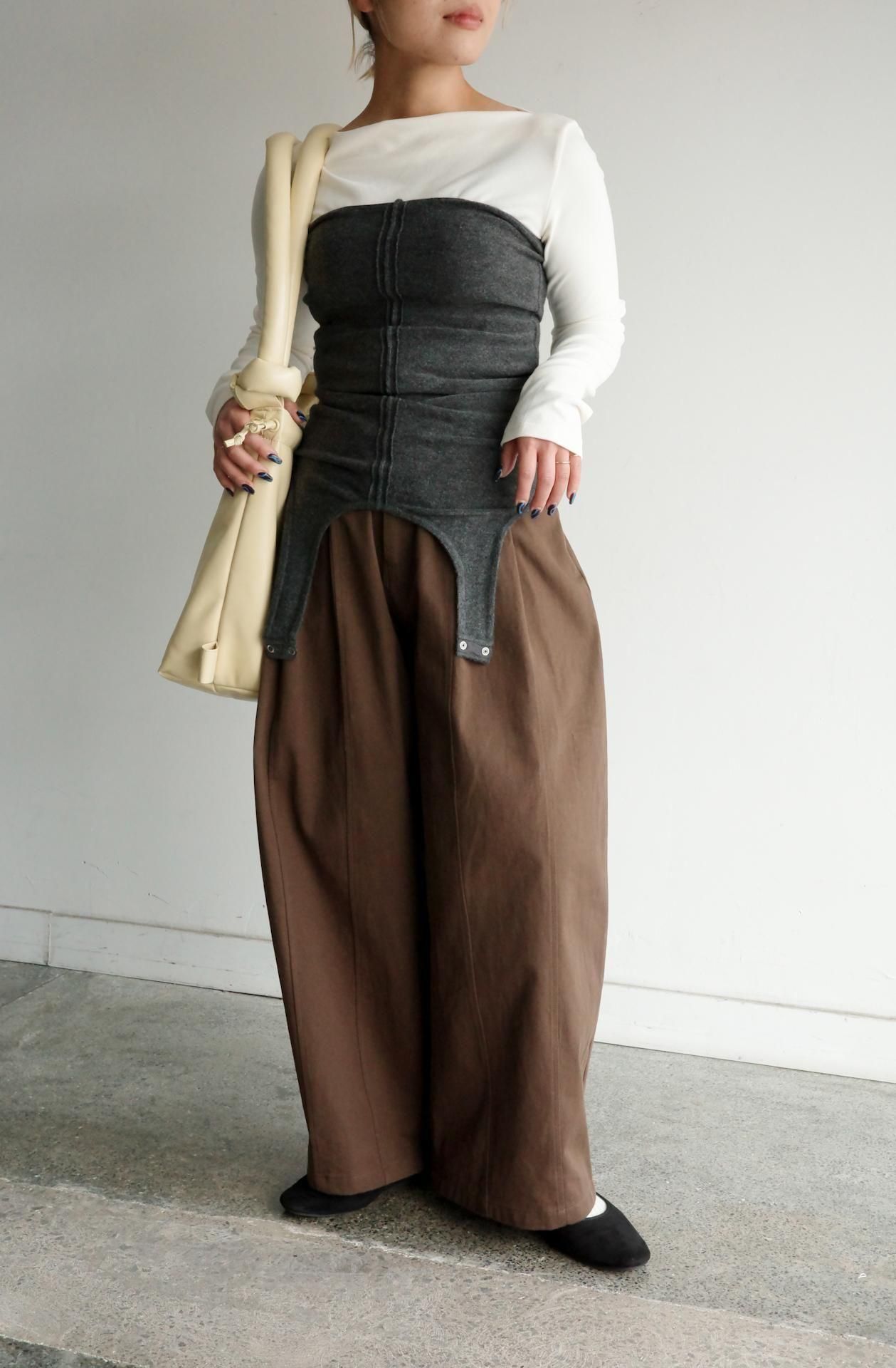 カーブシルエットとウエストタックでメリハリを