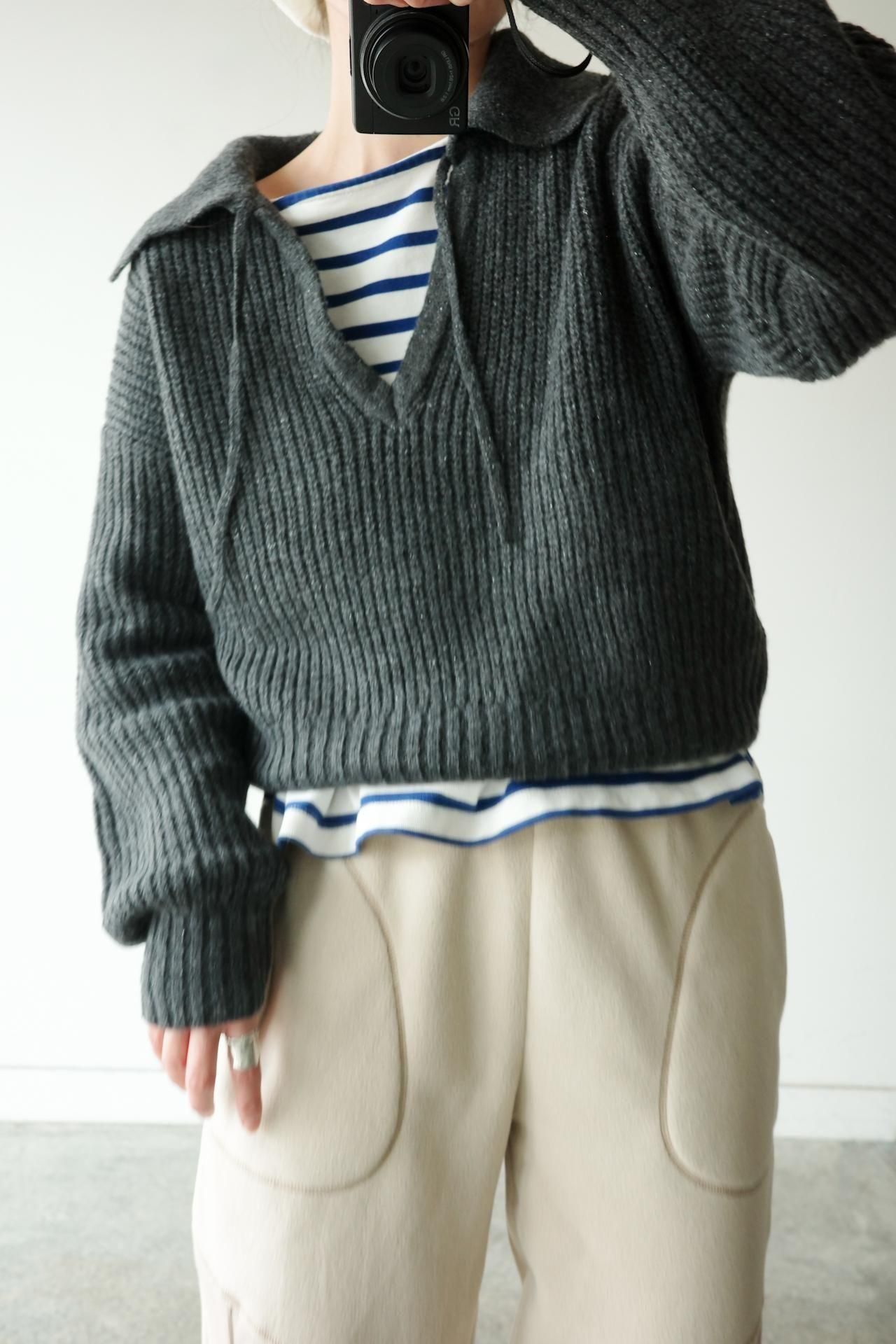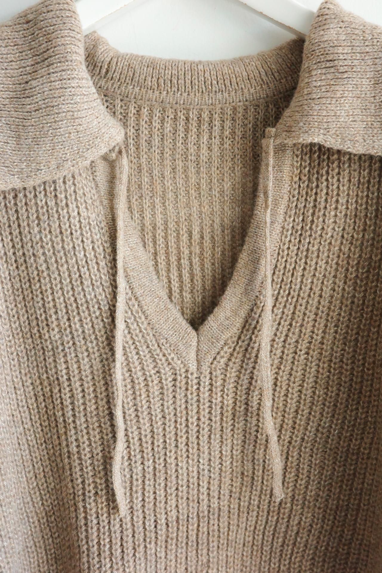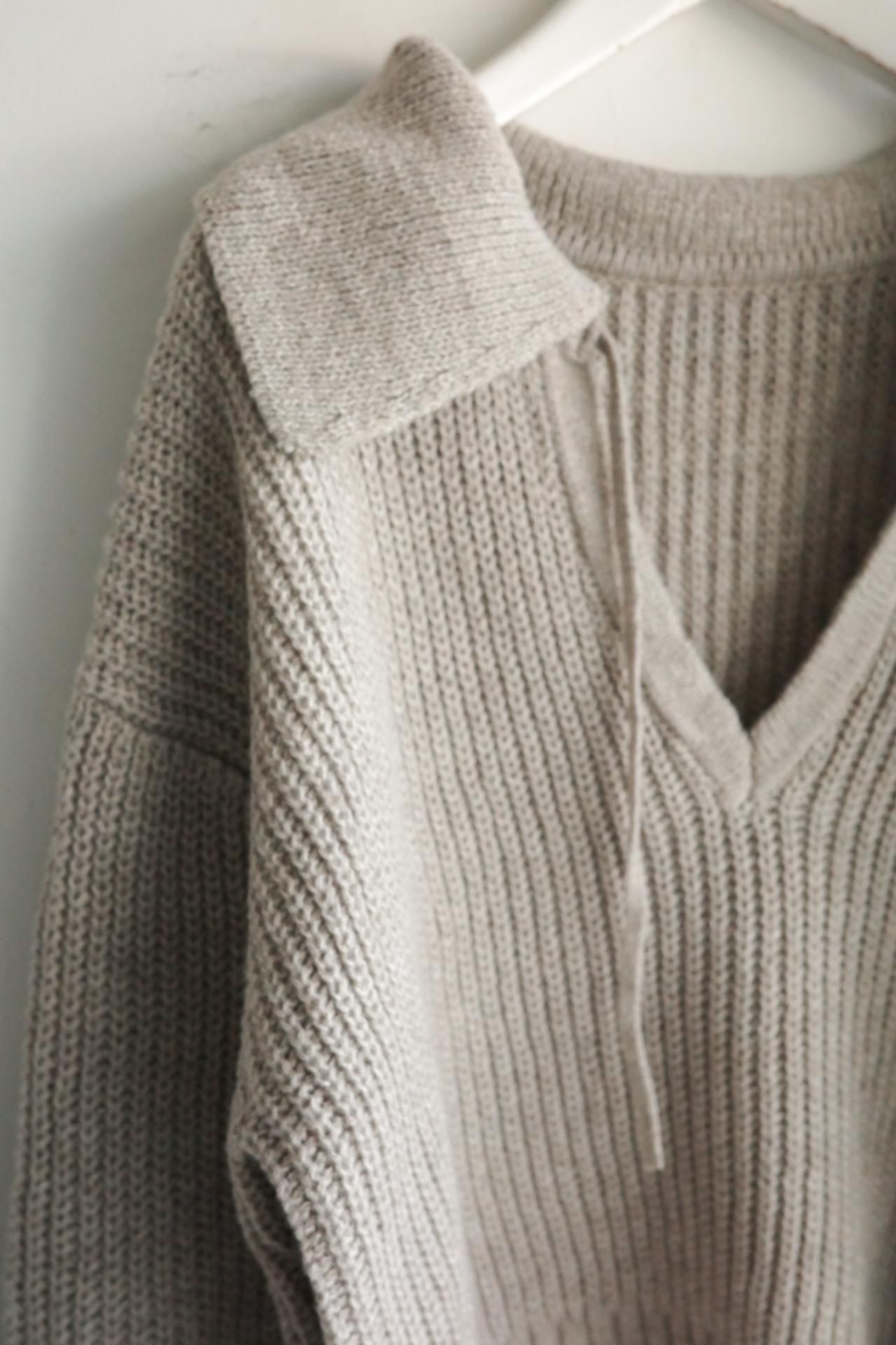 襟元のデザインが魅力のニットトップス