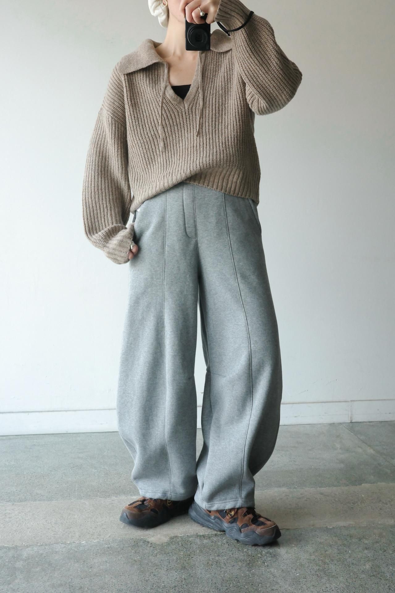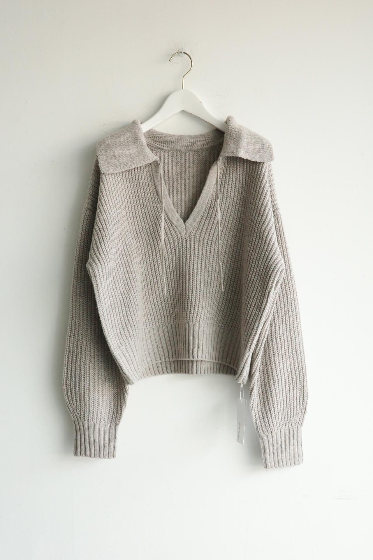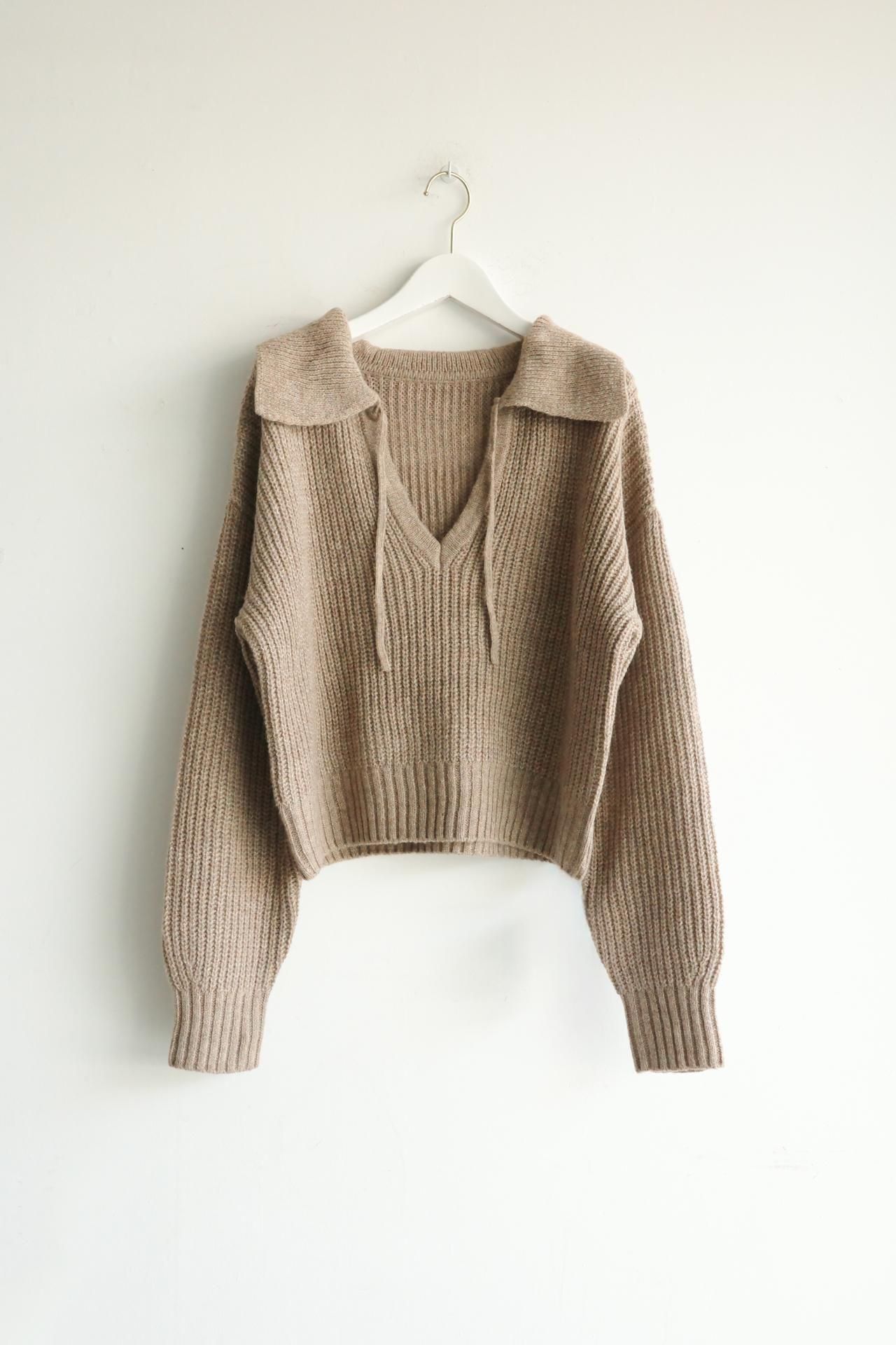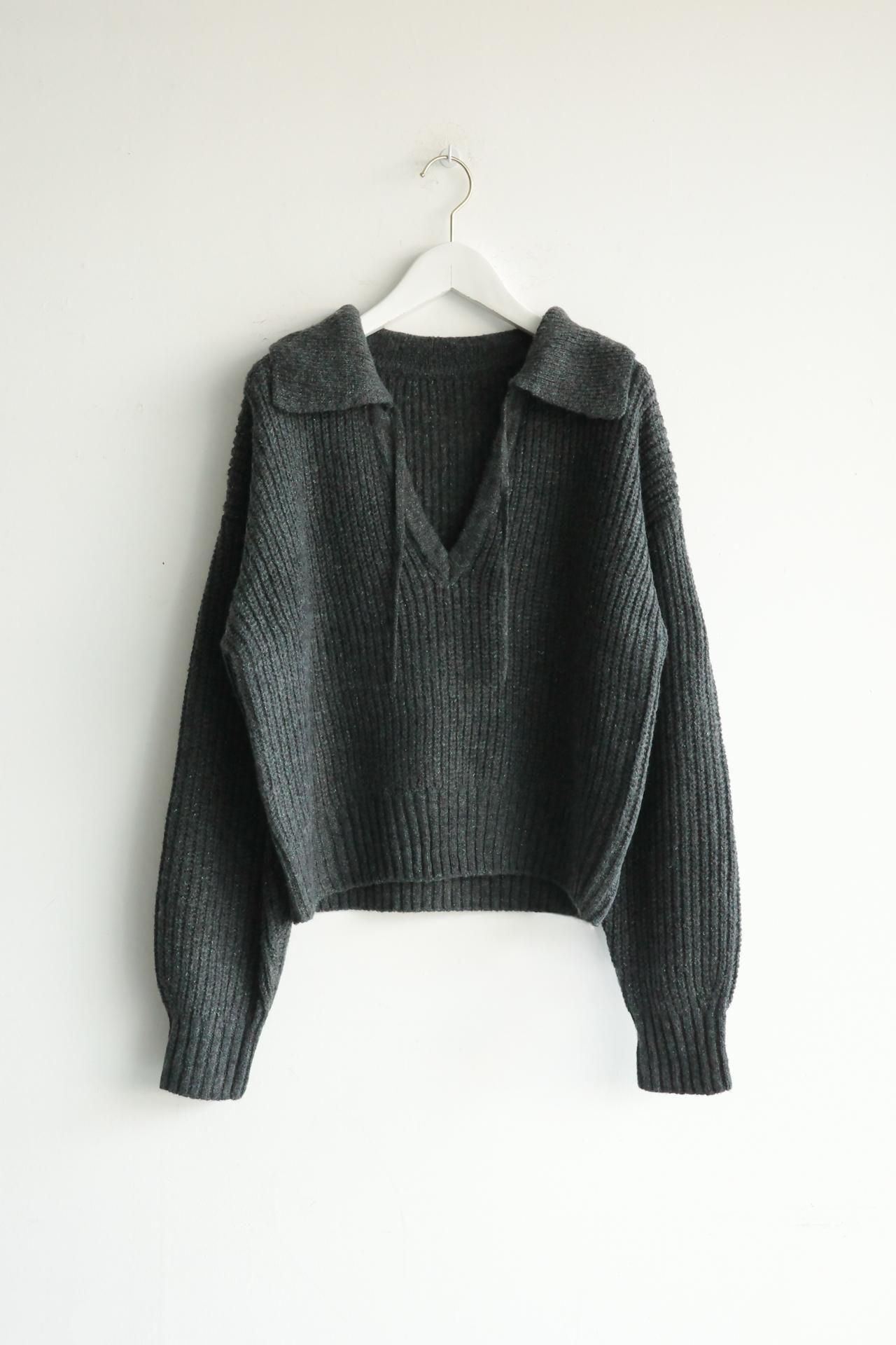 襟元のデザインが魅力のニットトップス