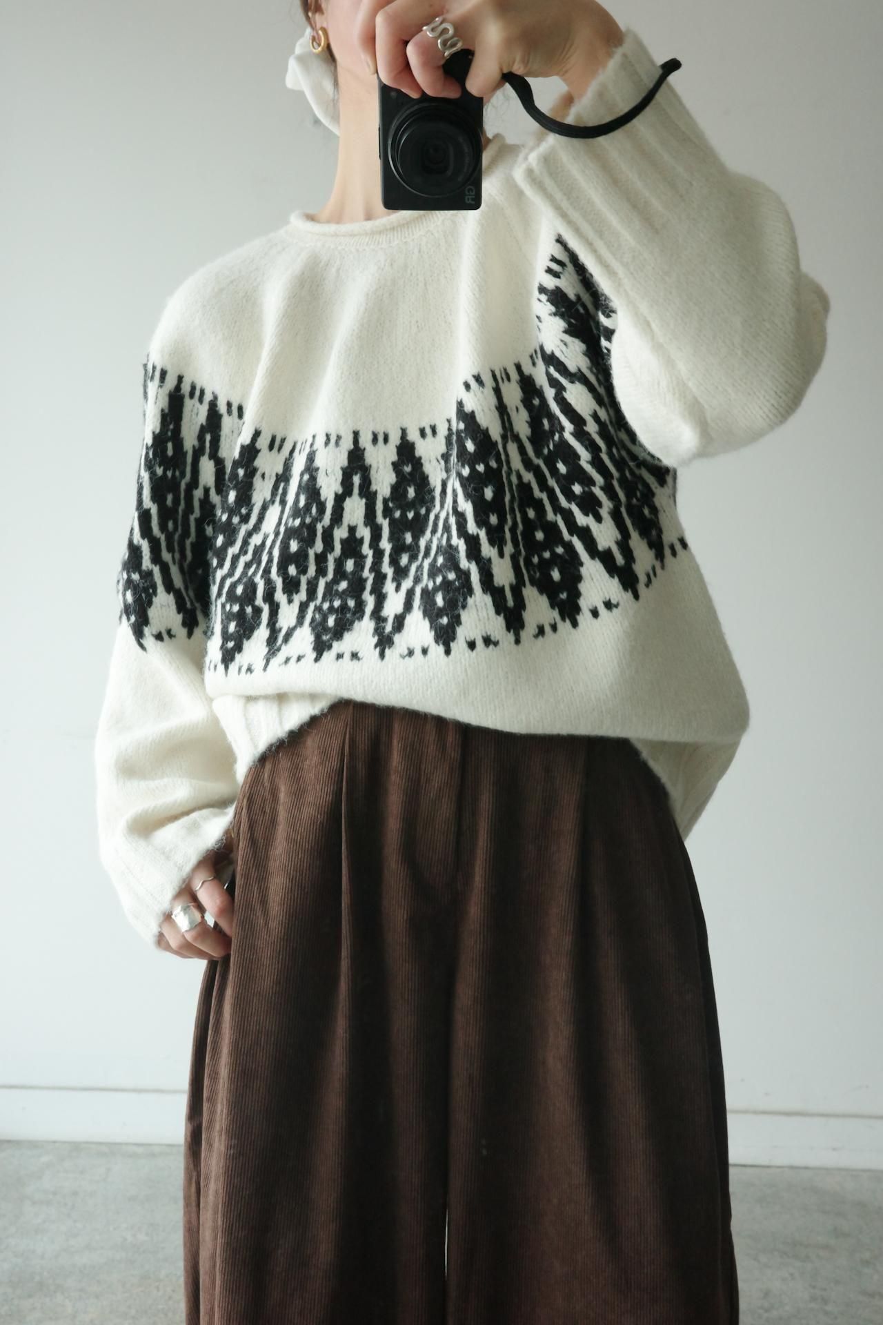 大人っぽい落ち着いた配色のノルディックジャガードニット