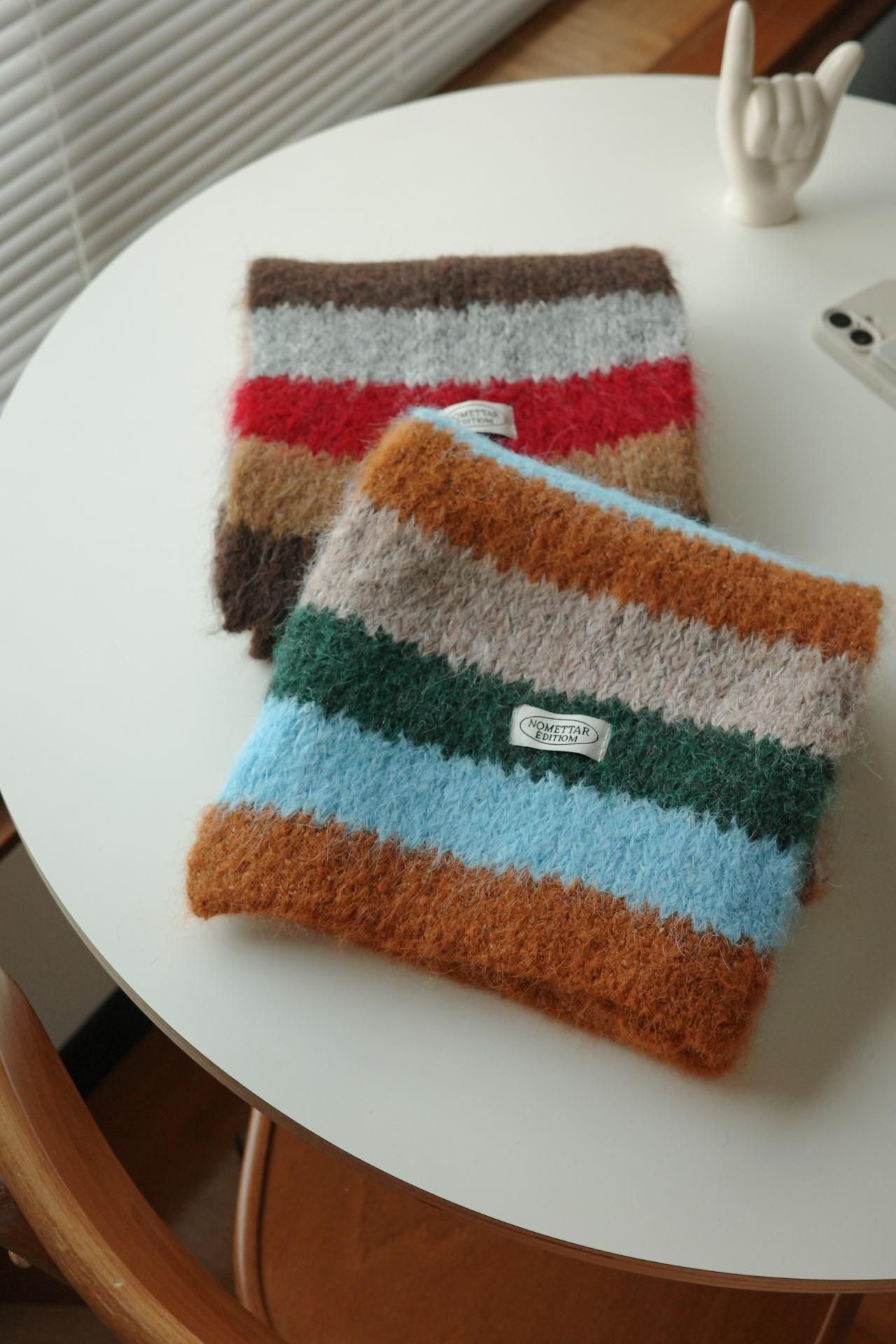 2418.モヘアタッチ ボーダー柄マフラー(blue×green / red×brown)