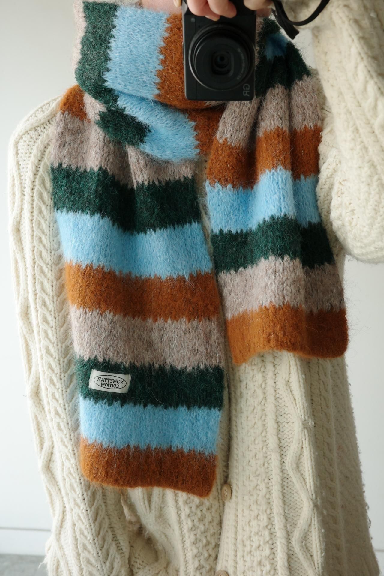 起毛感のあるやわらかなモヘアタッチニットマフラー