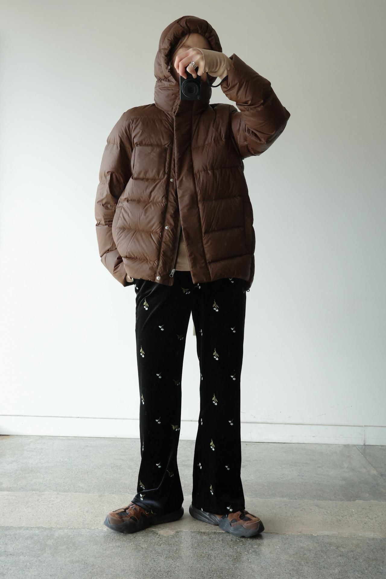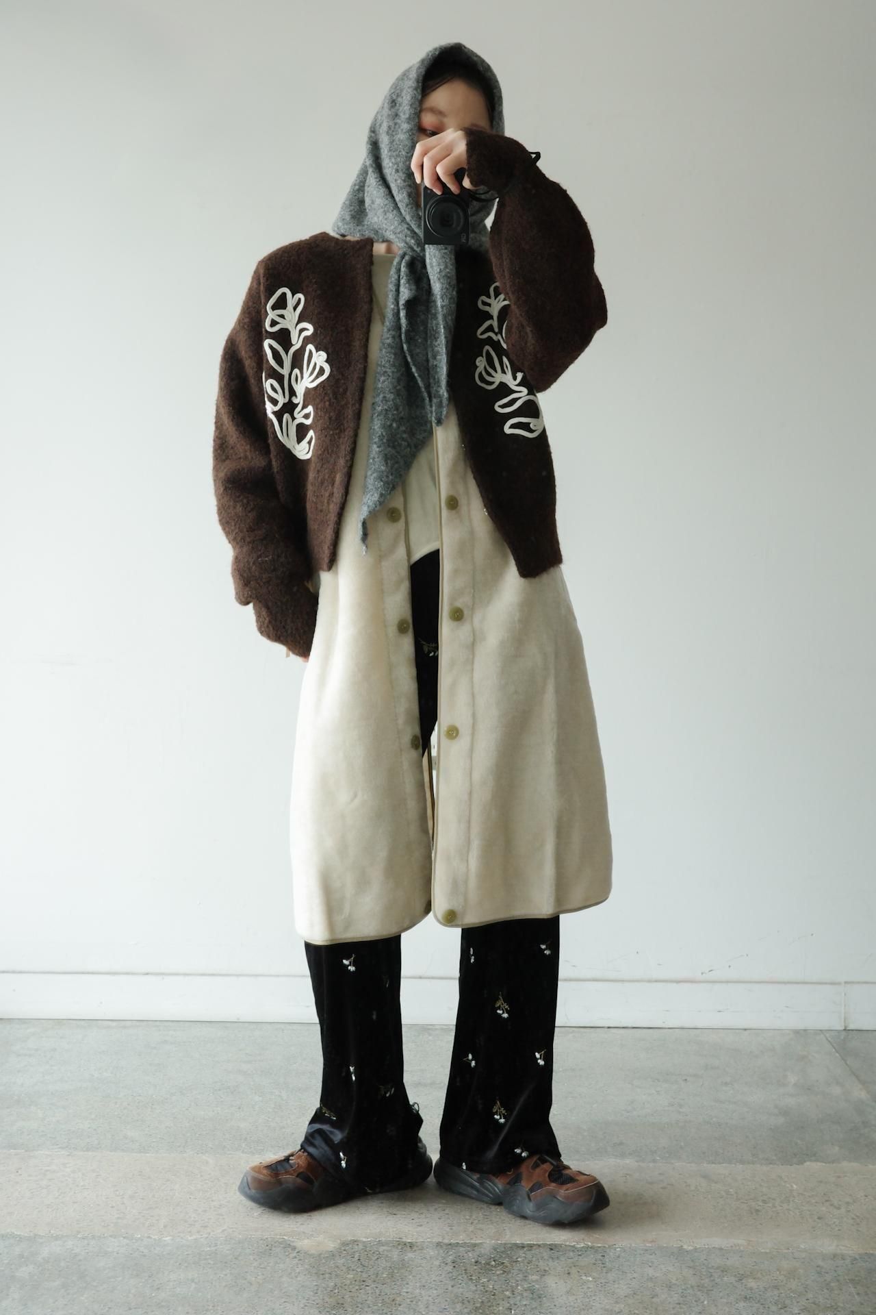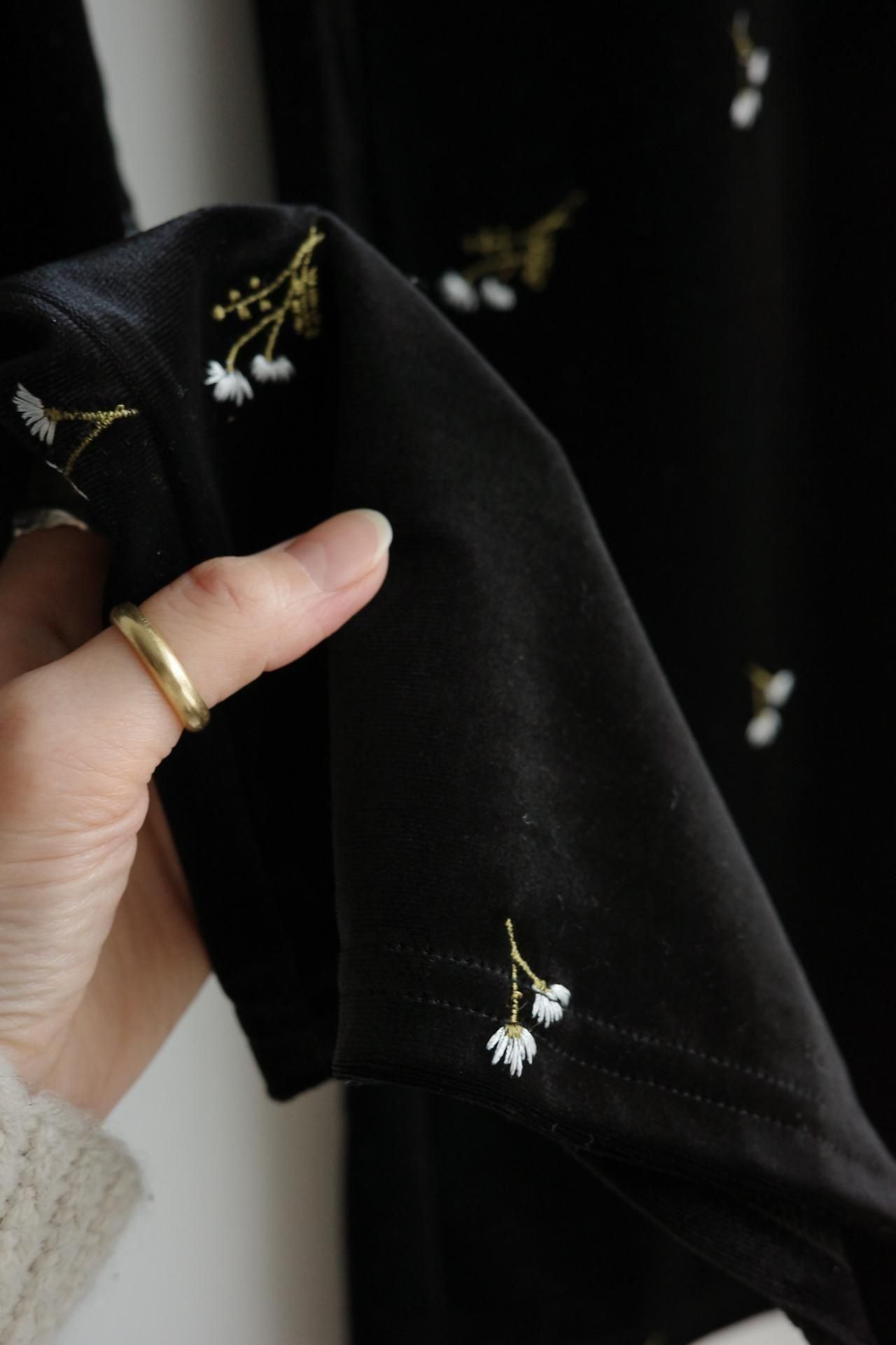小花柄の刺繍がかわいい ベロアフレアパンツ